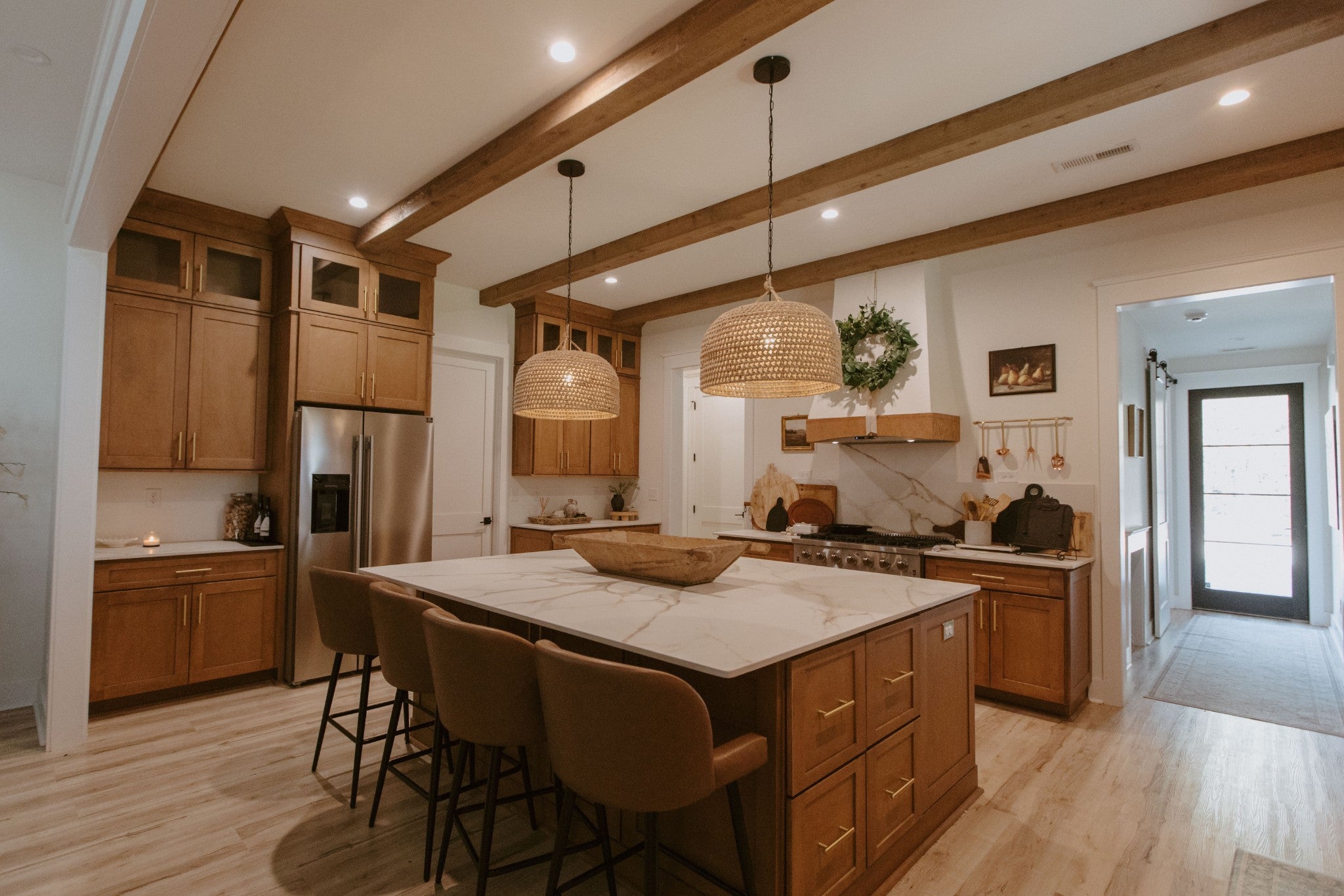 Set quietly along the Duck River in Maury County, this custom-built home is a place where craftsmanship, land, and lifestyle come together with intention. As you arrive, the home reveals itself across 6.81 private acres. Spanning 3,778 square feet, the residence has been thoughtfully designed to balance modern comfort with timeless rural character. The layout unfolds effortlessly - four bedrooms, including a serene primary suite and a private guest en-suite complete with its own secondary living space and kitchenette. Upstairs, two additional en-suite bedrooms offer privacy and flexibility, while a dedicated home office and expansive bonus/theater room create space for focused workdays and memorable evenings. Throughout the home, custom finishes and built-in storage reflect a level of care rarely found in new construction. Step outside and the home continues to impress. A covered timber-frame front porch sets the tone, complemented by Pella windows and doors, a timber-frame rear porch, and an inviting patio designed for gathering and quiet reflection. A three-car attached garage provides everyday convenience, while a custom 32×24 detached pole barn—complete with a concrete monolithic slab, stands ready for storage, workshop, studio, or future expansion. The backyard area is fully fenced, offering peace of mind for children and pets. A private trail leads you beyond the home, into a private pasture that overlooks the Duck River. It’s a setting that invites morning walks, quiet evenings, and a deep connection to the land. Though the setting feels worlds away, convenience is not far—11 miles to Columbia’s town square, 25 miles to downtown Franklin, and 44 miles to Nashville International Airport. This is more than a home—it’s a rare opportunity to own a newly built home with acreage, river frontage, and beautiful surroundings in one of Middle Tennessee’s most sought-after rural corridors.