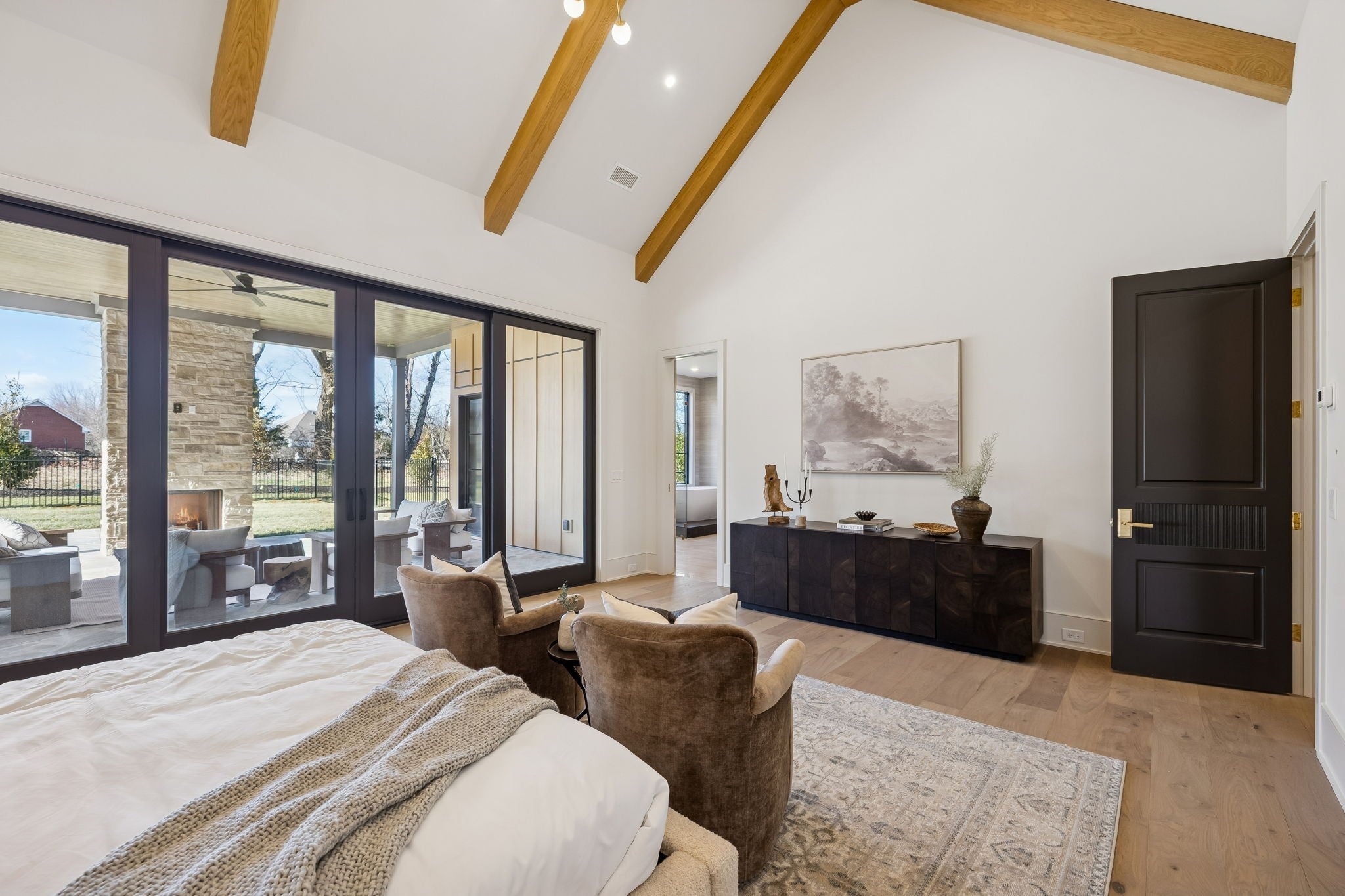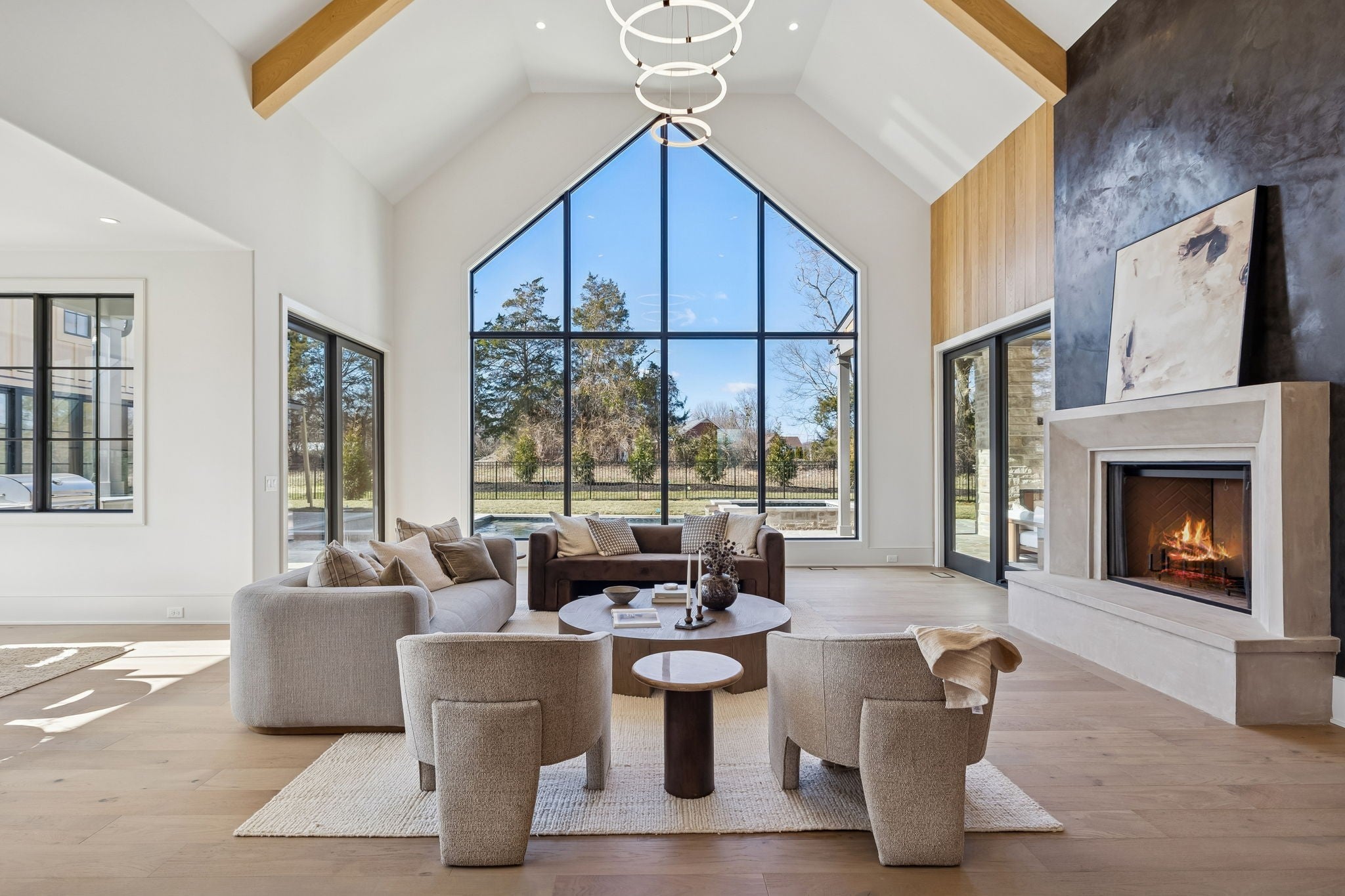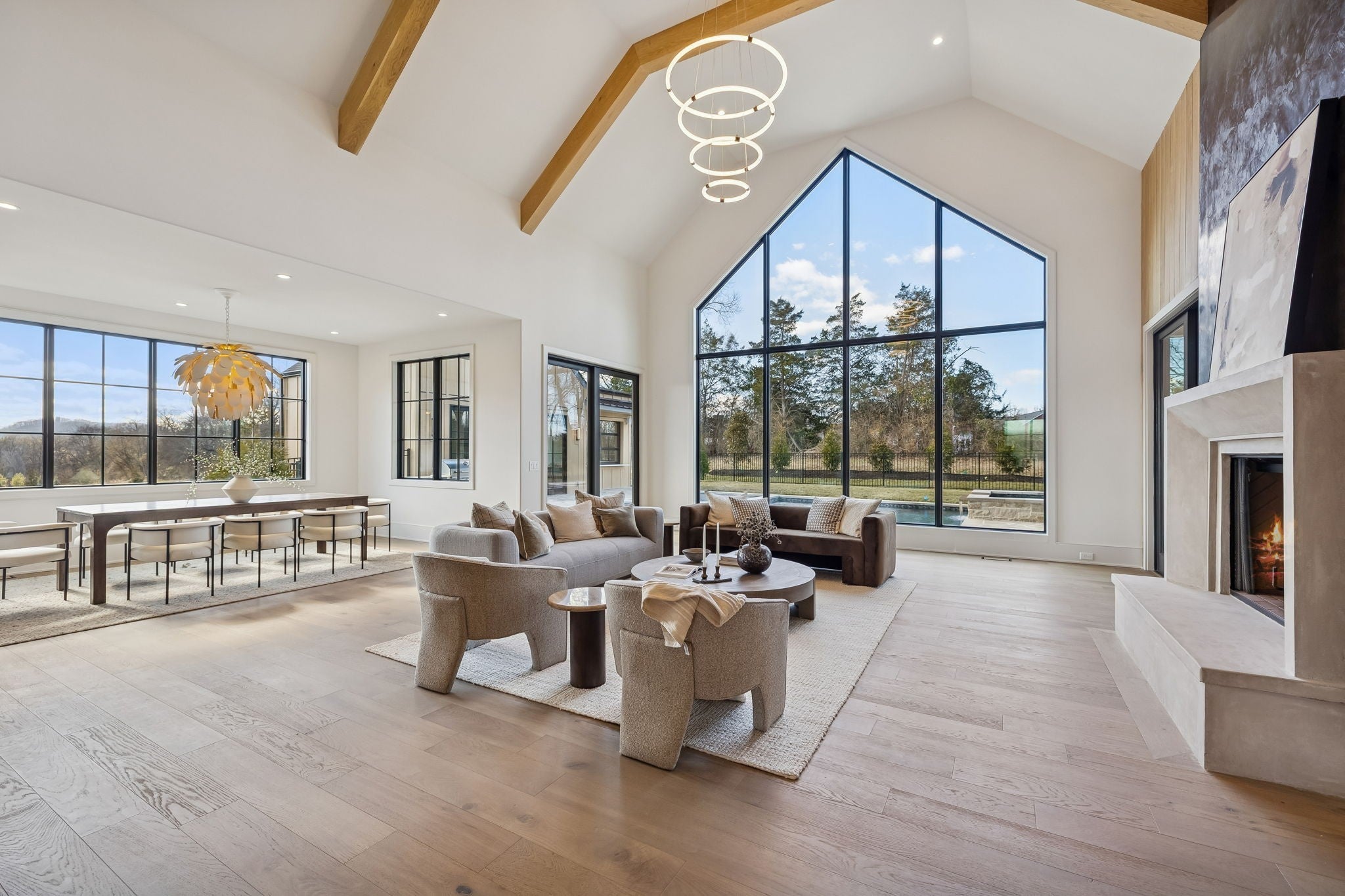 An incredible opportunity to own a masterfully crafted estate in the exclusive Primm Farm community—where history meets modern luxury. With only 24 homesites, this sought-after neighborhood offers a private retreat unlike any other. Perched at the end of a serene cul-de-sac, this elevated homesite backs to mature trees, providing the ultimate in peace and privacy. Step inside to discover timeless elegance, where a Transitional-style design seamlessly blends sophistication with functionality. The main level boasts a Primary Suite with a spa-like bath and dual closets, an Office/Guest Suite, and a breathtaking open-concept Kitchen flowing into the Great Room. Thoughtful details like a Large Pantry, Private Scullery, and a custom Drop Zone Room enhance convenience and organization. Upstairs, you’ll find three additional Bedrooms, a dedicated Movement/Yoga Room, a Bonus Room with a Wet Bar, and generous Walk-In Storage—offering flexible spaces to fit your lifestyle. Step outside to an expansive covered porch, featuring an Outdoor Fireplace and separate Outdoor Kitchen, perfect for hosting unforgettable gatherings. And the highlight? A Pool with a luxurious 758 sq. ft. Pool House, complete with a wet bar, party-serving glass garage door, cozy fireplace (the home’s third!), and a half bath—creating the ultimate entertainment space. With a 4-car garage, premier cul-de-sac location, and a design focused on both elegance and comfort, this home is a true masterpiece waiting for you to call it your own. Don’t miss this once-in-a-lifetime opportunity! (The 758 sq. ft. is included in overall square footage)