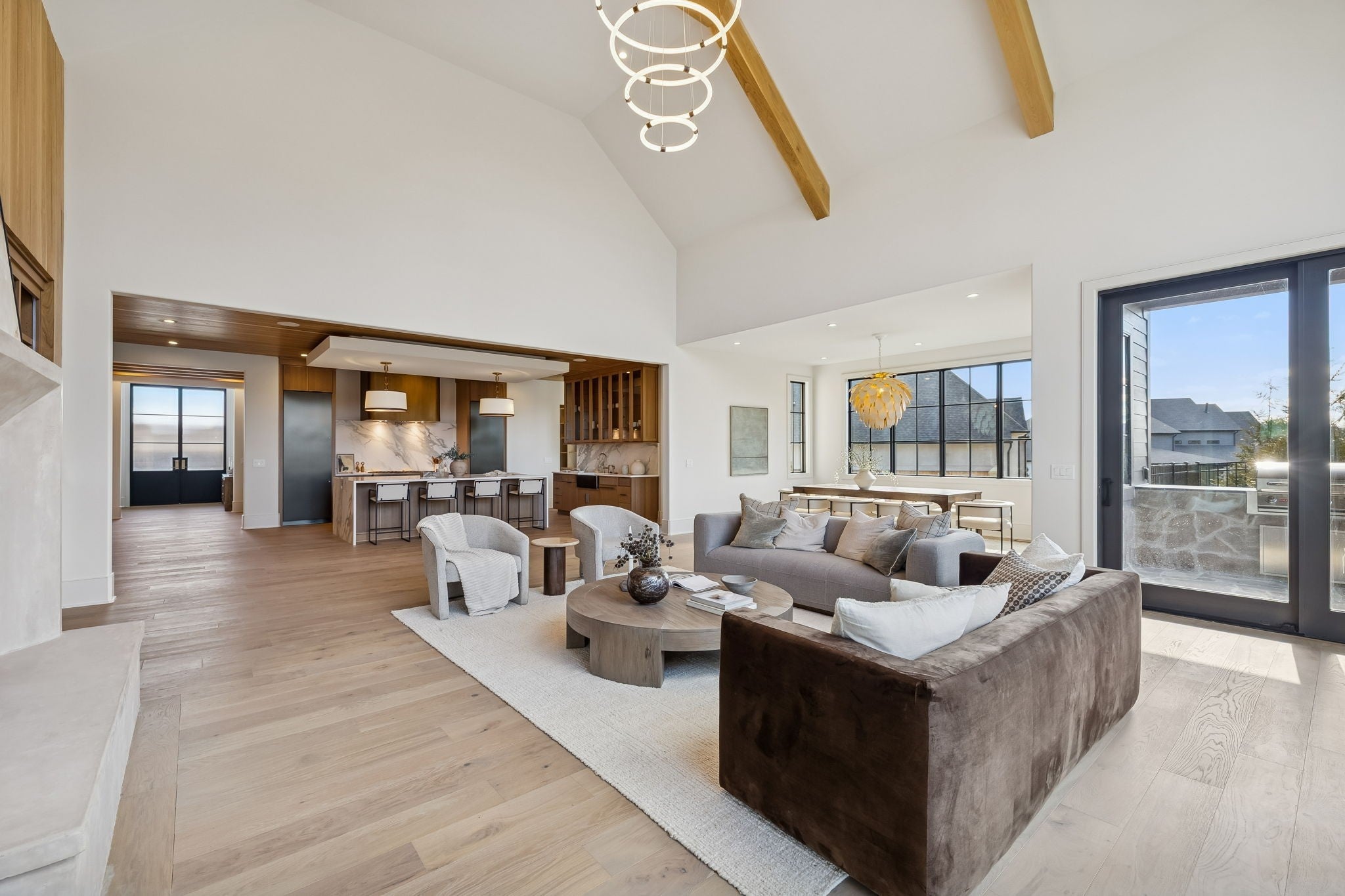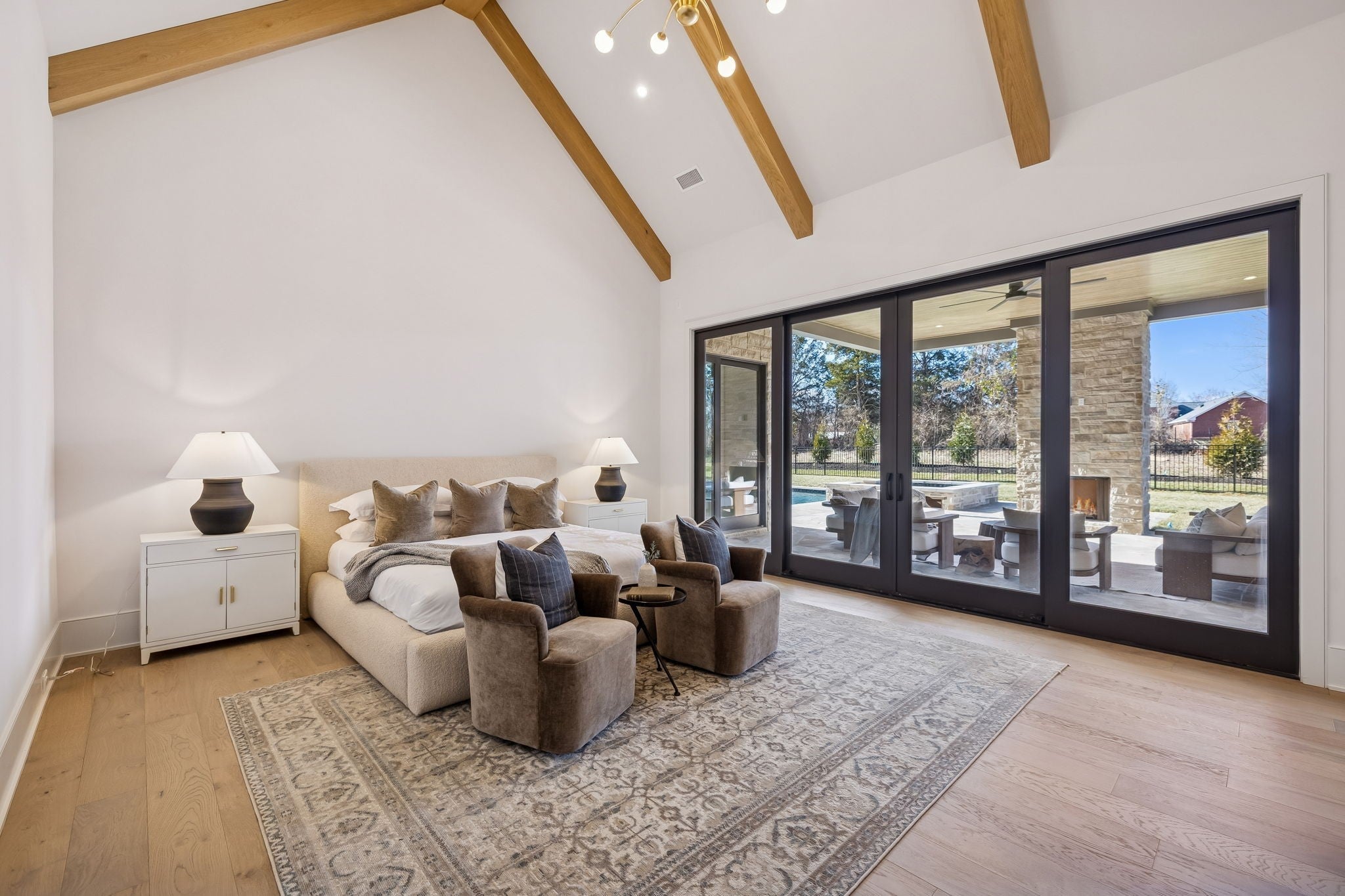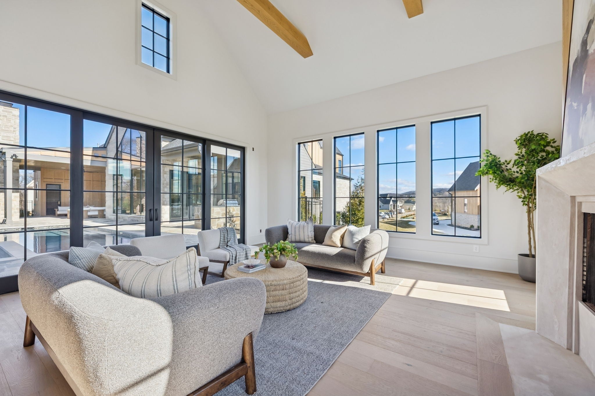 An incredible opportunity to own a masterfully crafted estate in the exclusive Primm Farm community—where history meets modern luxury. With only 24 homesites, this sought-after neighborhood offers a private retreat unlike any other. Perched at the end of a serene cul-de-sac, this elevated homesite backs to mature trees, providing the ultimate in peace and privacy. Step inside to discover timeless elegance, where a Transitional-style design seamlessly blends sophistication with functionality. The main level boasts a Primary Suite with a spa-like bath and dual closets, an Office/Guest Suite, and a breathtaking open-concept Kitchen flowing into the Great Room. Thoughtful details like a Large Pantry, Private Scullery, and a custom Drop Zone Room enhance convenience and organization. Upstairs, you’ll find three additional Bedrooms, a dedicated Movement/Yoga Room, a Bonus Room with a Wet Bar, and generous Walk-In Storage—offering flexible spaces to fit your lifestyle. Step outside to an expansive covered porch, featuring an Outdoor Fireplace and separate Outdoor Kitchen, perfect for hosting unforgettable gatherings. And the highlight? A Pool with a luxurious 758 sq. ft. Pool House, complete with a wet bar, party-serving glass garage door, cozy fireplace (the home’s third!), and a half bath—creating the ultimate entertainment space. With a 4-car garage, premier cul-de-sac location, and a design focused on both elegance and comfort, this home is a true masterpiece waiting for you to call it your own. Don’t miss this once-in-a-lifetime opportunity! (The 758 sq. ft. is included in overall square footage)
