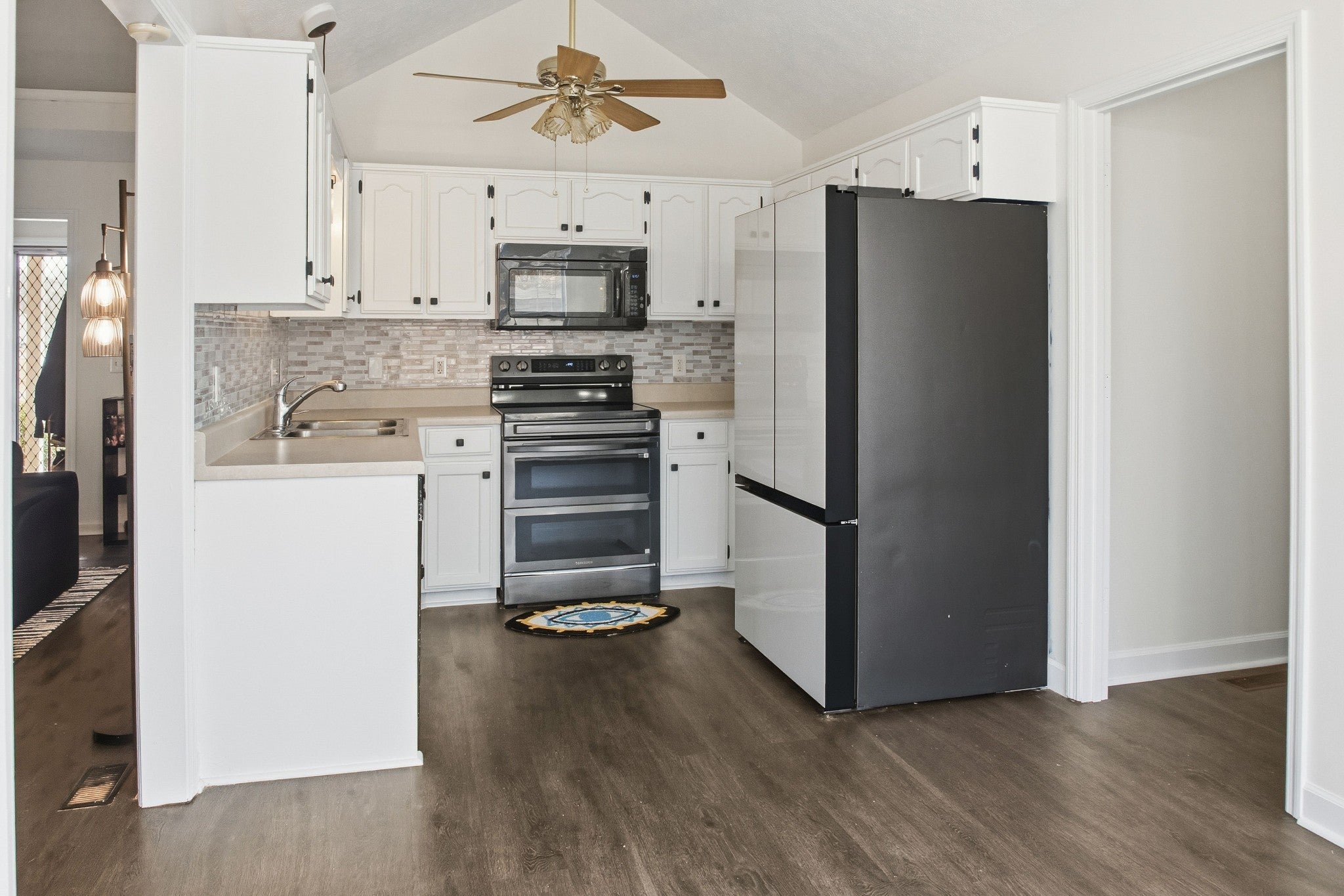 - Electric Range, Dishwasher, Microwave, Refrigerator