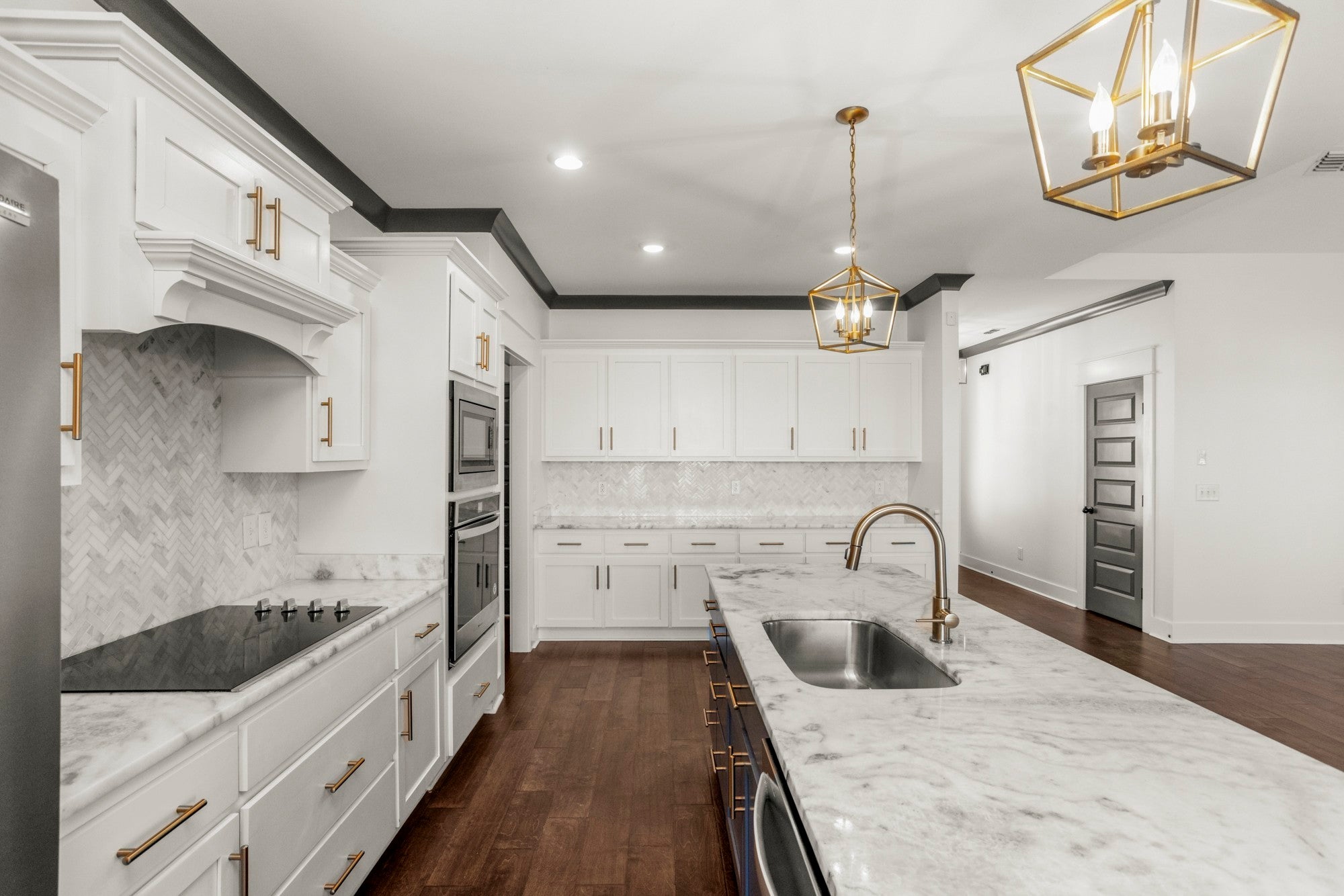 - Electric Oven, Cooktop, Electric Range, Dishwasher, Disposal, Microwave, Refrigerator, Stainless Steel Appliance(s)