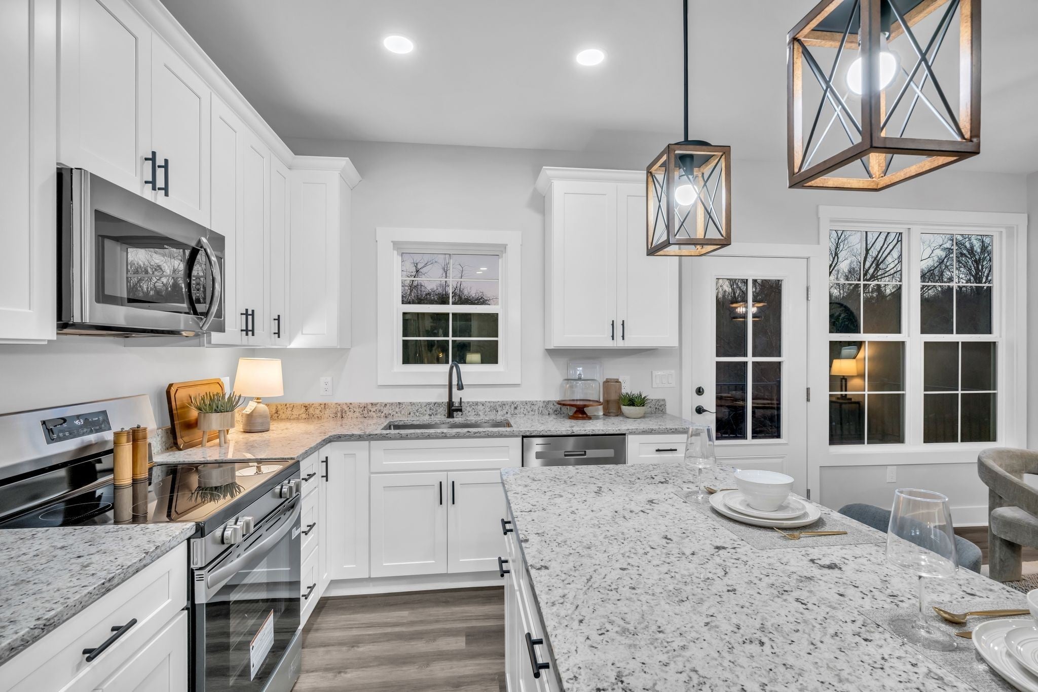 - Electric Oven, Electric Range, Dishwasher, Microwave, Refrigerator, Stainless Steel Appliance(s)