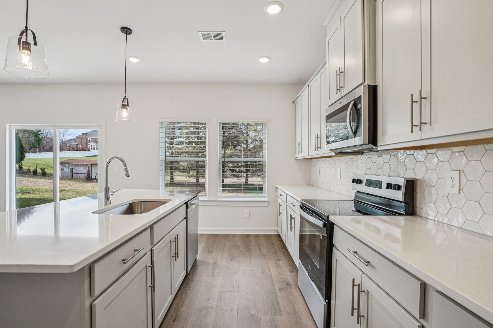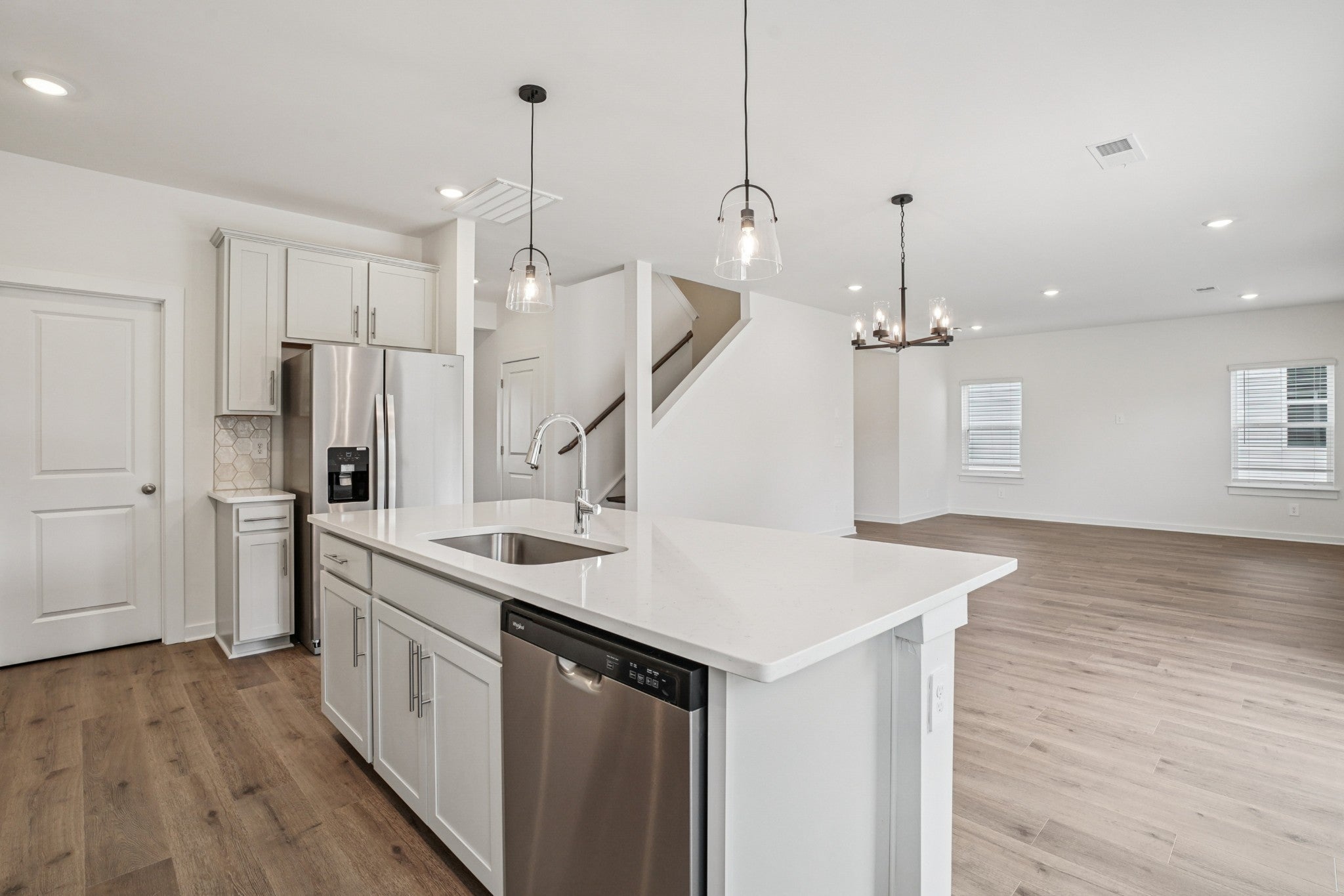 Welcome to the Dakota, a thoughtfully designed home that blends modern living with everyday comfort. The main-level flex space is perfect for a home office—skip the commute and work in style. The kitchen features a spacious island overlooking the open-concept living area, ideal for entertaining or relaxing at home. Upstairs, a versatile loft creates separation between the secondary bedrooms and the private primary suite, offering both functionality and privacy. Located in the desirable River Ridge community in Clarksville, this stunning single-family home showcases open layouts, luxurious primary suites, and quality finishes throughout. Every home includes a fully sodded yard, all appliances including the washer and dryer, and blinds throughout—move-in ready from day one. Built with innovative, energy-efficient features, this home is designed to deliver lower utility costs, better indoor air quality, enhanced comfort, and peace of mind.