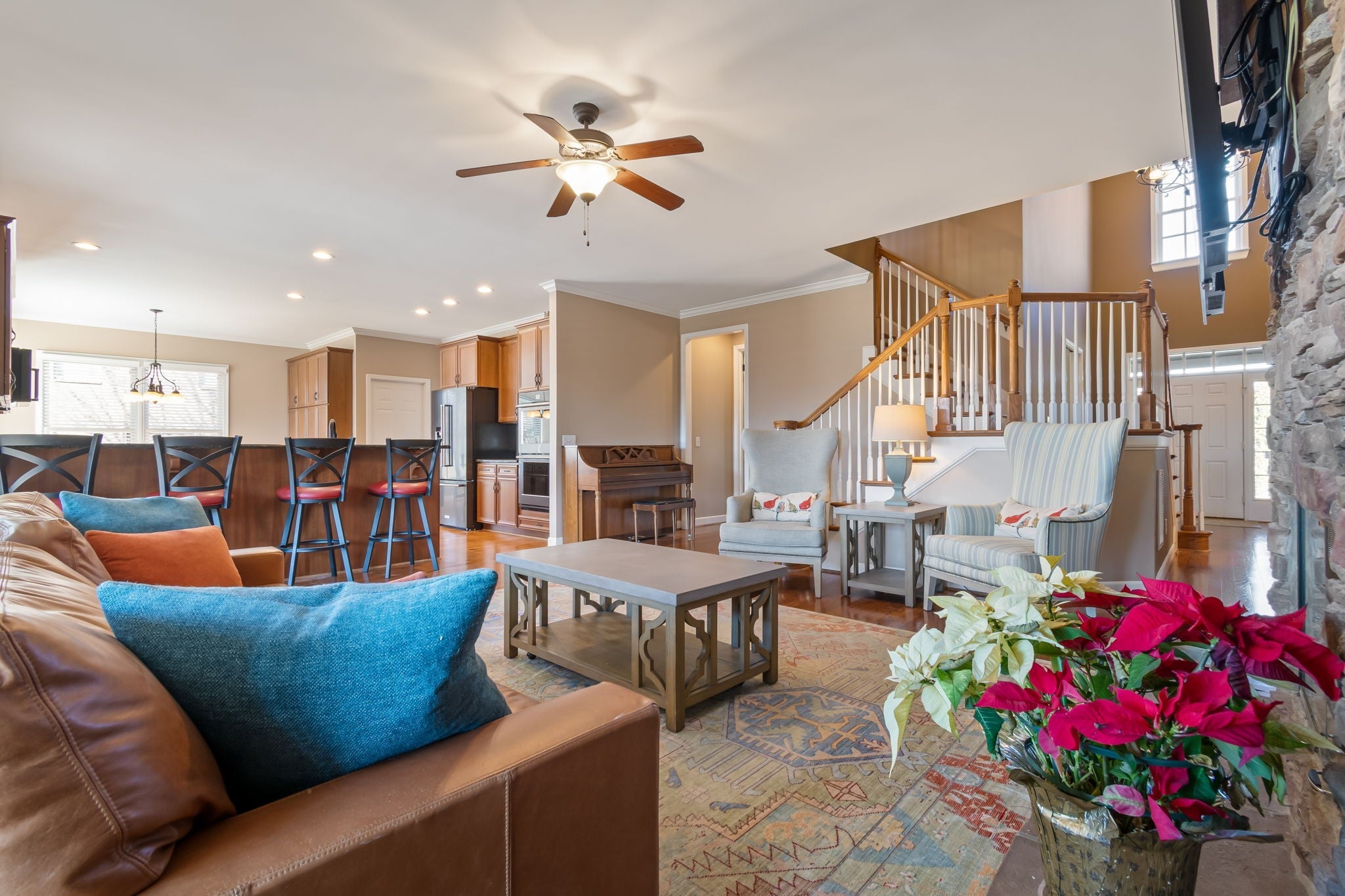 Beautiful home in the Bridgemore Village neighborhood situated on an oversized .5 acre lot. The yard has been professionally landscaped, designed with entertaining in mind, and fully irrigated. Moving into the interior, you'll find a very roomy floor plan with designated space for a formal dining room as well as an in home office or hobby room and an additional bonus room upstairs. The kitchen appliances have been upgraded. The primary bathroom suite has been recently renovated and boasts a large custom tile shower, separate stand alone tub, and luxury fixtures. As you move into the backyard you'll find an outdoor fire pit on the back patio with plenty of space for hosting lots of guest. The 3 car garage has been freshly painted. The driveway allows for plenty of parking space. This home is located across from green space and just down the street from the neighborhood pool and clubhouse. This home blends traditional design with elegance for comfortable everyday living.
