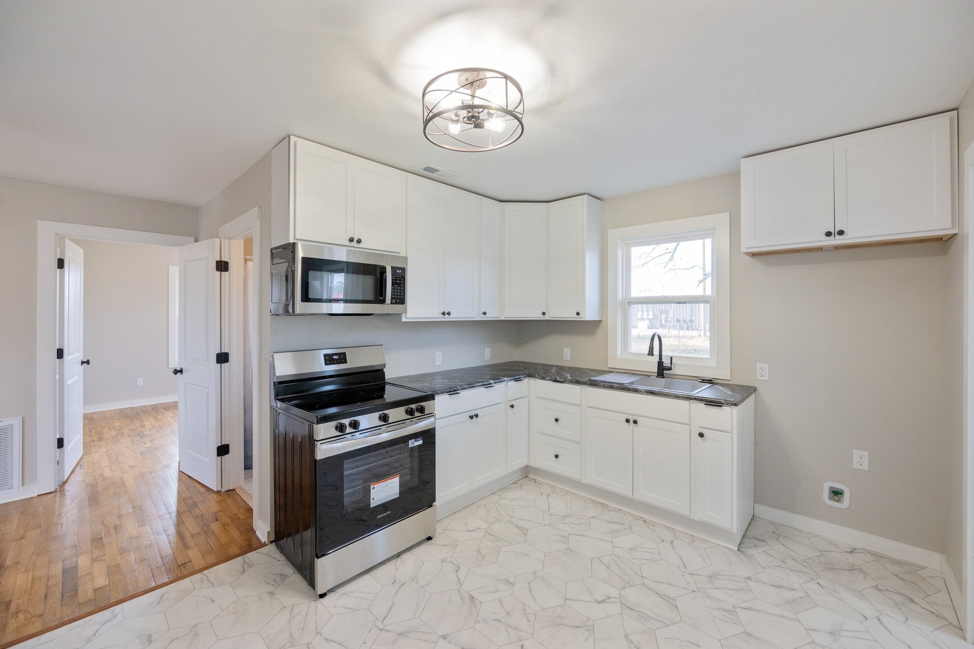 Don’t blink or this one will be gone! This 2-bedroom, 1-bath home inside the Parsons city limits is priced to move and checks all the boxes buyers are hunting for. Sitting on a 0.25-acre lot, this one-level home offers 838 sq ft of easy, efficient living with central heat and air, laminate and wood flooring, and a functional layout. The kitchen features a farmhouse sink, built-in microwave, electric cooktop, and a tankless gas water heater. A large main-level laundry room adds extra convenience. Public utilities, open driveway parking, and a city-maintained street make this an easy yes. Homes at this price don’t last, schedule your showing before someone else does!