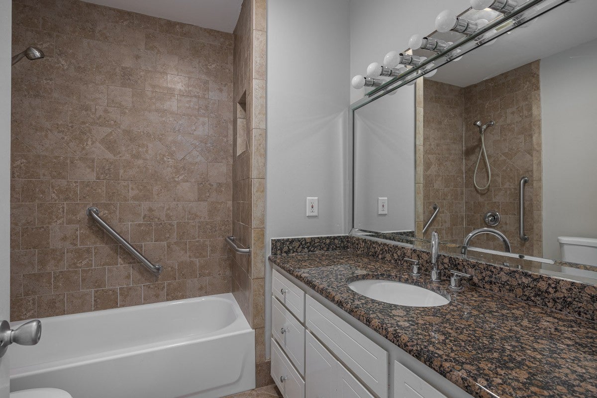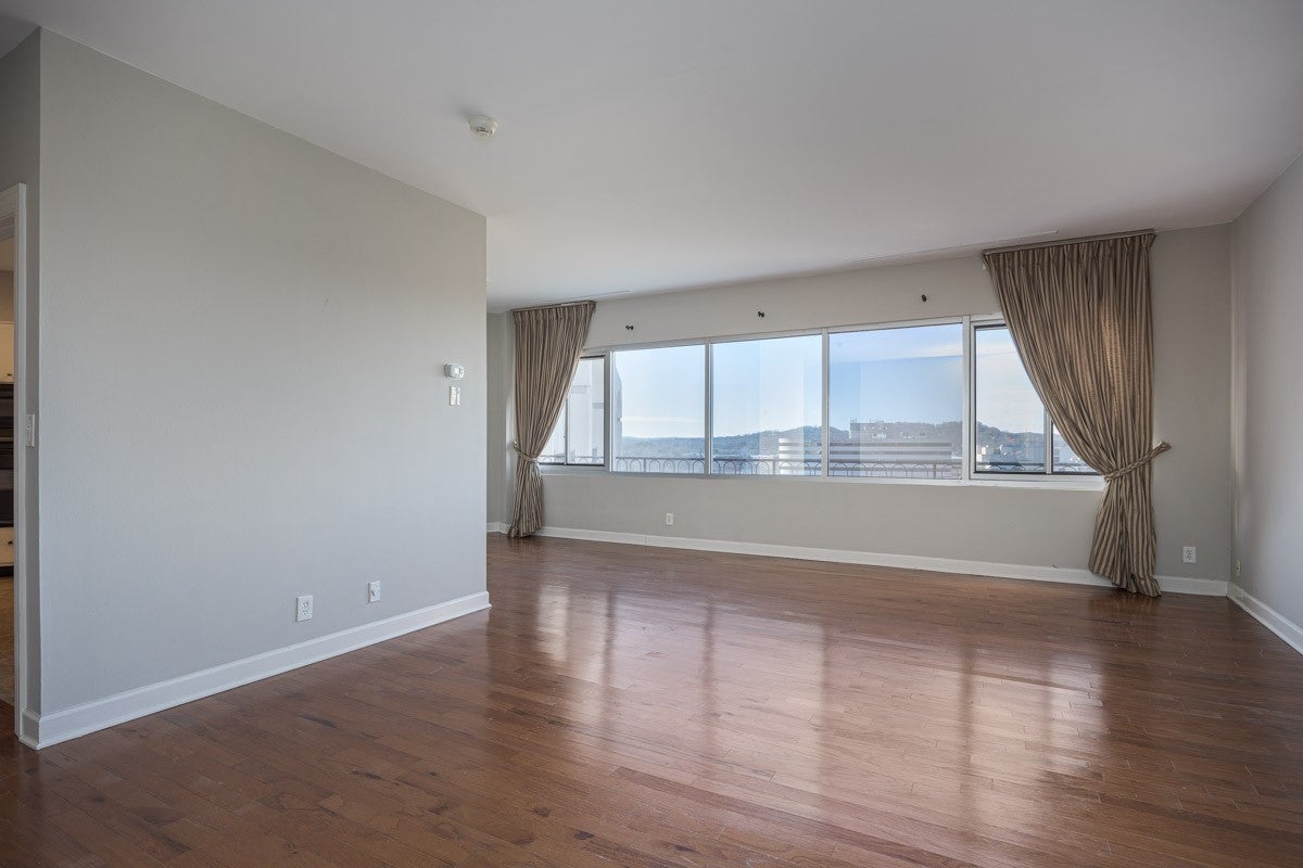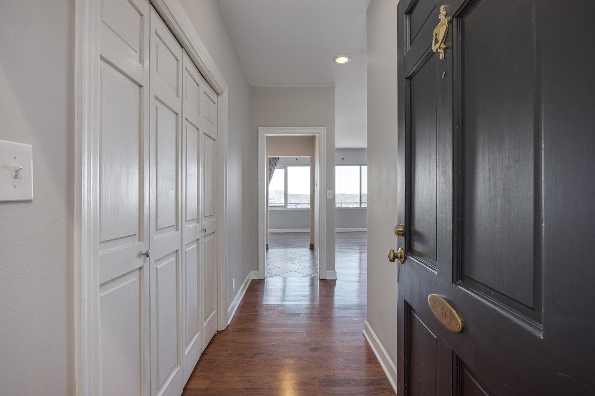 PENTHOUSE UNIT! This one-bedroom, one-bath unit is on the top (12th) floor, and feels very spacious. It is more than 200 square feet larger than the other one-bedrooms on the lower floors!. Beautiful views from the large picture windows. In addition to the full bath, there is another dual sink vanity just outside the bedroom and walk-in closet, creating a great dressing area. The HOA fee covers all utilities so you don't have to worry about paying all those other monthly bills, and also includes a secure building with 24-hour door staff, heated outdoor pool, and other amenities to make your llfe easier.