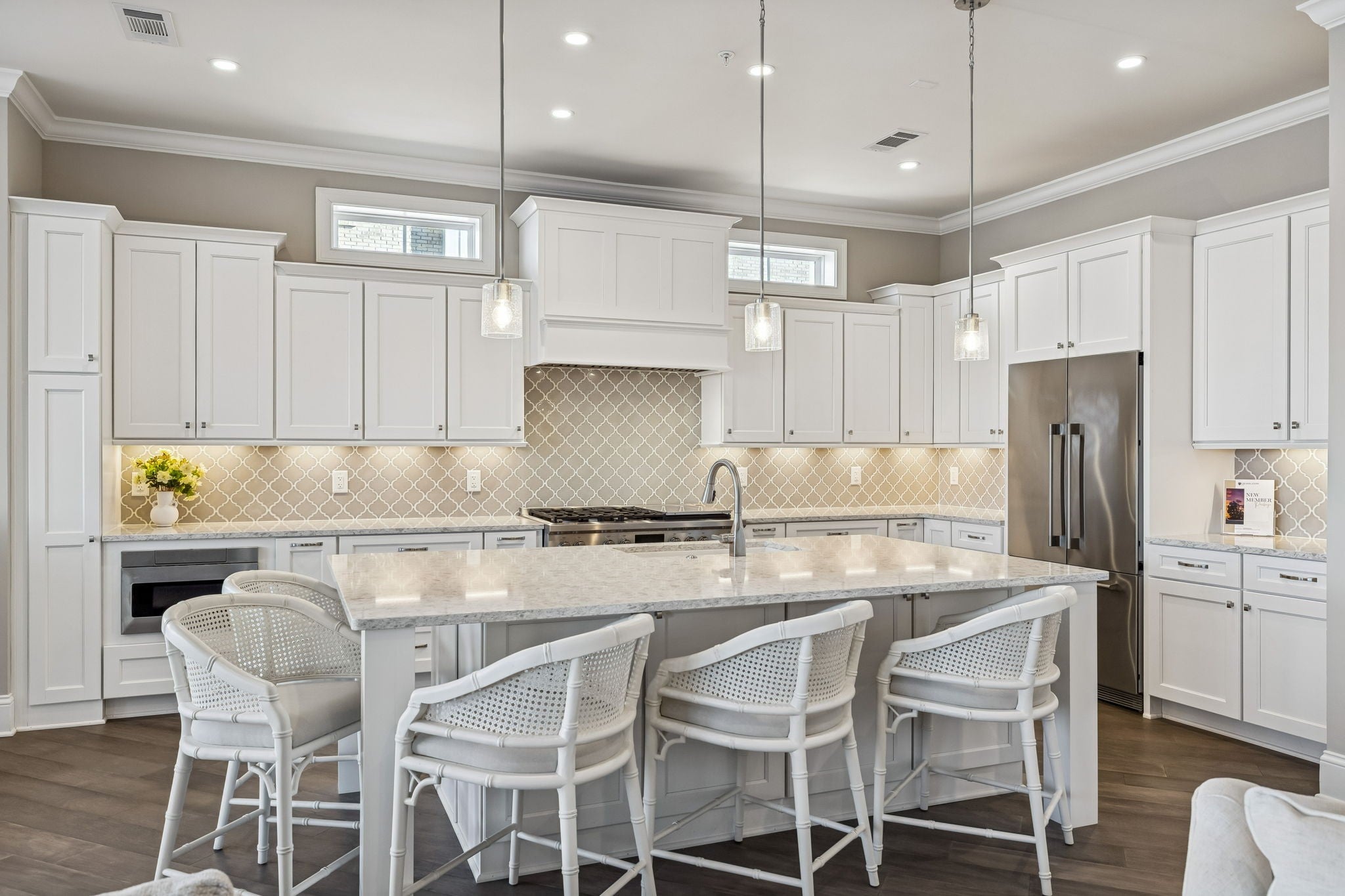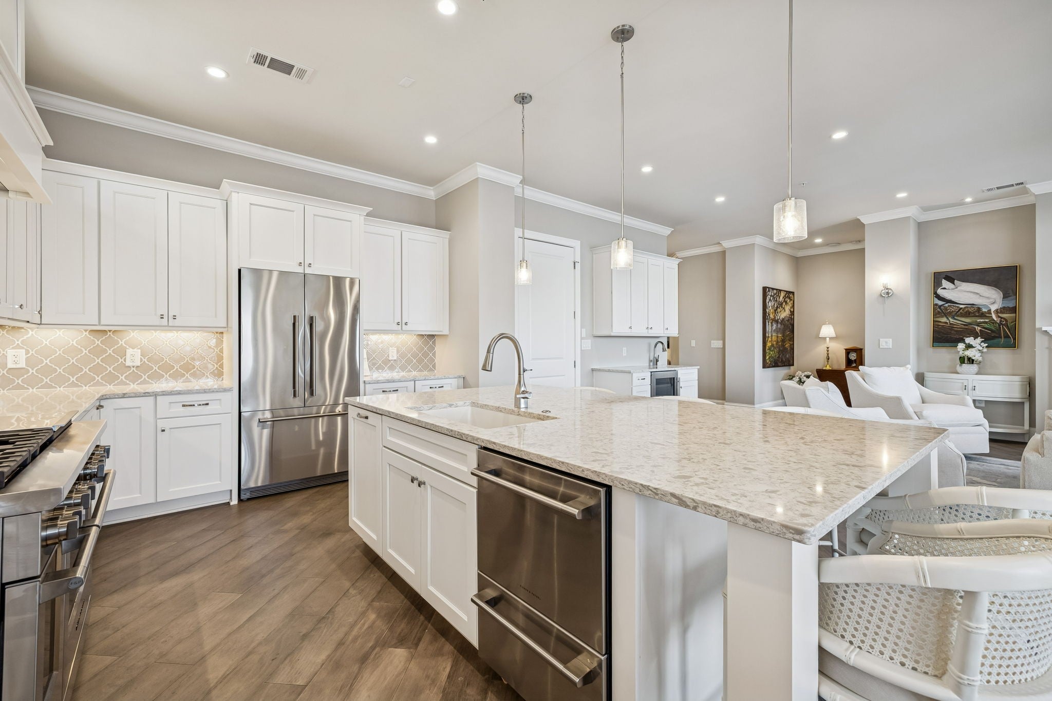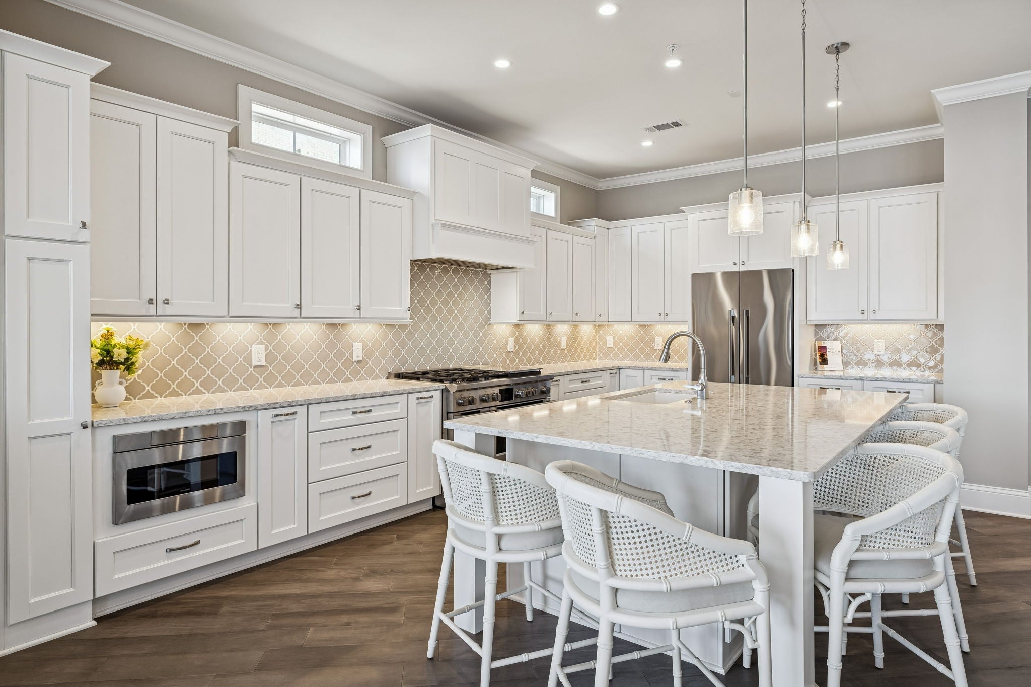 - Gas Oven, Cooktop, Gas Range, Dishwasher, Disposal, Microwave, Refrigerator, Stainless Steel Appliance(s)
