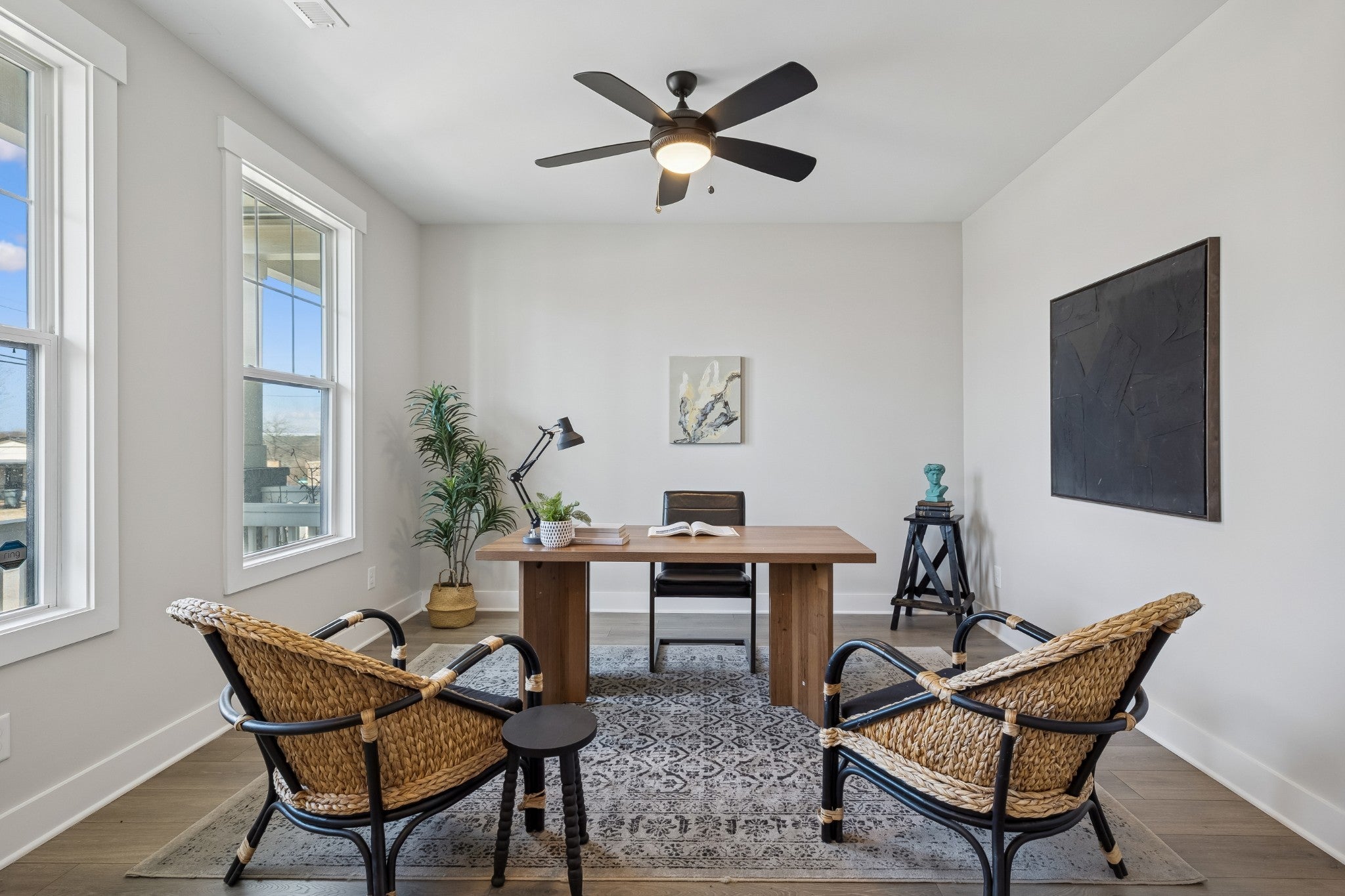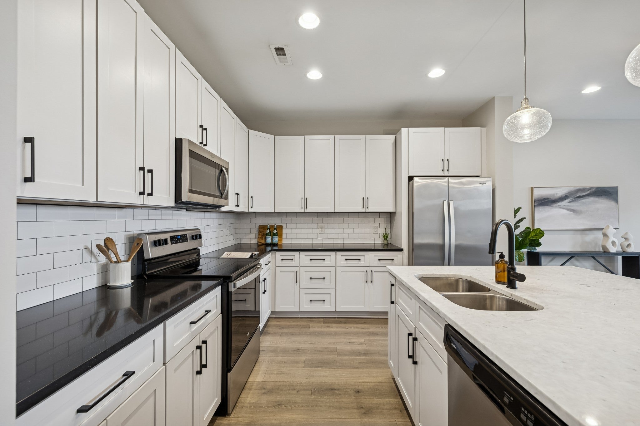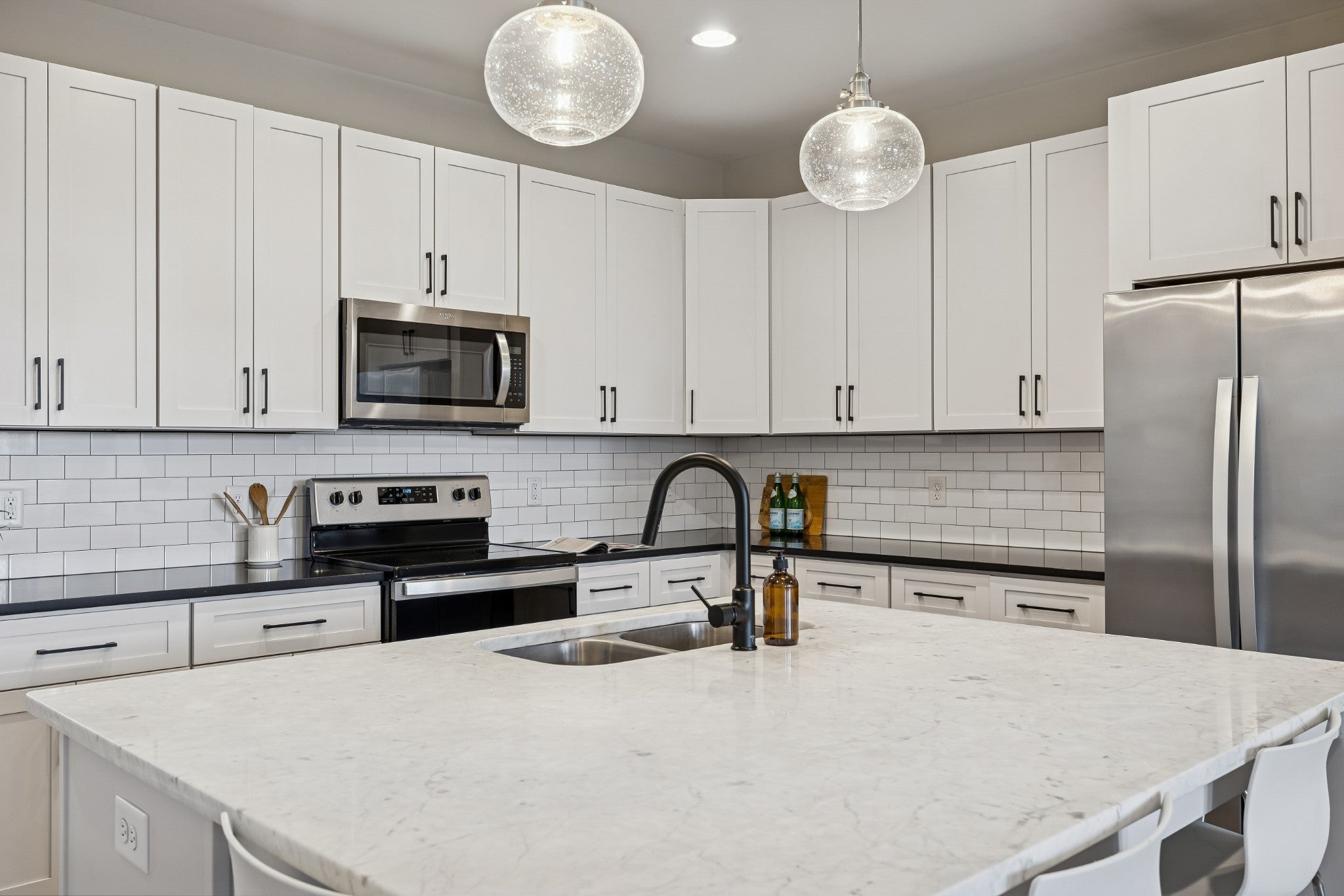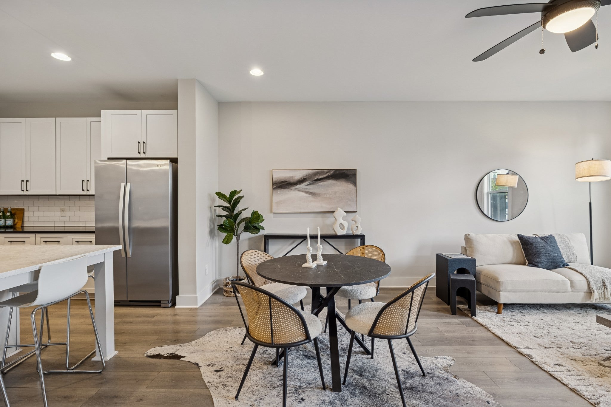Modern, bright, and designed to actually live in, this 2020-built East Nashville townhome delivers space, style, and a layout that feels intentional from the moment you walk in. Freshly painted throughout, the home has a clean, polished feel that’s truly move-in ready. The main level is open and expansive with 9’ ceilings and a surprisingly large living area that’s flooded with natural light. The kitchen is both sharp and functional, featuring white cabinetry, quartz countertops, subway tile backsplash, a walk-in pantry, and a generous island with seating that naturally becomes the centerpiece of the space. Neutral flooring runs throughout the main floor, giving it a cohesive, modern look that’s easy to maintain. A dedicated office or flex space plus a thoughtfully designed entry drop zone add everyday practicality without sacrificing style. Upstairs, both bedrooms are true en suites with great proportions and excellent closet space. The primary suite stands out with a well-designed walk-in closet and a spa-inspired bathroom complete with a double vanity, tiled walk-in shower, and clean designer finishes. A full laundry room, linen storage, and additional attic space make the upstairs both comfortable and functional. Outdoor space is private and purposeful, with a covered front porch and a fenced rear courtyard — ideal for morning coffee, pets, or unwinding after a long day. Two assigned parking spaces are located just steps from the home. This is a well-designed, low-maintenance home that lives larger than expected and checks all the boxes for modern East Nashville living.