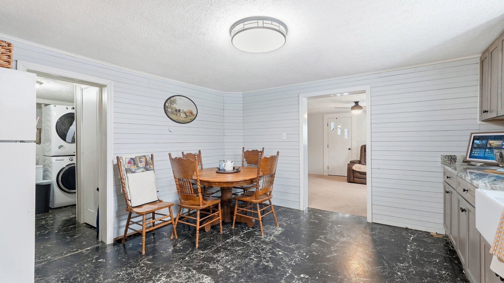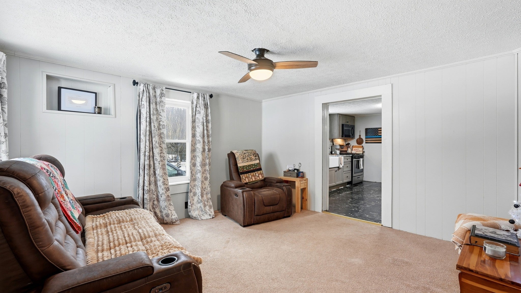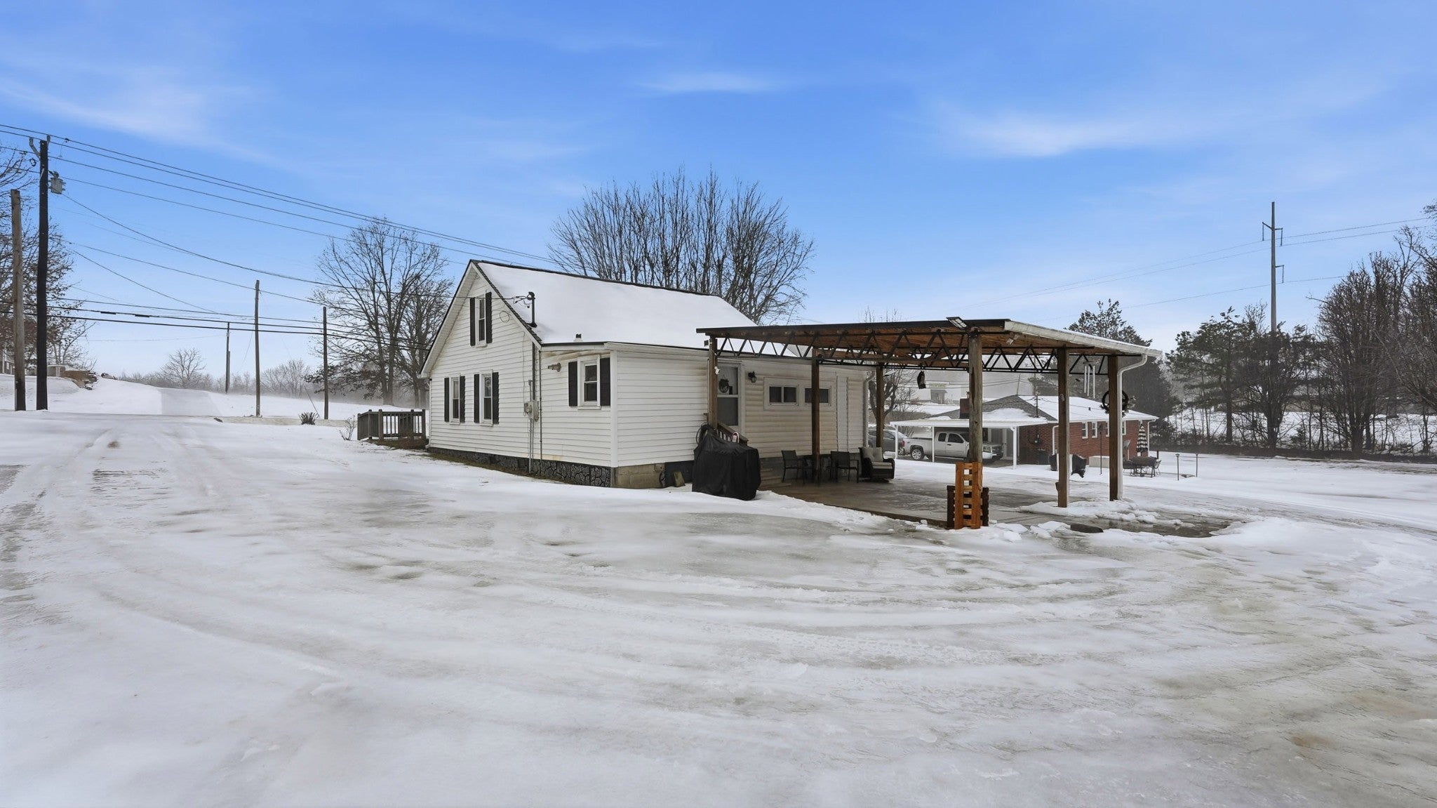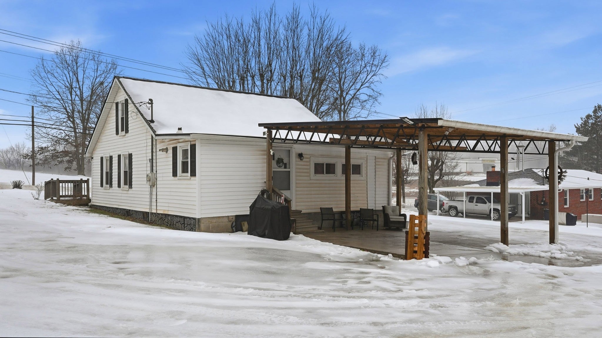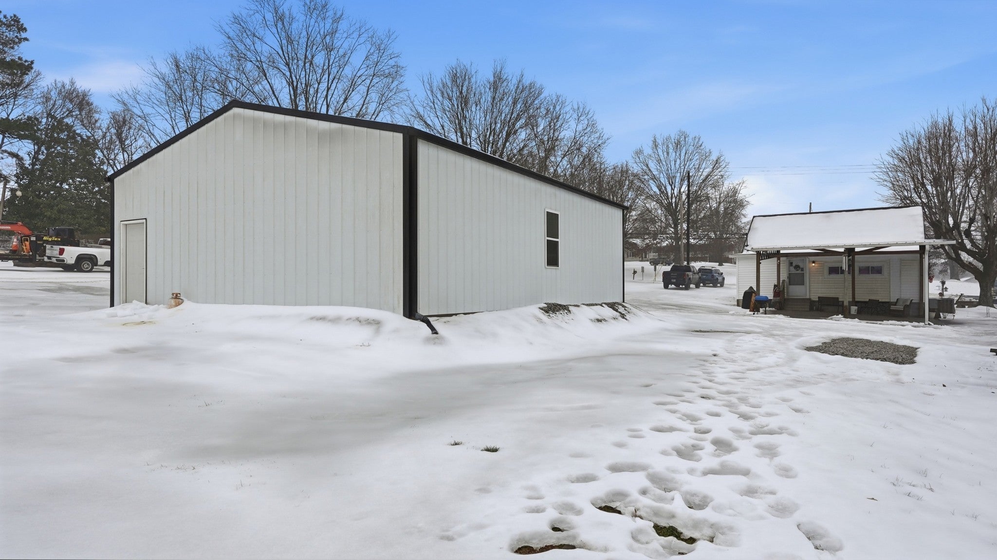 Step into a slice of pure americana with this pristine white cottage, From the moment you pull into the neatly paved driveway, the homes curb appeal and rocking chair front porch will grab you, Beyond the home you will find a 30x40 shop offering the perfect sanctuary with electricity & Insulation (with a separate entrance), Small scale living never looked so good . Pull right into the attached carport. Roof is less than 2 yrs old ,. Tankless gas water heater TFS installed steel girders under home .