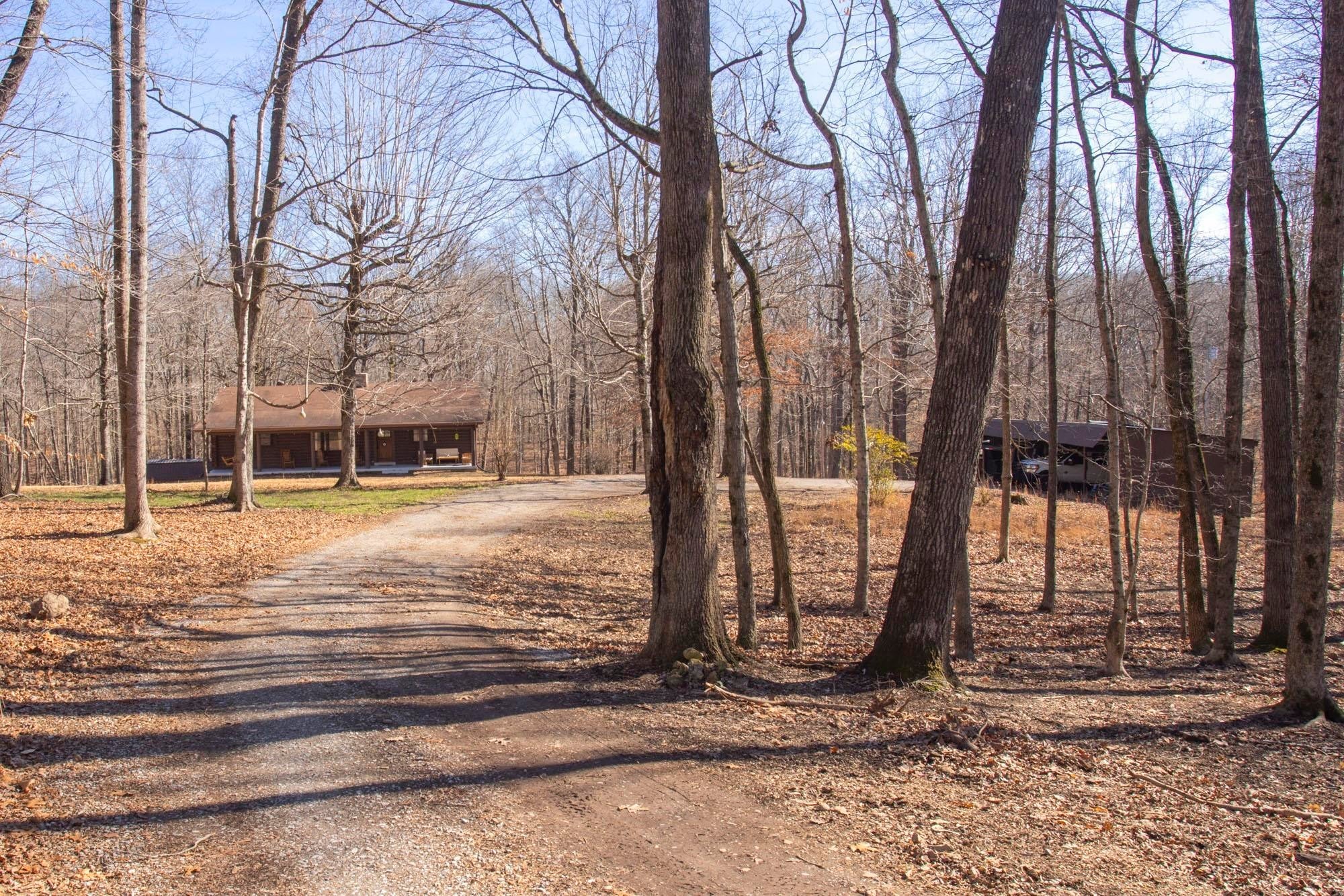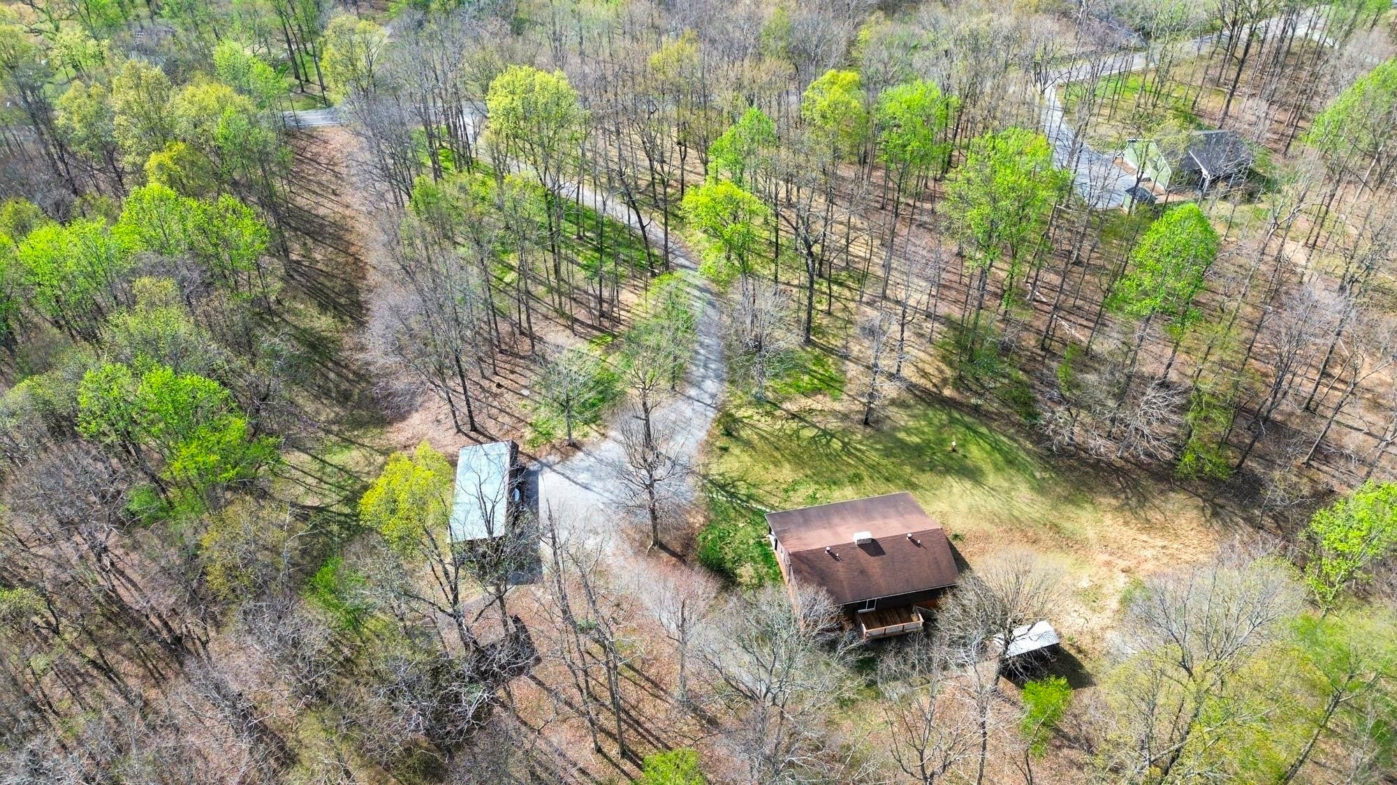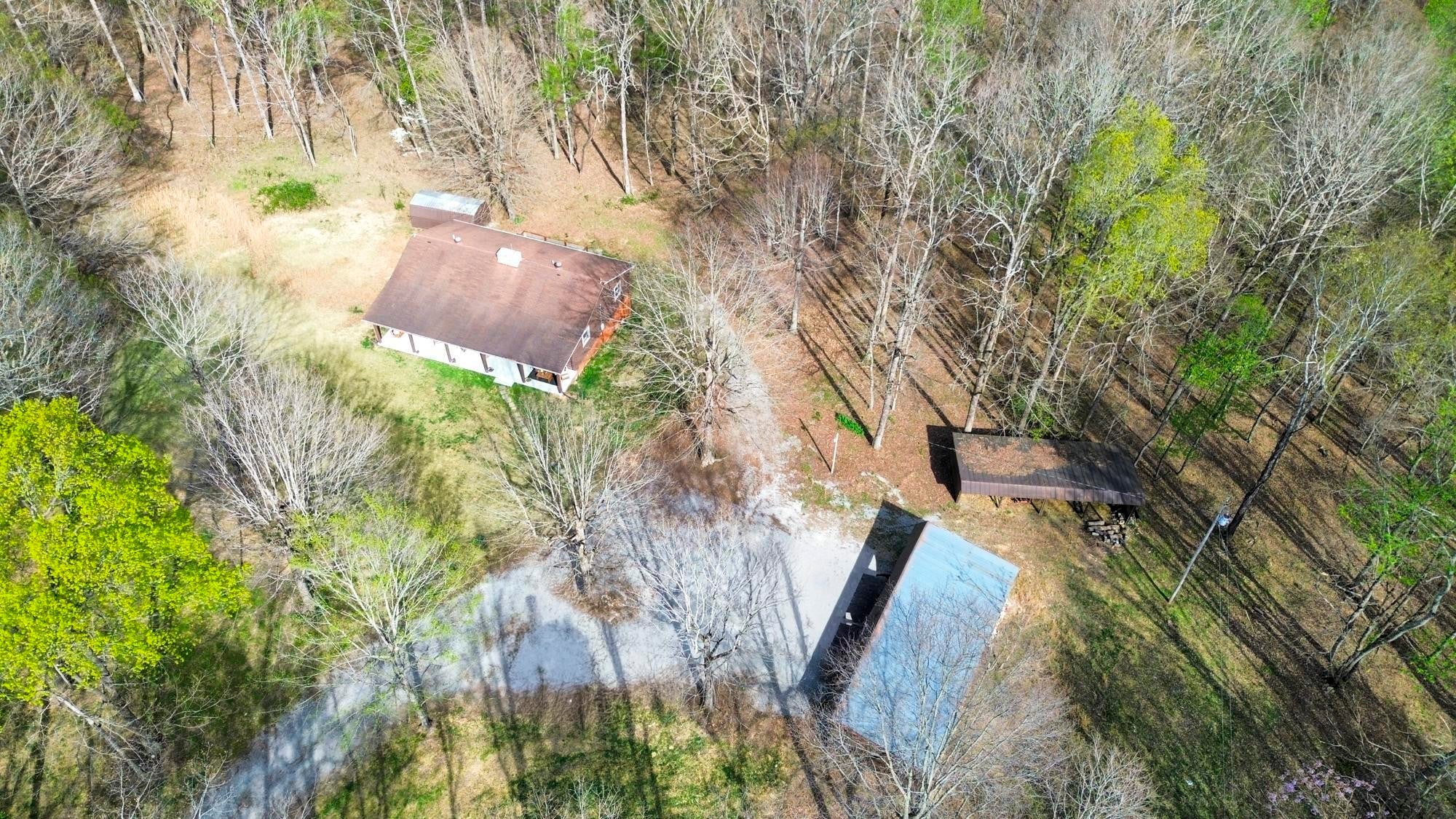 New Price and Motivated Seller! Tucked away at the end of a long private drive, 1300 Ridge Rd offers a peaceful, rustic retreat on 9.24 wooded acres — the kind of property that feels like home the moment you arrive. This 2,600+ sq ft home blends a serene homestead setting with comfortable, modern updates throughout. Step inside to a warm and inviting main level where an inviting floor-to-ceiling stone gas fireplace anchors the living space and creates a cozy gathering spot during cooler months. The fireplace subtly divides the living and dining areas, while the bright, remodeled kitchen features white cabinetry, laminate wood flooring, and easy flow for everyday living or entertaining. The dining area opens to a large sliding glass door leading to the back deck overlooking the wooded acreage — a perfect spot for morning coffee or quiet evenings. The main level includes two bedrooms, each with its own private bath, while the partially finished basement adds a third bedroom and full bath, ideal for guests or multi-generational living space. A spacious laundry room with extra storage adds everyday practicality. Outside, the property truly shines with room to roam and endless possibilities. A five-bay carport easily fits multiple full-size trucks, in addition to a one-car attached garage in the basement. You’ll also find a four-bay pole barn, additional storage building, and a second homesite from a previous residence with existing electric, water, and septic already in place. Quiet, private, and surrounded by nature, this property offers the rare combination of space, function, and timeless charm — a place to slow down, spread out, and make your own.
