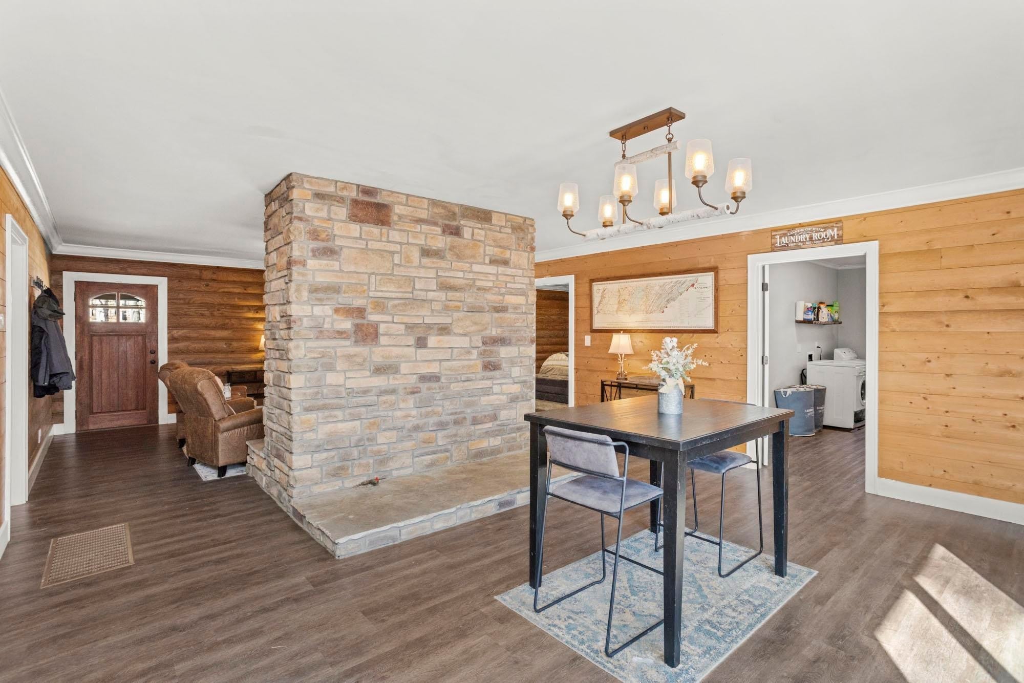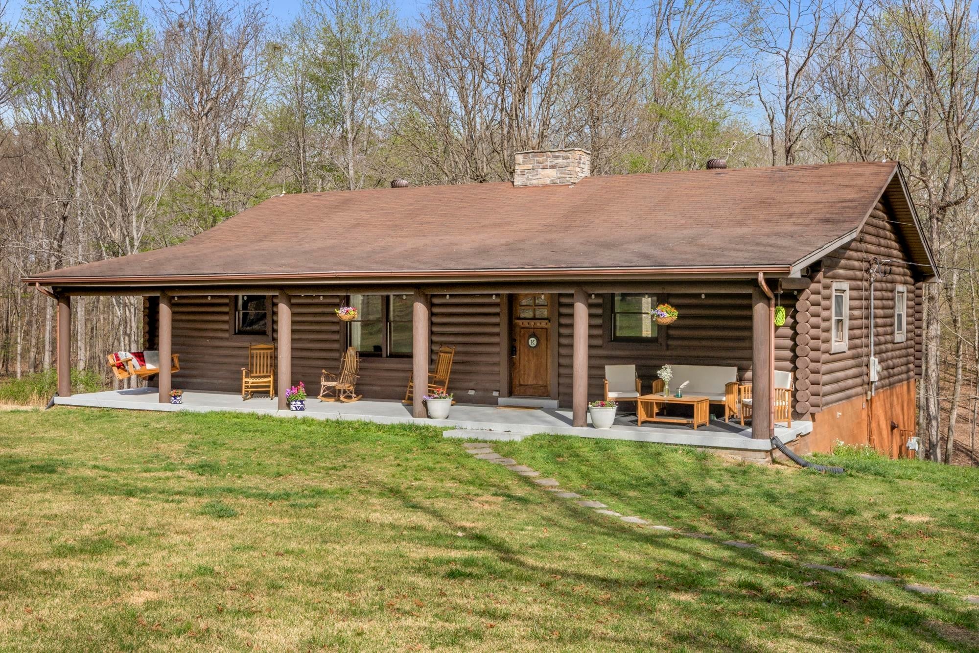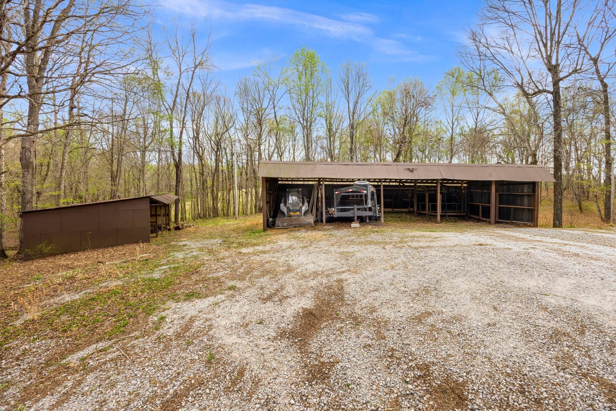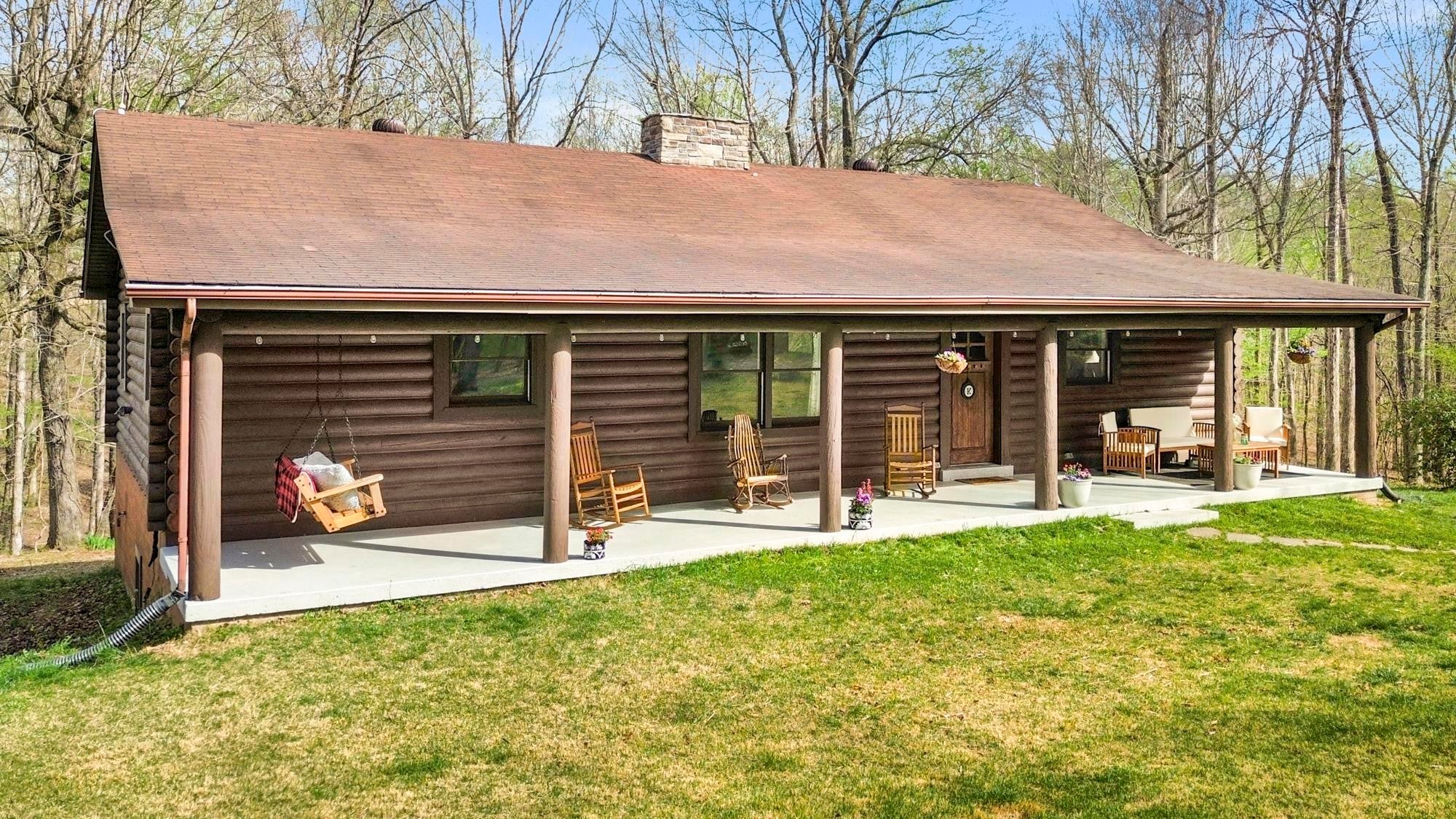 New Price and Motivated Seller! Tucked away at the end of a long private drive, 1300 Ridge Rd offers a peaceful, rustic retreat on 9.24 wooded acres — the kind of property that feels like home the moment you arrive. This 2,600+ sq ft home blends a serene homestead setting with comfortable, modern updates throughout. Step inside to a warm and inviting main level where an inviting floor-to-ceiling stone gas fireplace anchors the living space and creates a cozy gathering spot during cooler months. The fireplace subtly divides the living and dining areas, while the bright, remodeled kitchen features white cabinetry, laminate wood flooring, and easy flow for everyday living or entertaining. The dining area opens to a large sliding glass door leading to the back deck overlooking the wooded acreage — a perfect spot for morning coffee or quiet evenings. The main level includes two bedrooms, each with its own private bath, while the partially finished basement adds a third bedroom and full bath, ideal for guests or multi-generational living space. A spacious laundry room with extra storage adds everyday practicality. Outside, the property truly shines with room to roam and endless possibilities. A five-bay carport easily fits multiple full-size trucks, in addition to a one-car attached garage in the basement. You’ll also find a four-bay pole barn, additional storage building, and a second homesite from a previous residence with existing electric, water, and septic already in place. Quiet, private, and surrounded by nature, this property offers the rare combination of space, function, and timeless charm — a place to slow down, spread out, and make your own.