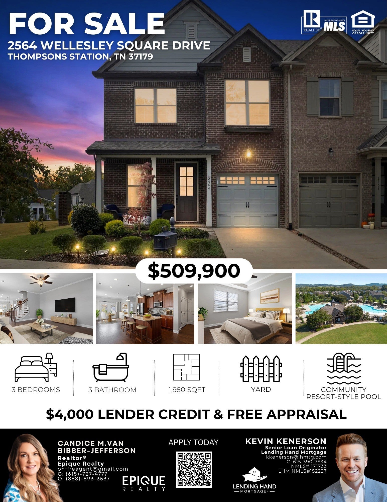 Welcome to 2564 Wellesley Square Drive, a beautifully updated end-unit townhome located in the highly desirable Canterbury community of Thompson’s Station. Blending comfort, convenience, and modern style, this 3-bedroom, 2.5-bath home offers the perfect retreat for those seeking low-maintenance living without sacrificing space or luxury. Charming Curb Appeal & Ideal Location Set on a quiet street within a well-kept neighborhood, this home welcomes you with manicured landscaping and an inviting front entry. As an end unit, you’ll enjoy added privacy, extra windows that flood the interior with natural light, and a larger yard area that enhances both the look and livability of the home. Thompson’s Station is known for its small-town charm, top-rated schools, and close proximity to shopping, dining, and entertainment in Franklin and Spring Hill. With easy access to I-65, you can reach Downtown Nashville in just 30–35 minutes—making this the perfect location for commuters or anyone who wants suburban tranquility with city convenience.