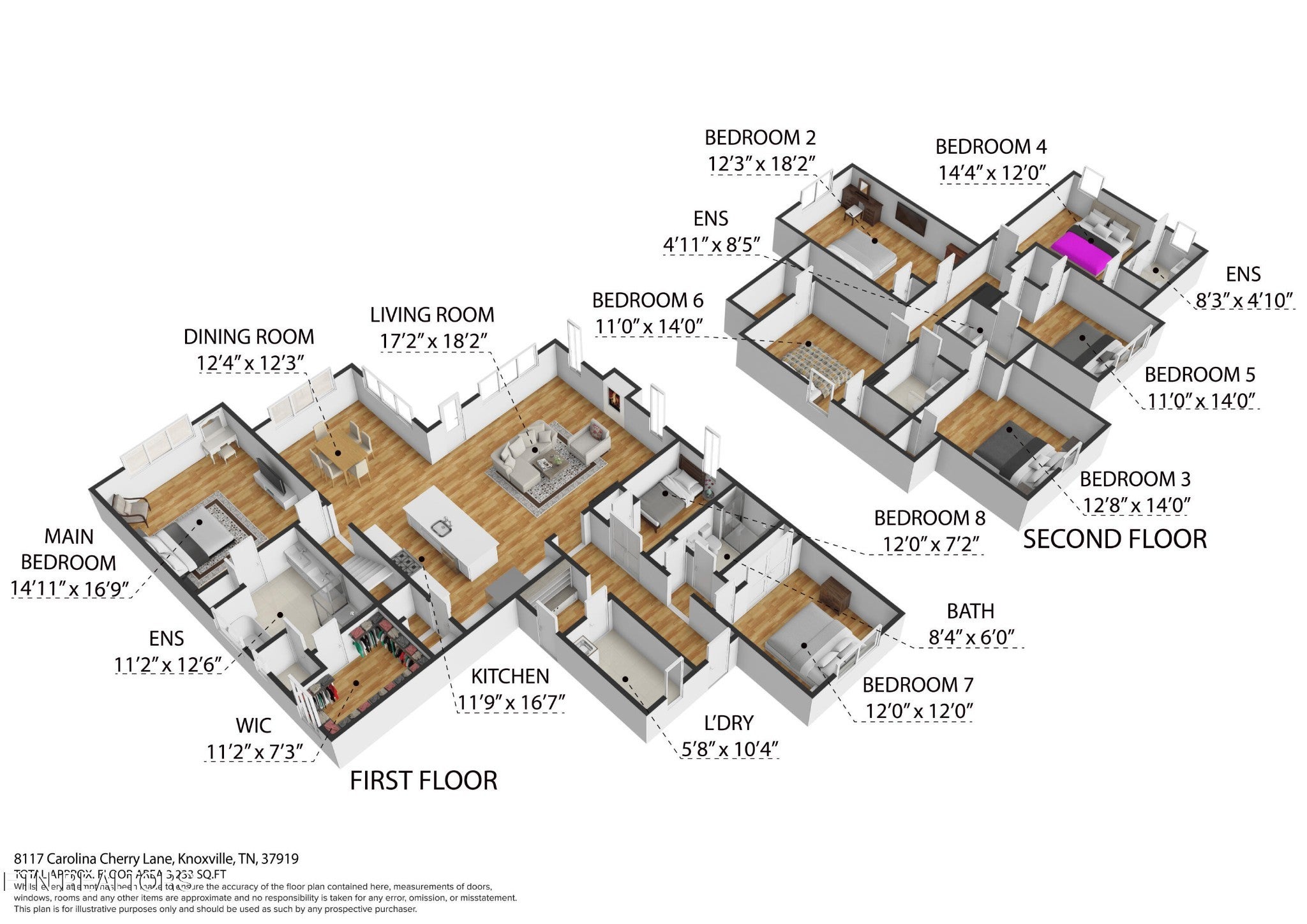 Welcome to 8117 Carolina Cherry Lane, a beautifully crafted new construction home in the heart of West Knoxville's desirable 37919 area, offering the perfect blend of modern design, timeless comfort, and thoughtful functionality. Special financing is available through our preferred lender to make your move even easier. From the moment you step into the light-filled foyer, you'll feel the difference in how seamlessly this home is designed for real life. The layout flows effortlessly, elegant enough for entertaining guests, yet warm and practical for everyday living. At the center of the home, the main level features an open-concept living experience where the kitchen, dining, and family room come together naturally. The kitchen is truly the heart of the home, offering generous workspace, a large island ideal for gathering, and a walk-in pantry that keeps everything organized and tucked away. Whether you're hosting holidays, enjoying a quiet morning coffee, or preparing meals with family, this space is built for connection. Just off the main living area, a private office provides the perfect work-from-home setup or study space. A versatile flex room adds even more options; ideal for a playroom, music room, reading lounge, or second office depending on your lifestyle. One of the standout features is the privately tucked main-level owner's suite, designed as a true retreat. Enjoy a spacious spa-inspired bath and an oversized walk-in closet that offers both luxury and everyday convenience. Upstairs, the home continues to impress with additional bedrooms and thoughtfully designed spaces for privacy and growth. A generous bonus room provides endless flexibility, while a separate media room creates the perfect setting for movie nights, game days, or relaxing with friends. Throughout the home, hardwood and tile flooring add beauty, durability, and a polished finish.