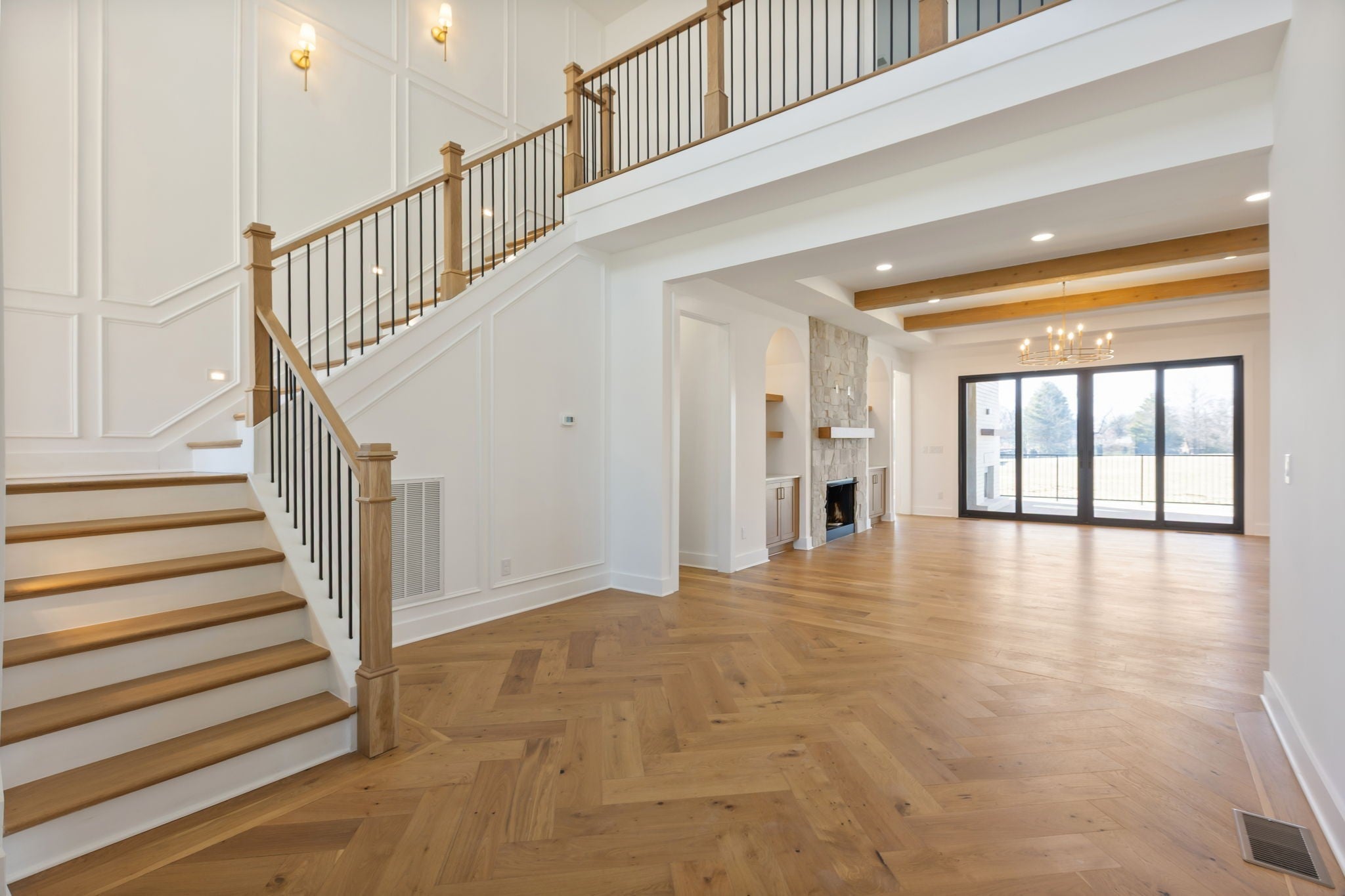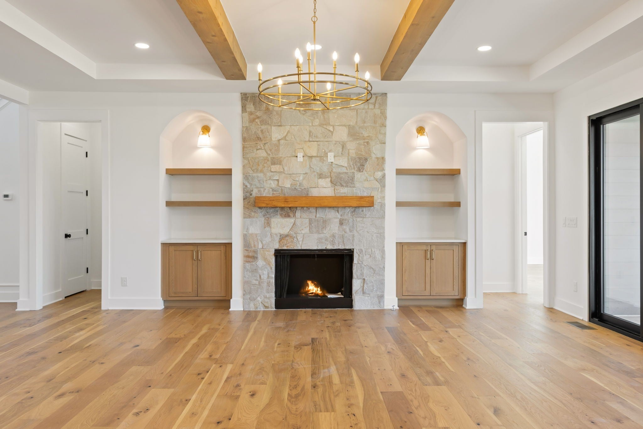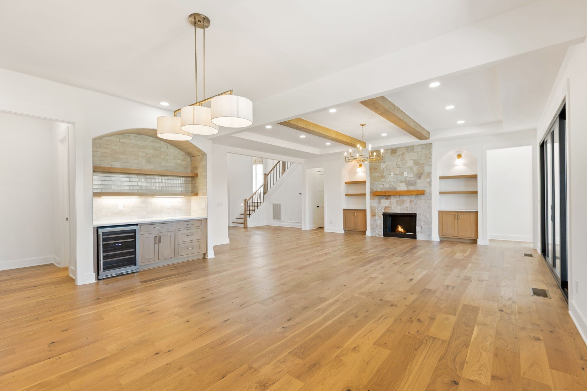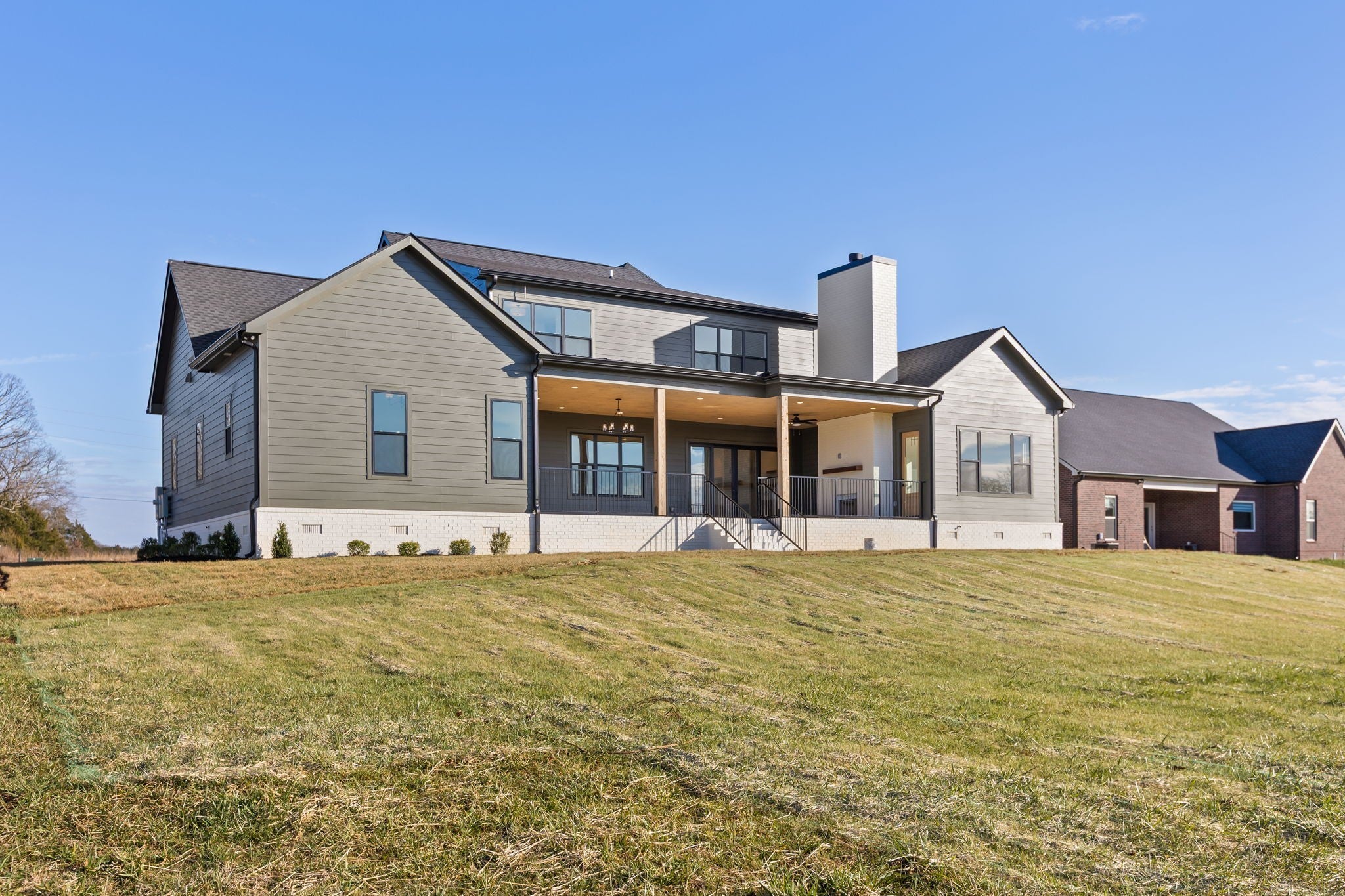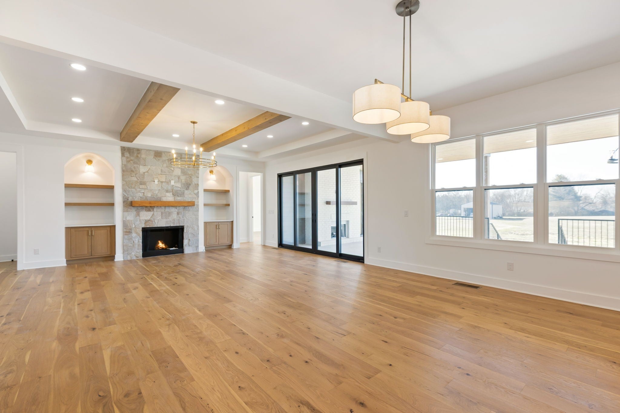 **$15k in seller paid closing costs with preferred lender.** Welcome to this stunning classic modern home that sits on just under 2 acres of land. Featuring 5 bedrooms, 4.5 baths, and a 3-car garage, this home blends functionality with timeless design. The main level features a spacious foyer with high ceilings, cedar beams throughout, a stone fireplace in the living room with built ins and a wood-burning fireplace on the covered back patio. The open kitchen features thoughtfully selected fixtures, a prep pantry with second sink and refrigerator space, a wet bar and tons of open shelving. Both the primary and guest suites on the main level have vaulted ceilings with cedar beams, with the primary featuring a massive walk-in closet with an island and a stunning primary bath with a soaking tub inside of the shower. Upstairs includes a spacious bonus room with a second wet bar, 3 bedrooms with each having access to a full bath. This beautiful home and private lot, are a perfect balance of craftsmanship, comfort, and modern style. Includes a 1-year build warranty.