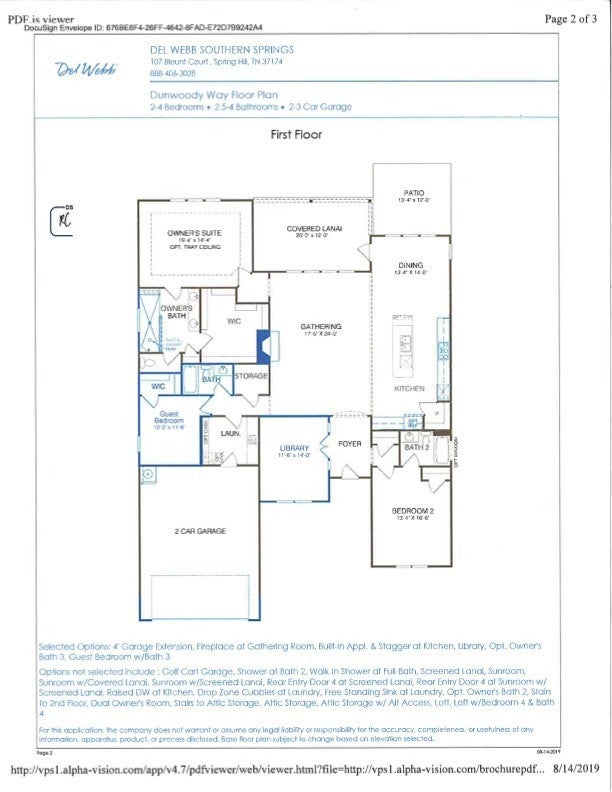 Awesome, 3 bedroom, 3 bath, Dunwoody floor plan in the highly sought after Southern Springs by Del Webb 55 plus active adult community with very low maintenance. Conveniently located in Spring Hill with easy access to I-65 and five minutes from shopping, dining, post office, and emergency room. This beautiful home is move in ready and available for immediate occupancy. Gorgeous gas log burning stone fireplace in the open concept Great Room. Upgraded kitchen with wood cabinetry, soft close doors and drawers, beverage cooler, farmhouse sink, quartz countertops, gas cooktop, built-in oven and microwave, walk-in pantry, all appliances convey. Primary bedroom with accent wall, lots of natural light, engineered hardwood floors, and ensuite bath with double sink vanities, walk-in tile shower with bench seat and rain shower head, separate water closet, linen closet, and access to huge owner's closet with modular closet system. Library/office with custom built-in cabinetry perfect for the book and art collector. This executive style home, all one level, has many high end custom finishes. Storage in the laundry room with built-in cabinetry, drop zone, and sink. Lanai with easy breeze windows for year round use overlooking the fenced backyard. Epoxy coating on front porch, lanai and garage for easy maintenance and cleaning. Seller has an accepted offer with a 72-hour right of first refusal contingency. Community has indoor and outdoor pools, pickle ball, and tennis courts, gas fire pit, pavilion with gas grills and patio tables, clubhouse with fitness center and fitness classes, ball rooms, kitchen, conference room, card/game room, massage room, locker rooms, and a dog park. Over 70 clubs and special interest groups, special programs, presentations, concerts, choir and band, photography, painting, quilting, solo clubs, coffee club, Veteran's club, and so much more. Living in Southern Springs is like vacationing at a very active resort. Thirty-five minutes to/from BNA.