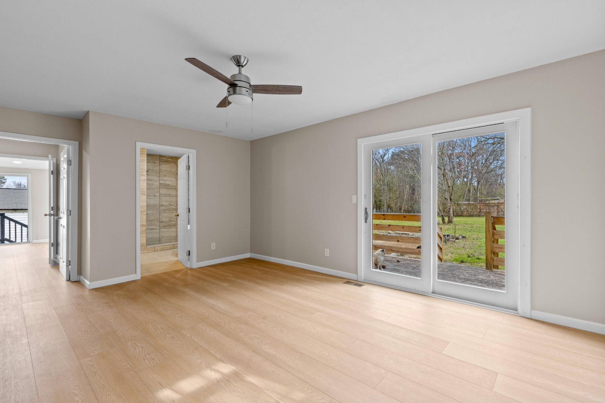 Welcome to 1114 McBrien Rd., a thoughtfully designed 4-bedroom, 2.5-bath home set on just under half an acre, offering space, privacy, and flexibility. With three separate entrances, this property provides versatile living options ideal for everyday living or hosting guests. Inside, a spacious living room creates a comfortable gathering space, while the kitchen features a warm wooden backsplash, ample cabinetry, and a dedicated pantry for storage. A sunroom filled with natural light offers a peaceful retreat and features sliding doors that open to a private balcony/deck, creating a seamless connection between indoor and outdoor living. The primary suite is a true retreat, complete with sliding doors that lead to a private deck overlooking the expansive yard—perfect for morning coffee or evening relaxation. The primary bathroom impresses with stone accents, a walk-in shower, and a soaking tub designed for unwinding. Three additional bedrooms share a full bathroom, and a convenient half bath is perfectly situated for guests. With generous living spaces and multiple outdoor areas, this home blends comfort, functionality, and room to breathe.