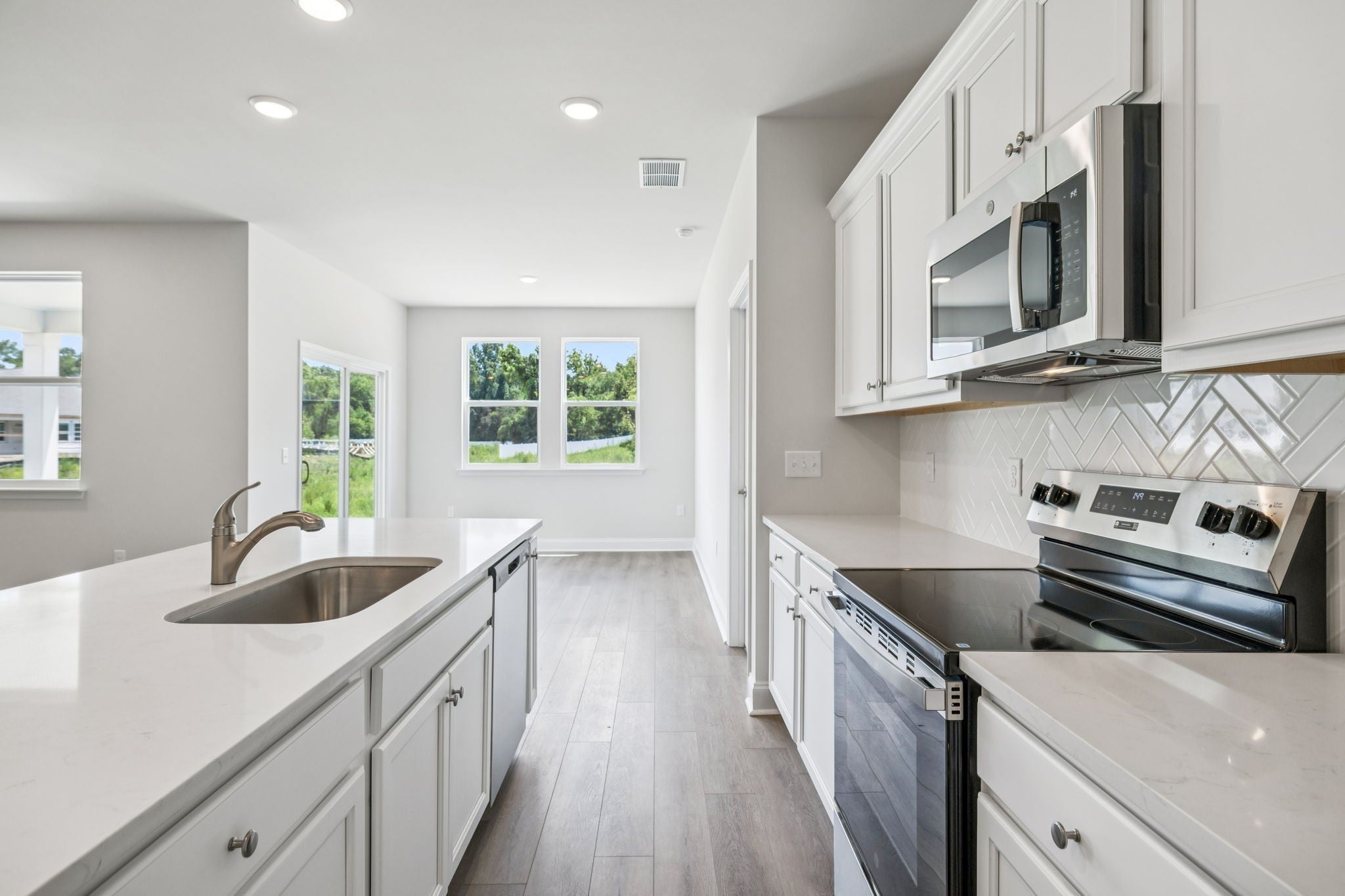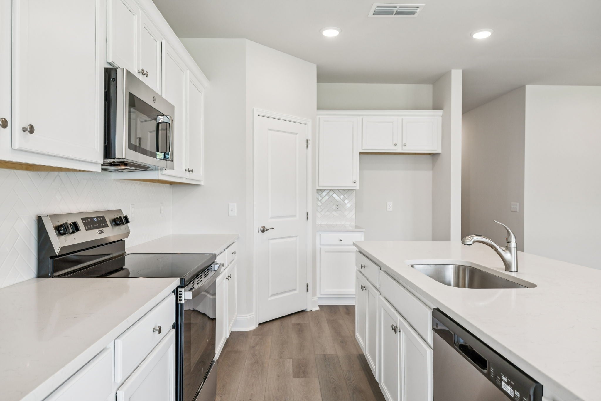 - Electric Range, Dishwasher, Disposal, Microwave, Stainless Steel Appliance(s), Smart Appliance(s)