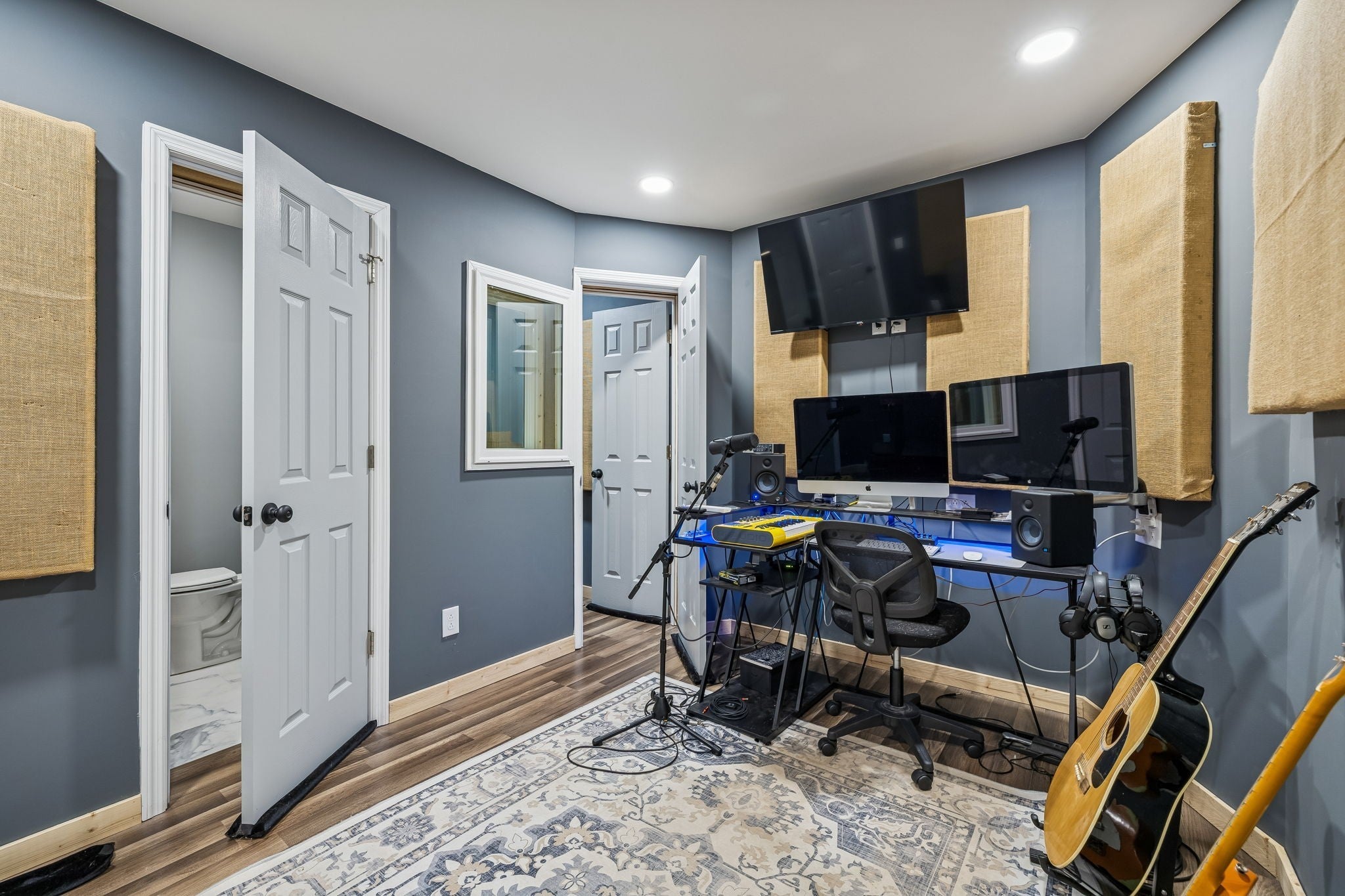 This custom built, one owner home is ready for its next chapter~a one level Ranch home situated on 2.29 acres could be a dream for any music lover or maybe you just need room for a guest but not in the main house~this split bedroom floorplan also has a semi-open concept great for entertaining and a large dining area for that heirloom table you won't part with~the studio apartment has sleeping quarters as well as a music/recording studio so airbnb could be an option or lease out the recording studio for the day~the main has beautiful hardwood floors throughout the home NO CARPET~the master suite is large enough for a king size bed and nightstands and dressers but who needs dressers when you have a very nice walk-in closet with built-in organizational shelving units~a gorgeous bath with large soaking tub and separate tiled shower, double vanities with marble counters and designer lighting~a laundry room that has room for additional freezers~not to mention a separate office for those that work from home~come see what all this property has to offer