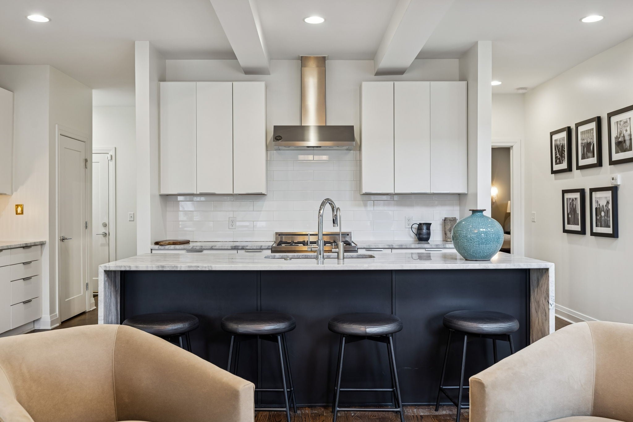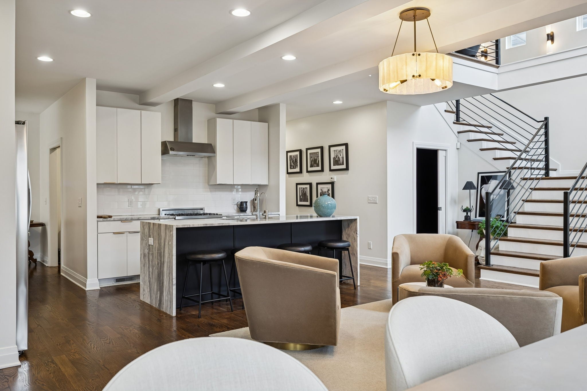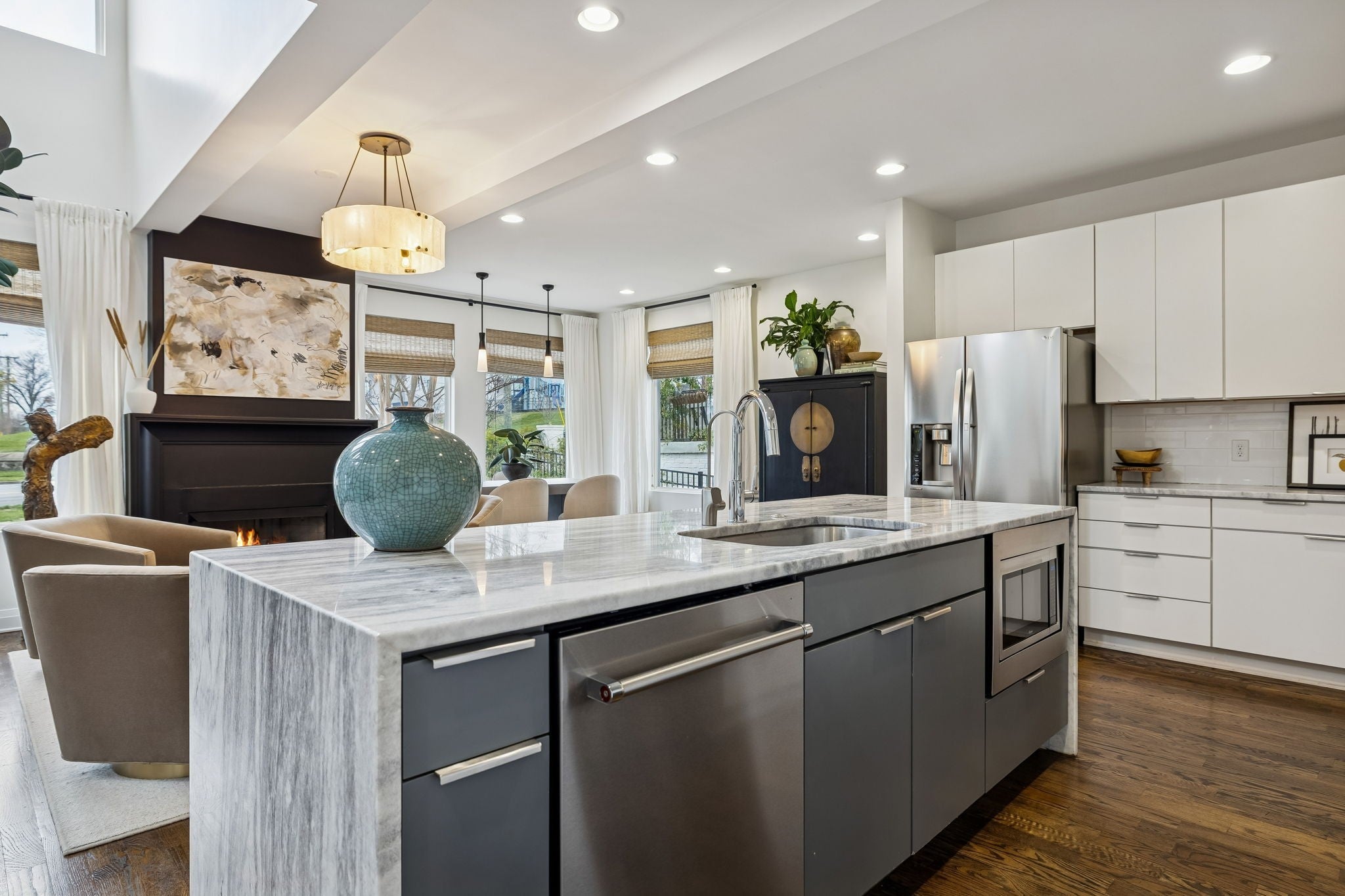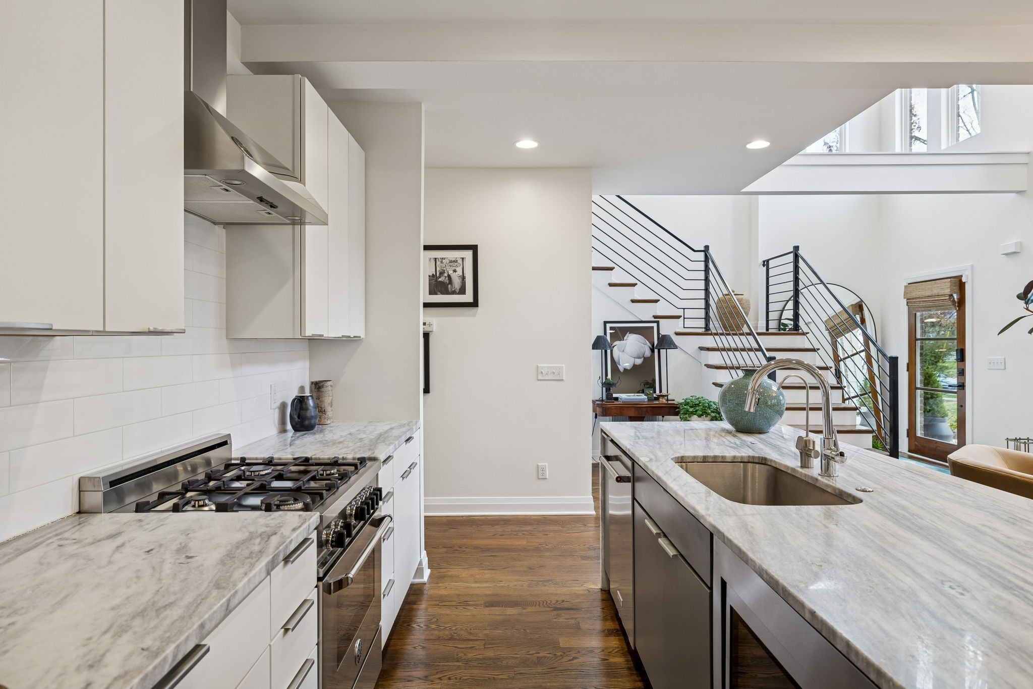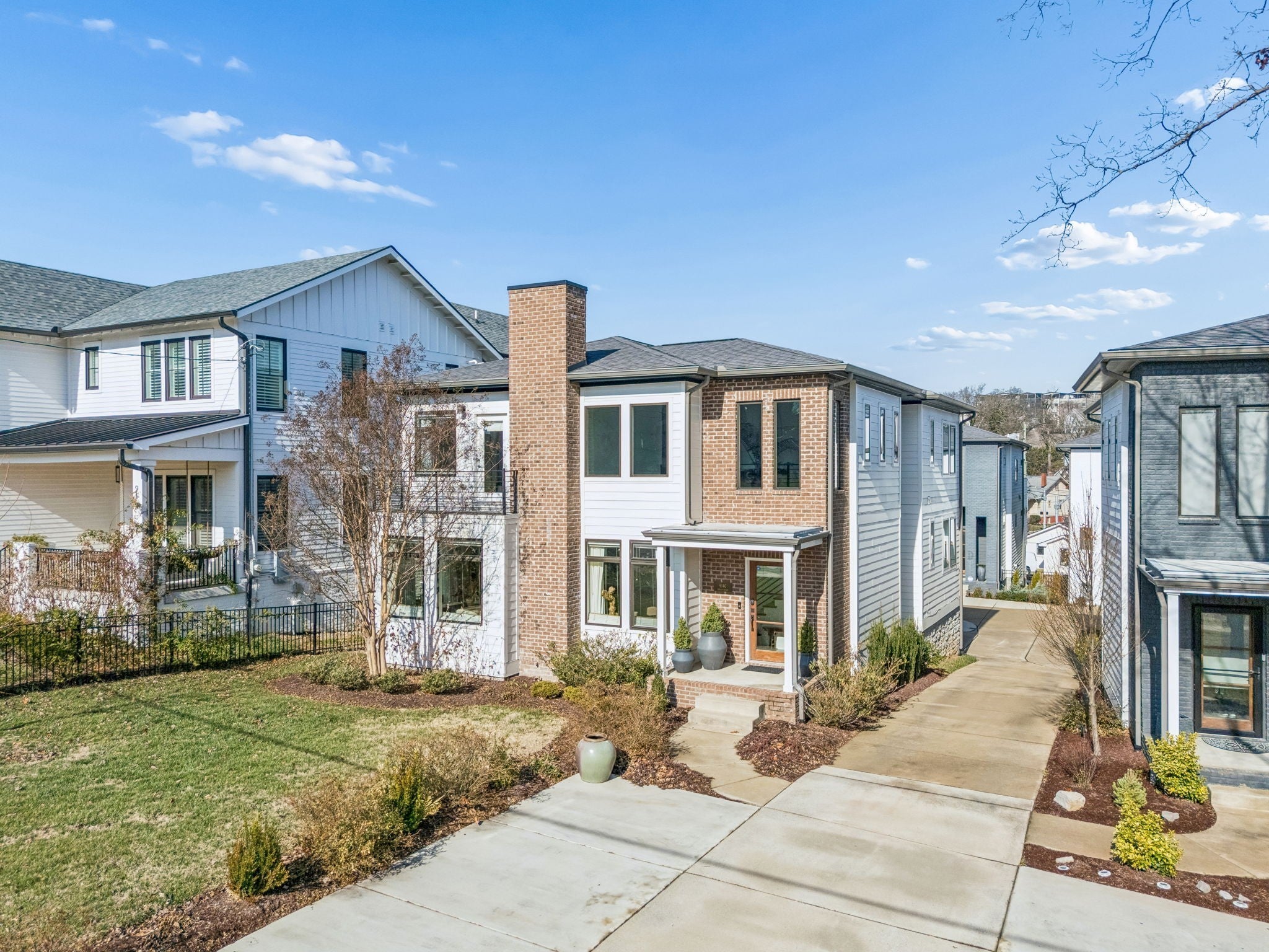 The best priced detached home in 12 South with a 2 car garage! Welcome to this elegant, low maintenance Nashville home perfectly situated within walking distance to the vibrant 12 South restaurants and shops. This stunning residence boasts an open floor plan with soaring high ceilings and south-facing windows that flood the space with natural light. The first level features a luxurious primary suite with spacious ensuite bathroom with walk-in shower + bathtub, a large walk-in closet, convenient laundry, and extra storage. Upstairs, you'll find two ensuite bedrooms, each with their own walk-in closets for ultimate comfort and privacy, a family room + home office. The heart of the home is the large kitchen, equipped with a Bertazzoni range and a generous island ideal for entertaining. Cozy up by the gorgeous gas fireplace in the inviting living area, and enjoy the ease of direct access to a two-car garage. The rooftop deck offers an inviting space for al fresco dining or a relaxing glass of wine, perfect for enjoying Nashville’s beautiful weather. This home combines gorgeous finishes with thoughtful design for a truly exceptional living experience. Recent improvements include interior & exterior paint, landscaping with drip irrigation, EV charger in garage, & modern light fixtures. With a central location near Wedgewood Houston, Vanderbilt & Belmont Universities, I-65, downtown and the airport this home's location will be hard to beat!