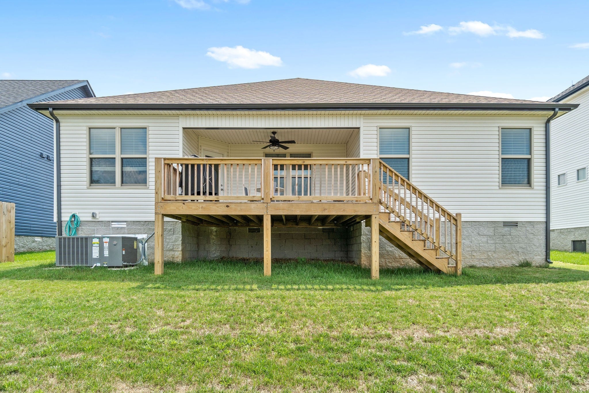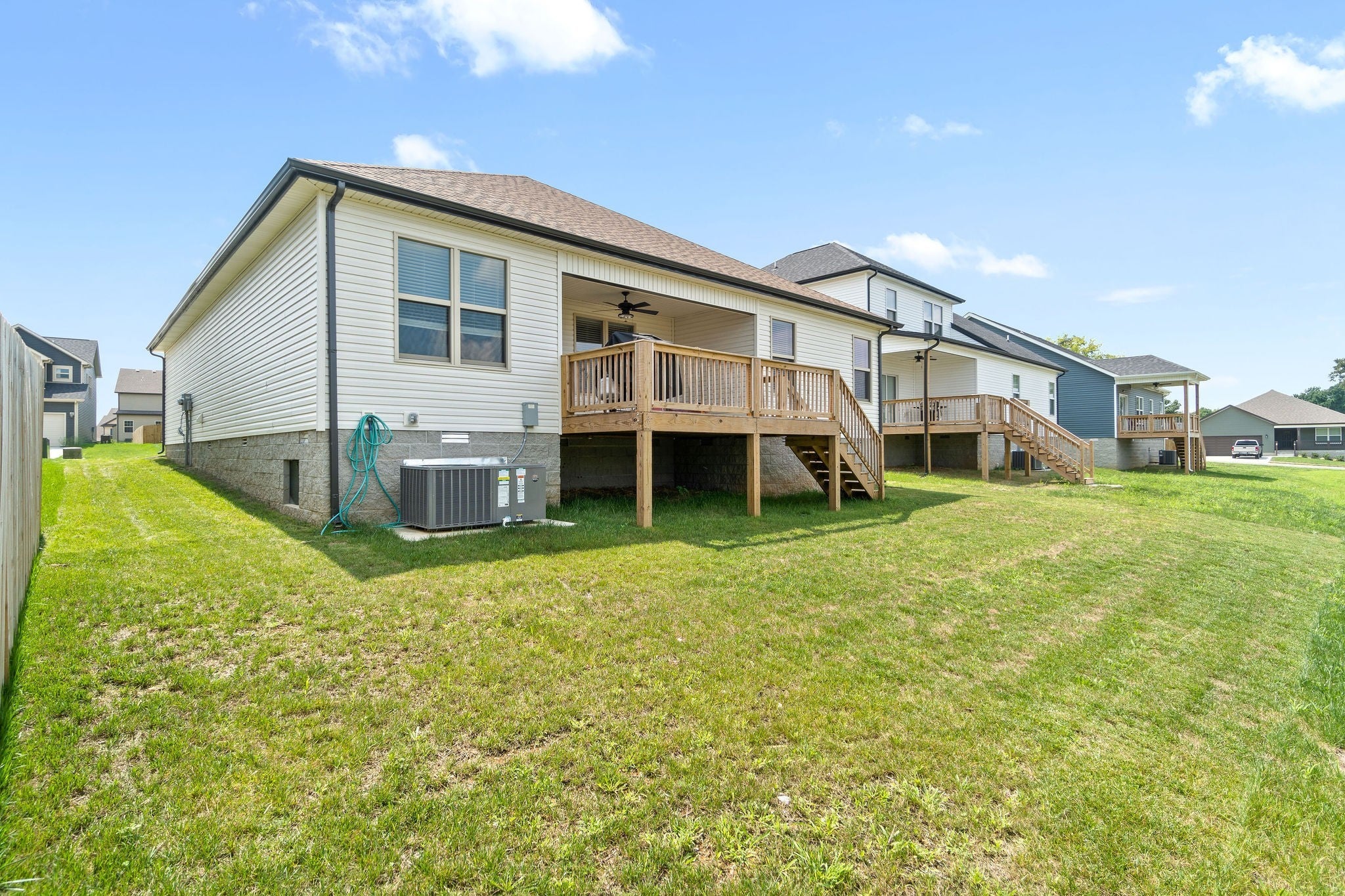 Adorable true ranch with beautiful barn wood floors, wide open floor plan, spacious living room opens to gorgeous eat in kitchen featuring granite counters & stainless steel appliances, large primary suite with awesome tiled shower and double vanity, oversized guest rooms, two car garage, and partially covered deck! Pet friendly home! Pet rent applicable.