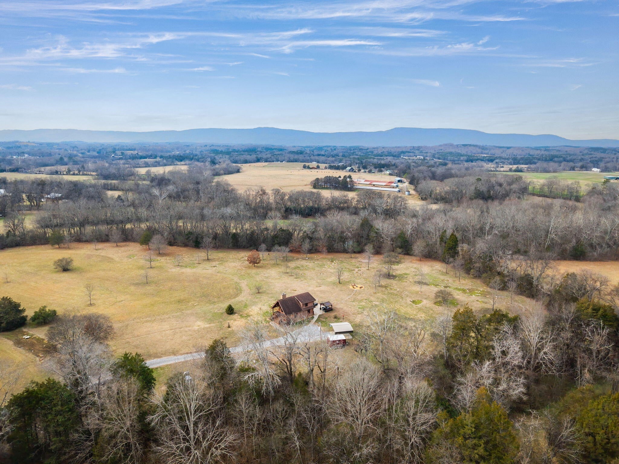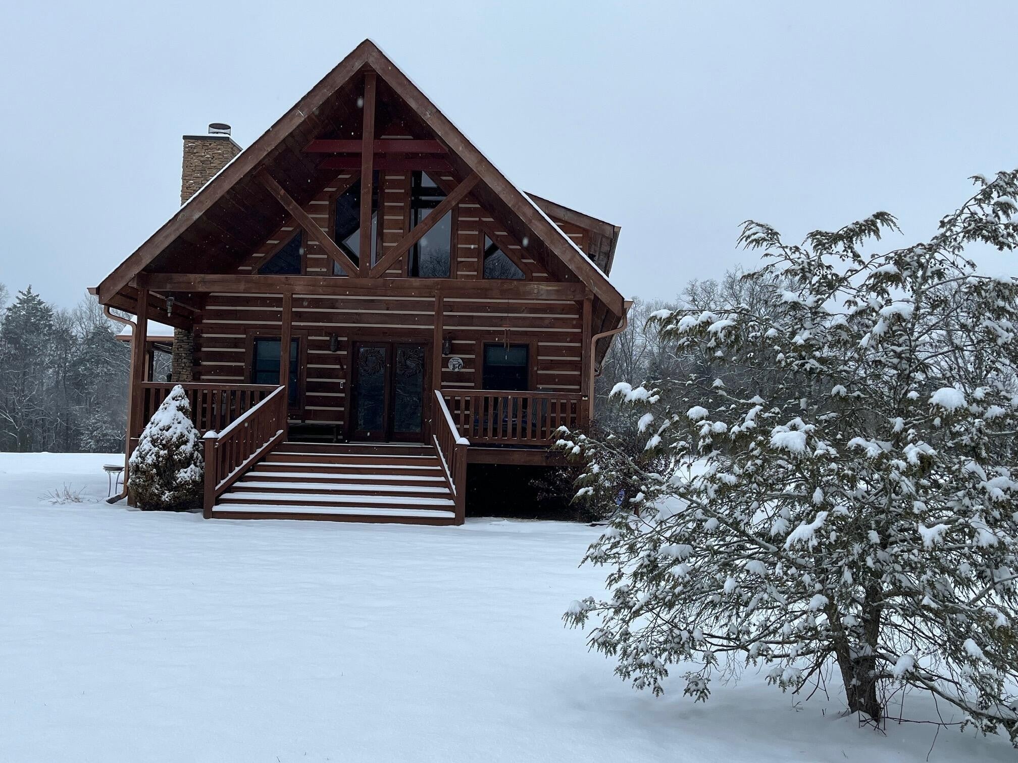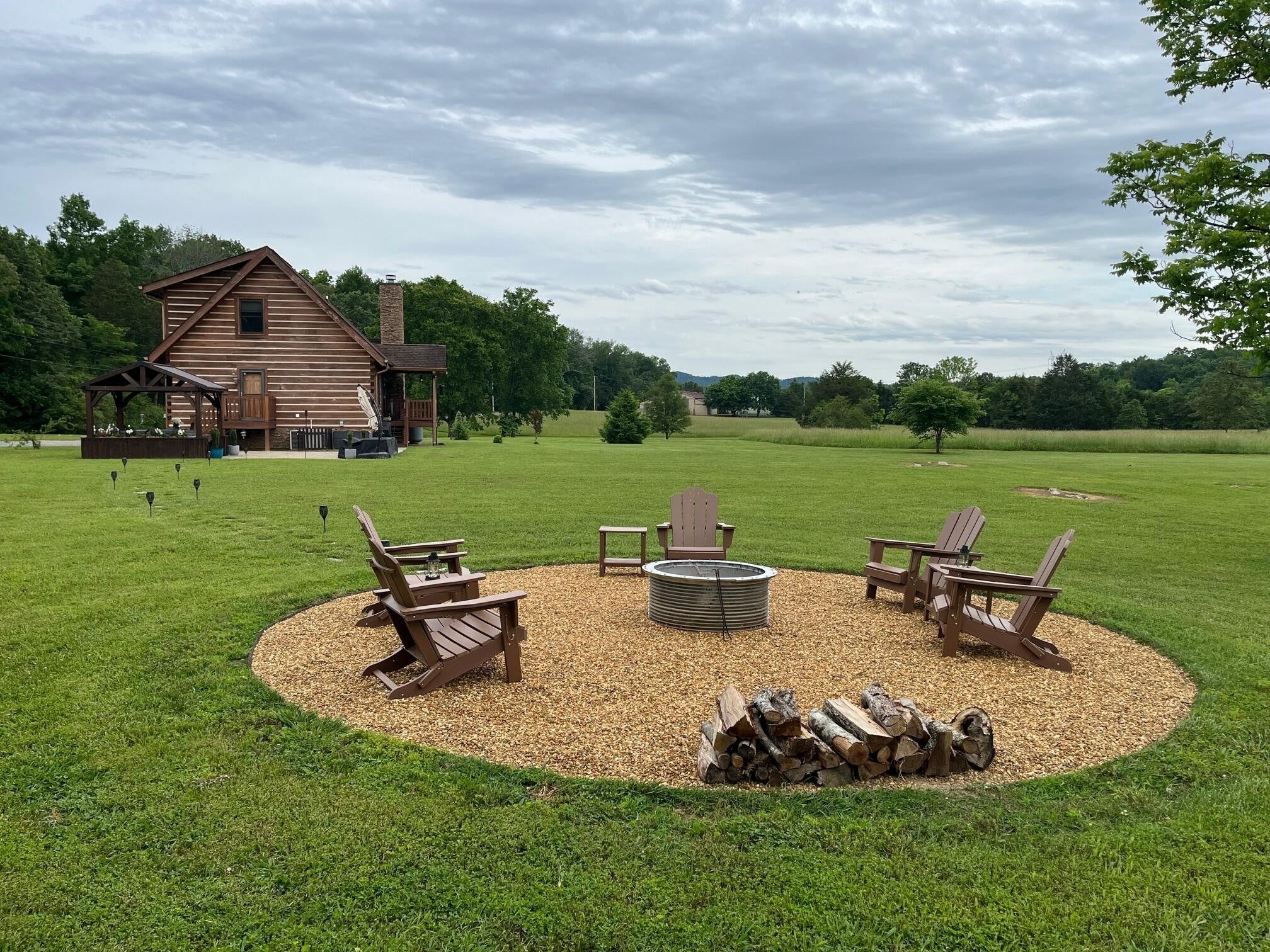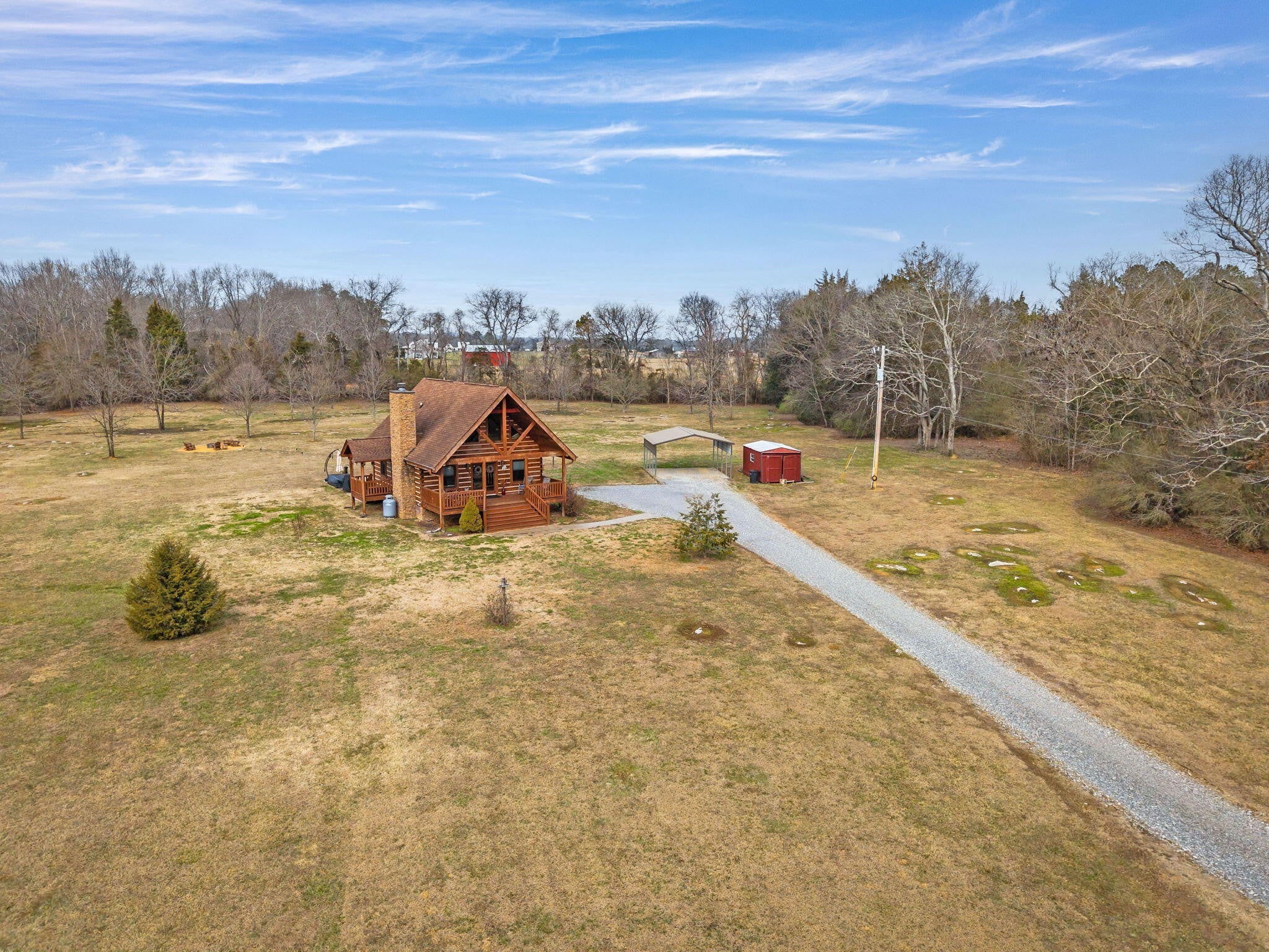 Set on 27 private acres with half a mile of creek frontage, this fully furnished short-term rental property offers a rare combination of lifestyle appeal and income potential. The log cabin blends rustic character with modern comfort, featuring vaulted wood ceilings, exposed beams, an open-concept living and kitchen area, and a versatile loft space ideal for additional sleeping or lounging. The home also includes floored attic storage with two 12x4 storage rooms, providing valuable owner storage for STR operations. Outdoor amenities elevate the guest experience and support strong rental demand. A 30x30 patio with gas BBQ creates an ideal gathering space, while a stone walkway leads to a dedicated fire pit area for evenings outdoors. Guests can enjoy the on-site disc golf course, explore the expansive acreage, and relax along the creek, making the property well suited for weekend getaways, group stays, and experience-driven rentals. The land includes two additional building sites, offering significant upside for investors. These sites present opportunities for future cabins, glamping units, or facilities that could support boarding for horses, allowing guests to travel with their animals or enjoy equestrian experiences as part of their stay. This added flexibility creates multiple paths to expand revenue streams while enhancing the property's appeal to a broader STR audience. Offered fully furnished, this is a turnkey opportunity for investors seeking a vacation rental with strong experiential appeal, expansion potential, and long-term versatility. Whether operated as a single high-performing retreat or developed into a multi-unit destination property, this acreage provides the space and features to support both immediate income and future growth.