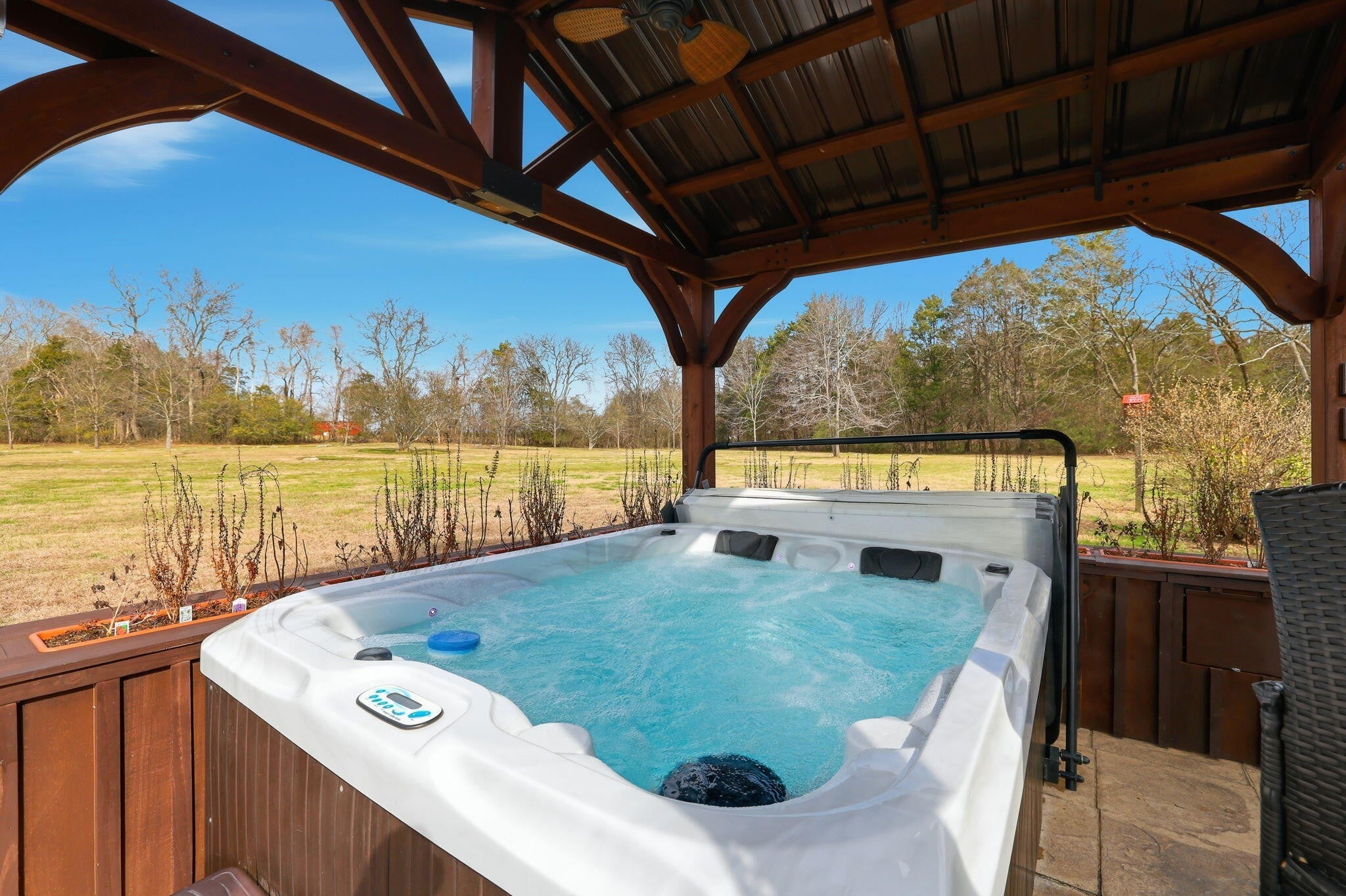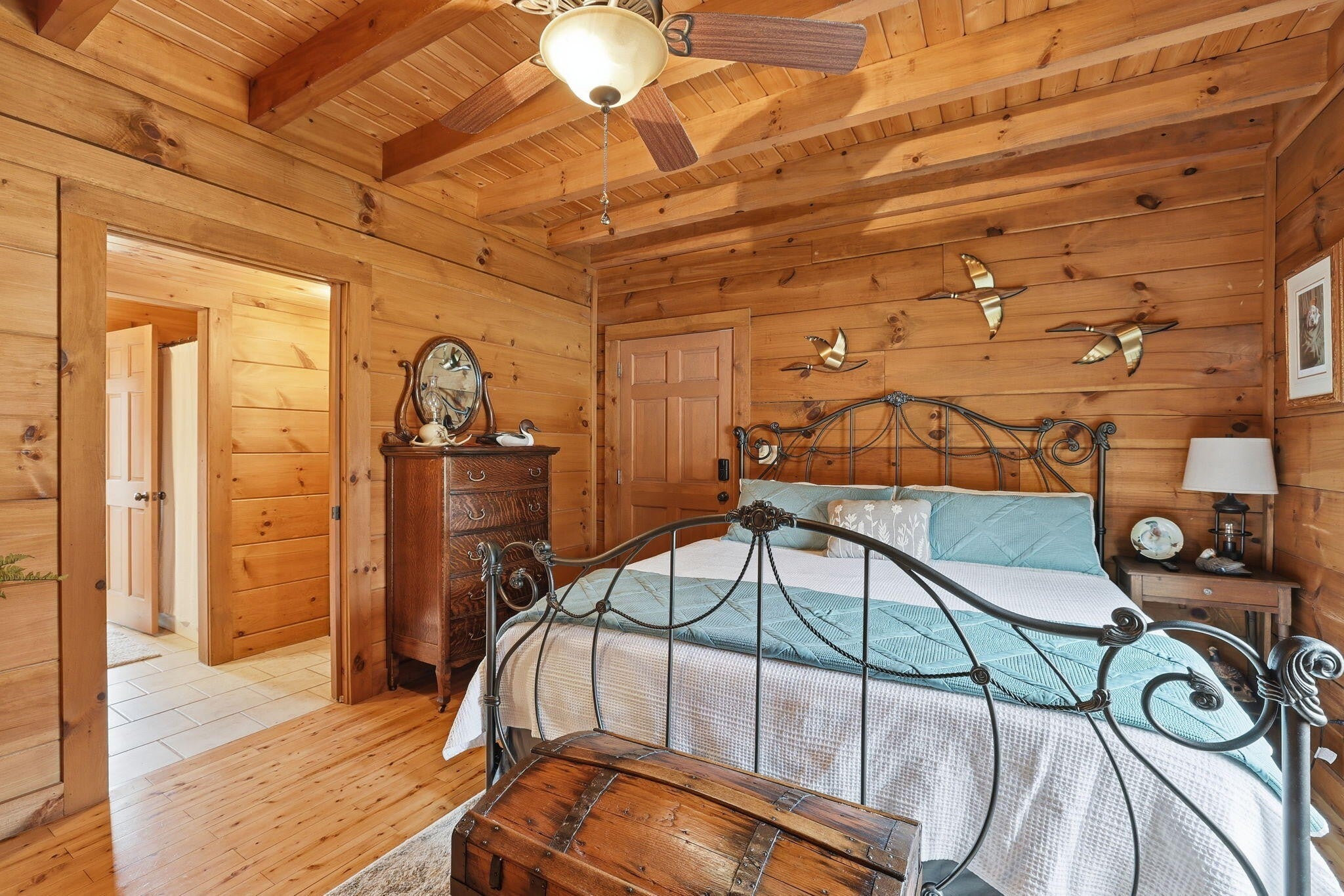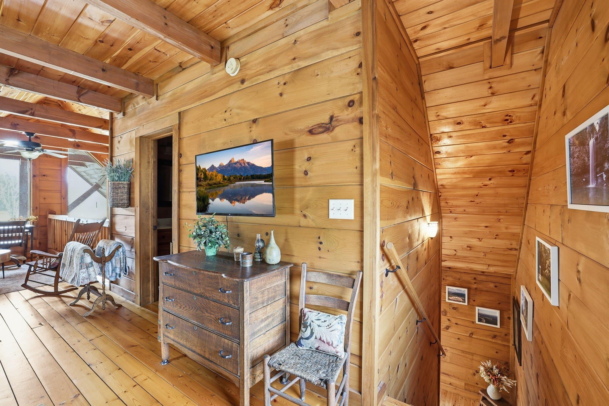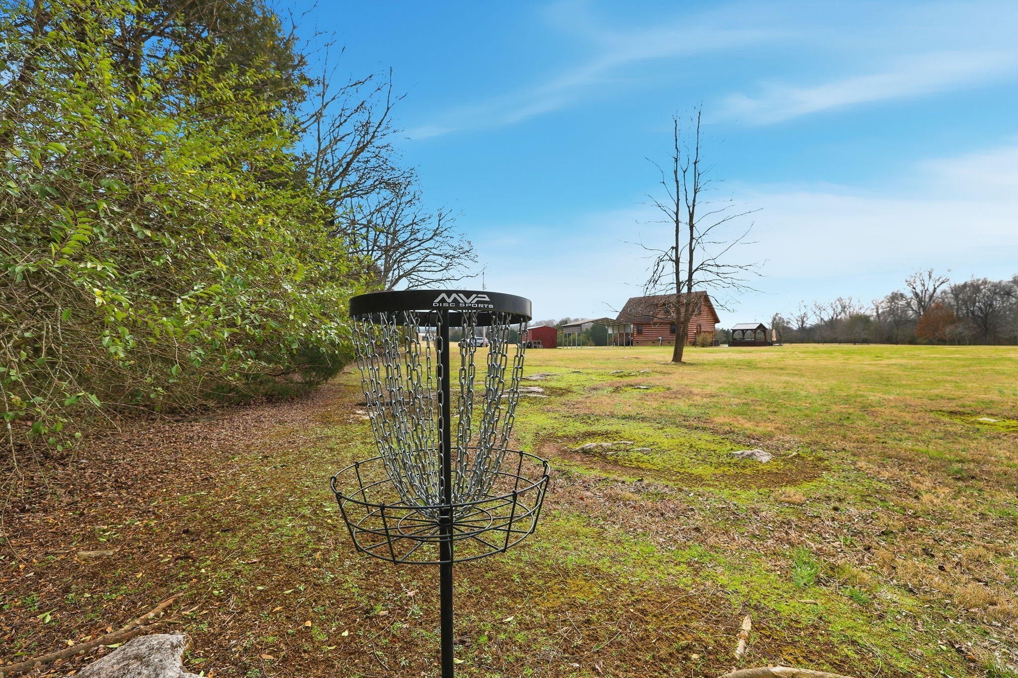 Set on 27 private acres with half a mile of creek frontage, this fully furnished short-term rental property offers a rare combination of lifestyle appeal and income potential. The log cabin blends rustic character with modern comfort, featuring vaulted wood ceilings, exposed beams, an open-concept living and kitchen area, and a versatile loft space ideal for additional sleeping or lounging. The home also includes floored attic storage with two 12x4 storage rooms, providing valuable owner storage for STR operations. Outdoor amenities elevate the guest experience and support strong rental demand. A 30x30 patio with gas BBQ creates an ideal gathering space, while a stone walkway leads to a dedicated fire pit area for evenings outdoors. Guests can enjoy the on-site disc golf course, explore the expansive acreage, and relax along the creek, making the property well suited for weekend getaways, group stays, and experience-driven rentals. The land includes two additional building sites, offering significant upside for investors. These sites present opportunities for future cabins, glamping units, or facilities that could support boarding for horses, allowing guests to travel with their animals or enjoy equestrian experiences as part of their stay. This added flexibility creates multiple paths to expand revenue streams while enhancing the property's appeal to a broader STR audience. Offered fully furnished, this is a turnkey opportunity for investors seeking a vacation rental with strong experiential appeal, expansion potential, and long-term versatility. Whether operated as a single high-performing retreat or developed into a multi-unit destination property, this acreage provides the space and features to support both immediate income and future growth.