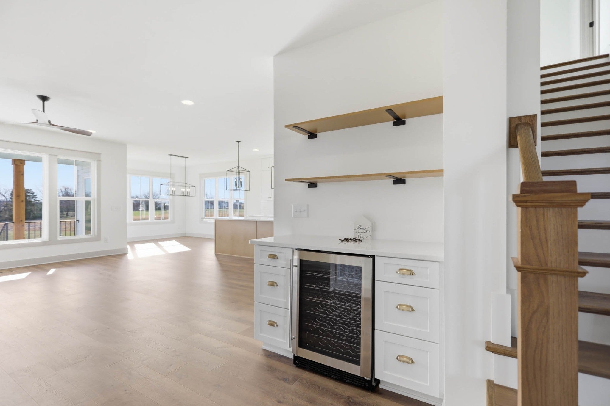 - Air Filter, Bookcases, Built-in Features, Ceiling Fan(s), Entrance Foyer, Extra Closets, High Ceilings, Open Floorplan, Pantry, Walk-In Closet(s), Kitchen Island