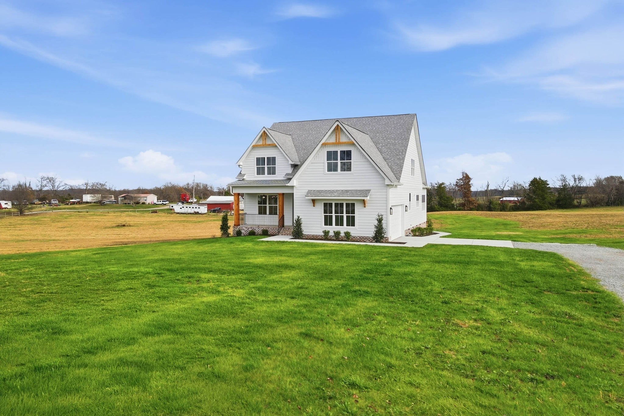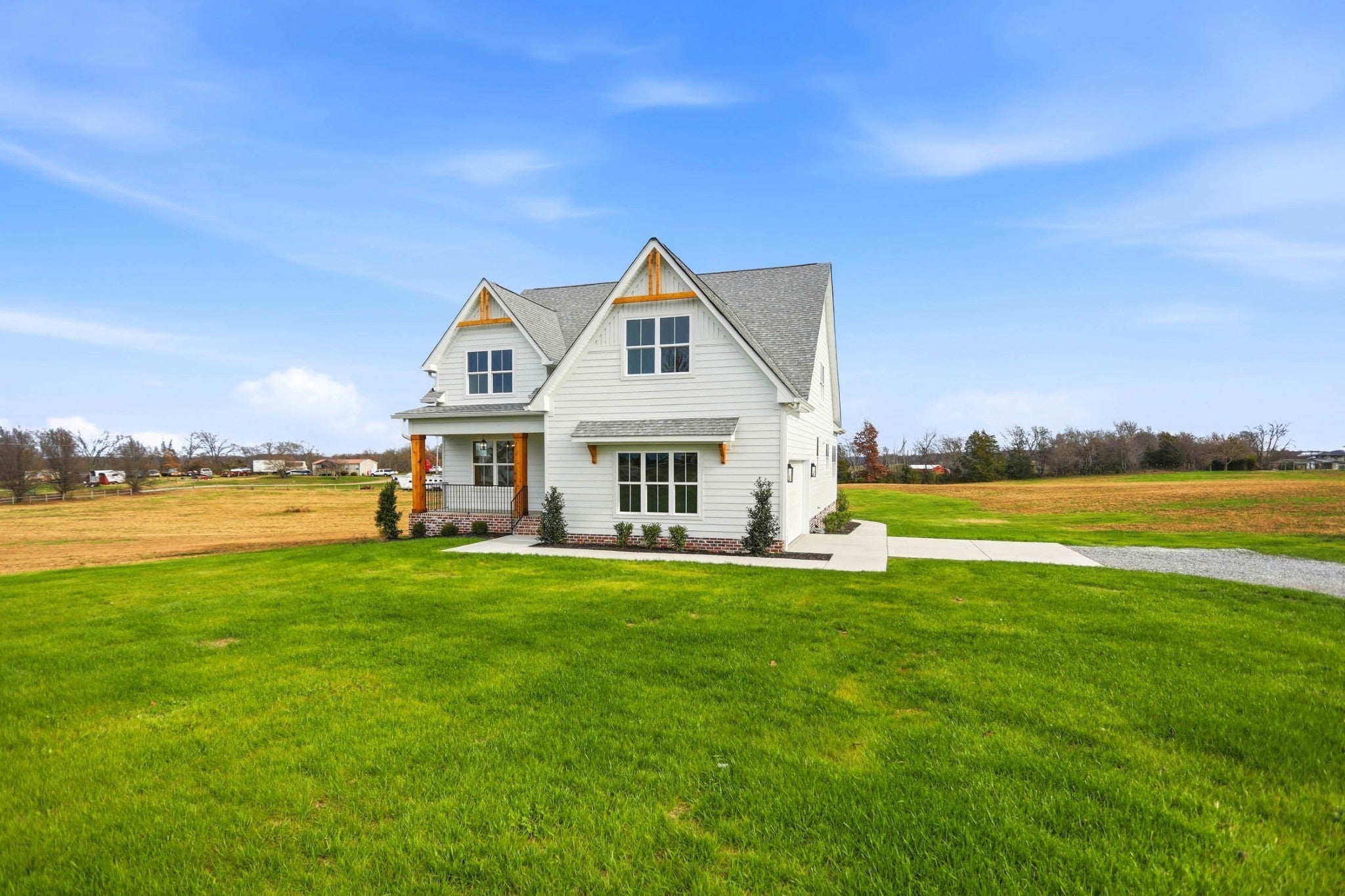 Priced at nearly $50K under appraisal value! Ask me to see the appraisal dated 12-10-25. $6500 Lender Credit and free appraisal with Preferred Lender. Escape to your own private oasis in this stunning three-bedroom, 3 full bathroom modern farmhouse, nestled on two serene acres of land. This custom-built home seamlessly blends rustic charm with high-end finishes, offering a perfect balance of comfort & style. The heart of the home features pristine quartz countertops, stainless steel appliances, a very spacious island, a well-equipped butler's pantry & custom designed cabinetry for an abundance of storage. This kitchen makes hosting & organization a breeze. Every detail of this home has been thoughtfully curated, from the custom light fixtures that illuminate each room, to the built-in beverage center, and the expertly chosen custom paint colors that create a welcoming atmosphere throughout. Enjoy the ultimate practicality with two separate laundry rooms, providing unmatched convenience for a busy household. (Undercounter LG Smart Washer & Dryer Set is included on main level). The three generously sized bedrooms offer a private retreat, while the three beautifully appointed bathrooms feature modern fixtures and finishes. The two-acre lot provides ample space for outdoor living, whether you envision a lush garden, a pool, outbuilding, or play area for family and friends. The electrical service is upgraded to accommodate a future pool, pool house and/or outbuilding. This home is the perfect blend of charm and functionality. From the moment you step onto the extended front porch and walk inside, you will feel at home. This property offers endless possibilities for creating your dream lifestyle, all while enjoying the peace and tranquility of a spacious modern farmhouse. Don't miss this opportunity to make this exquisite property your own.