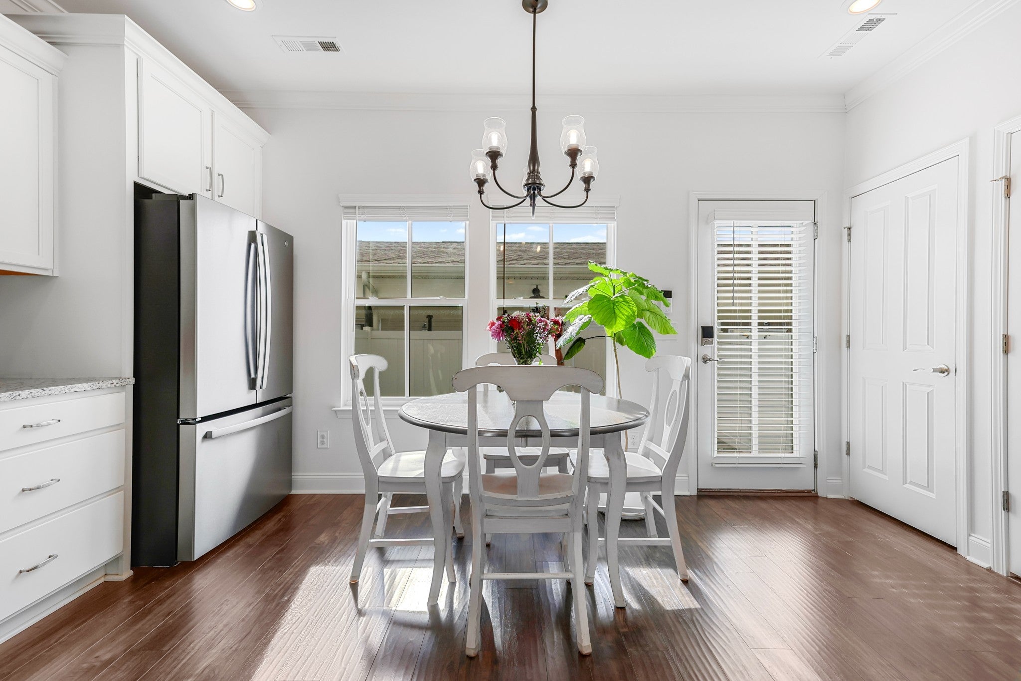 Beautifully maintained 3-bedroom, 2.5-bath townhome in the highly desirable Carothers Farms community. This home features a thoughtfully upgraded interior with timeless white kitchen cabinetry, subway tile backsplash, designer Kichler lighting, and durable luxury vinyl plank flooring on the main level and second-floor hallway. Enjoy a low-maintenance turf backyard and modern conveniences including an outlet capability of level two charging speeds for an electric vehicle. Blinds are installed throughout, and upgraded paint adds a fresh, elevated feel. A move-in-ready home with quality upgrades throughout—don’t miss this one. Additionally, this neighborhood offers amenities galore including a dog park, community garden, event barn, tot-lot and in-community coffee shop.
