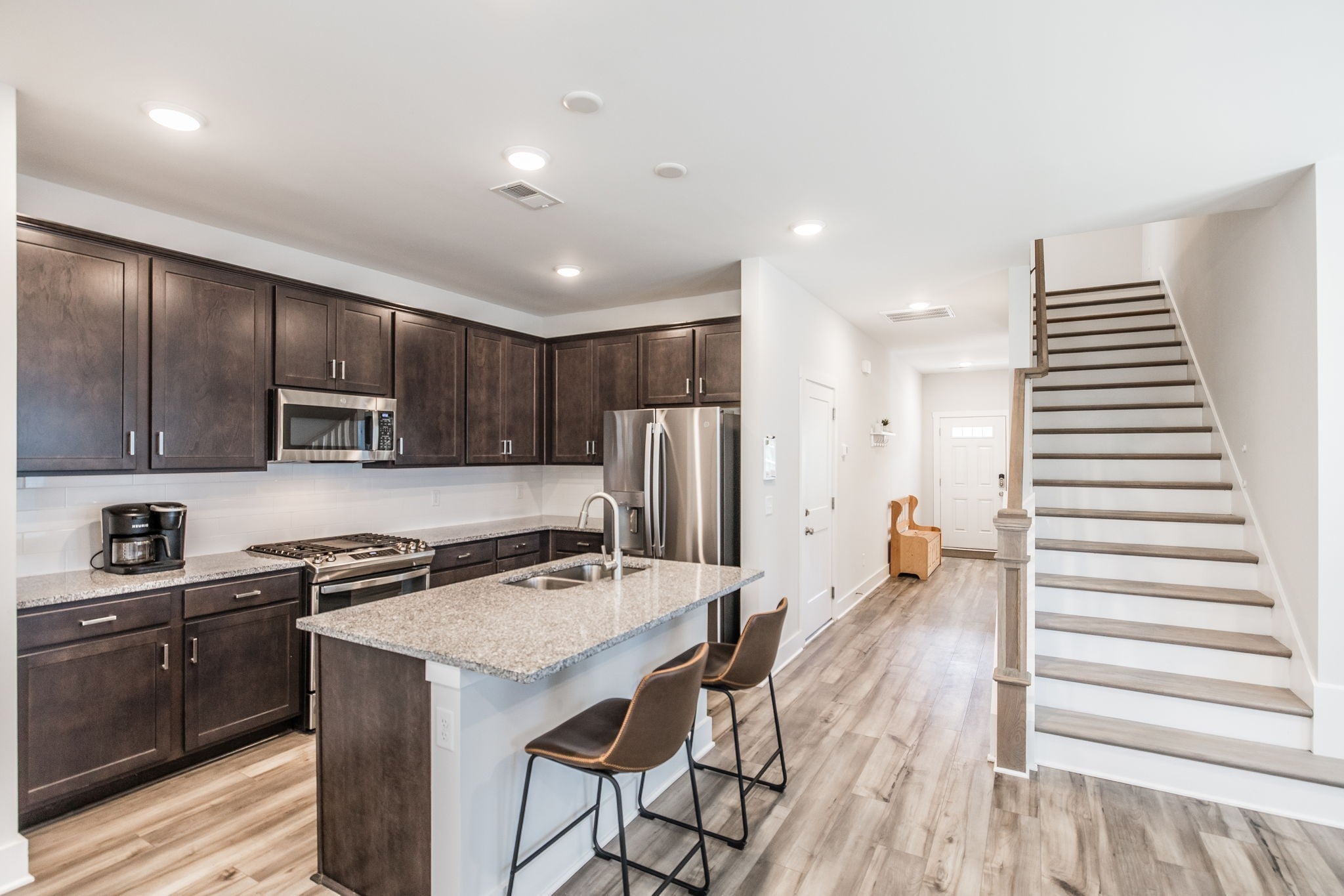 - Electric Oven, Gas Range, Dishwasher, Disposal, Microwave, Stainless Steel Appliance(s)