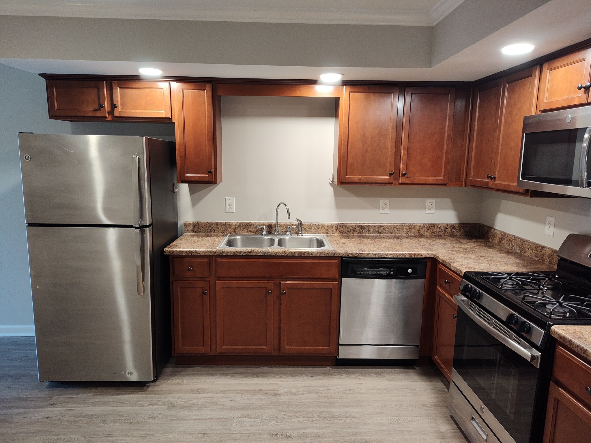 - Gas Range, Dishwasher, Microwave, Refrigerator, Stainless Steel Appliance(s)
