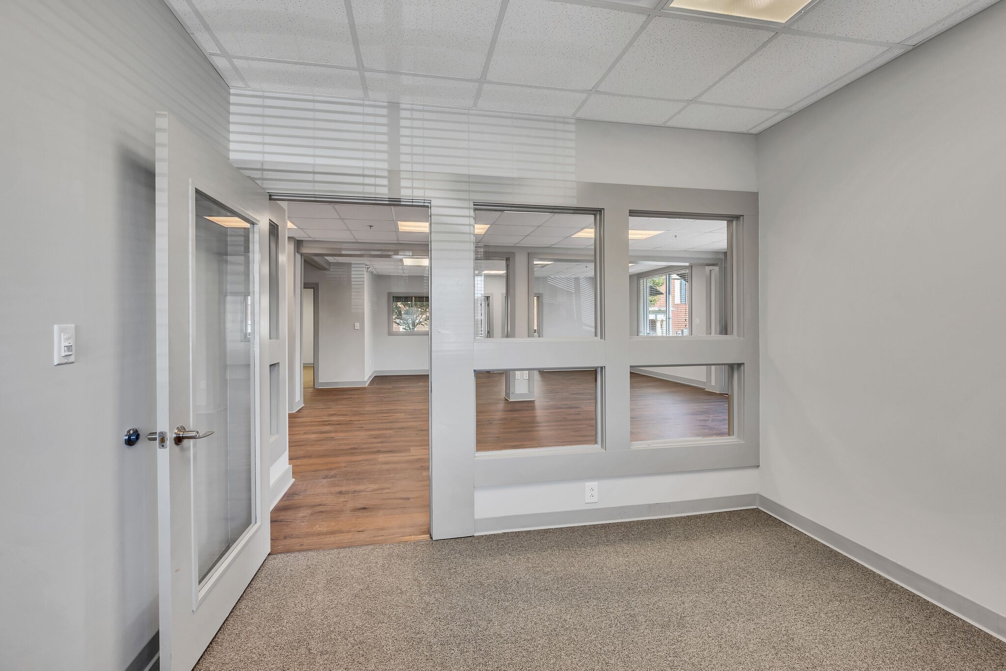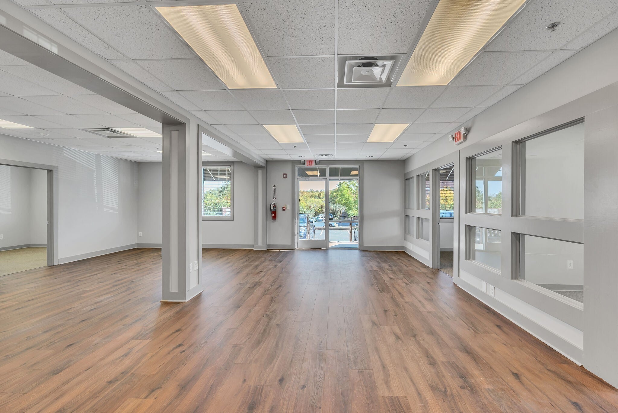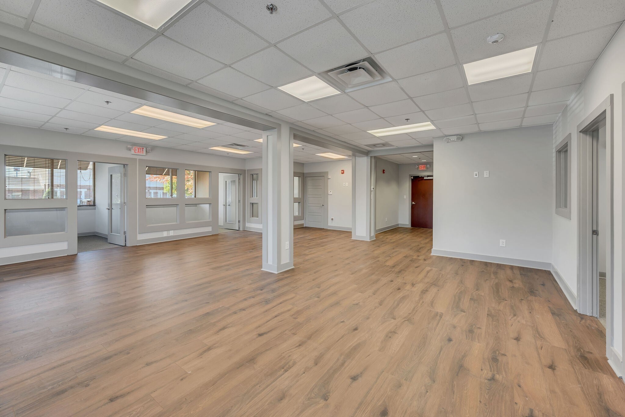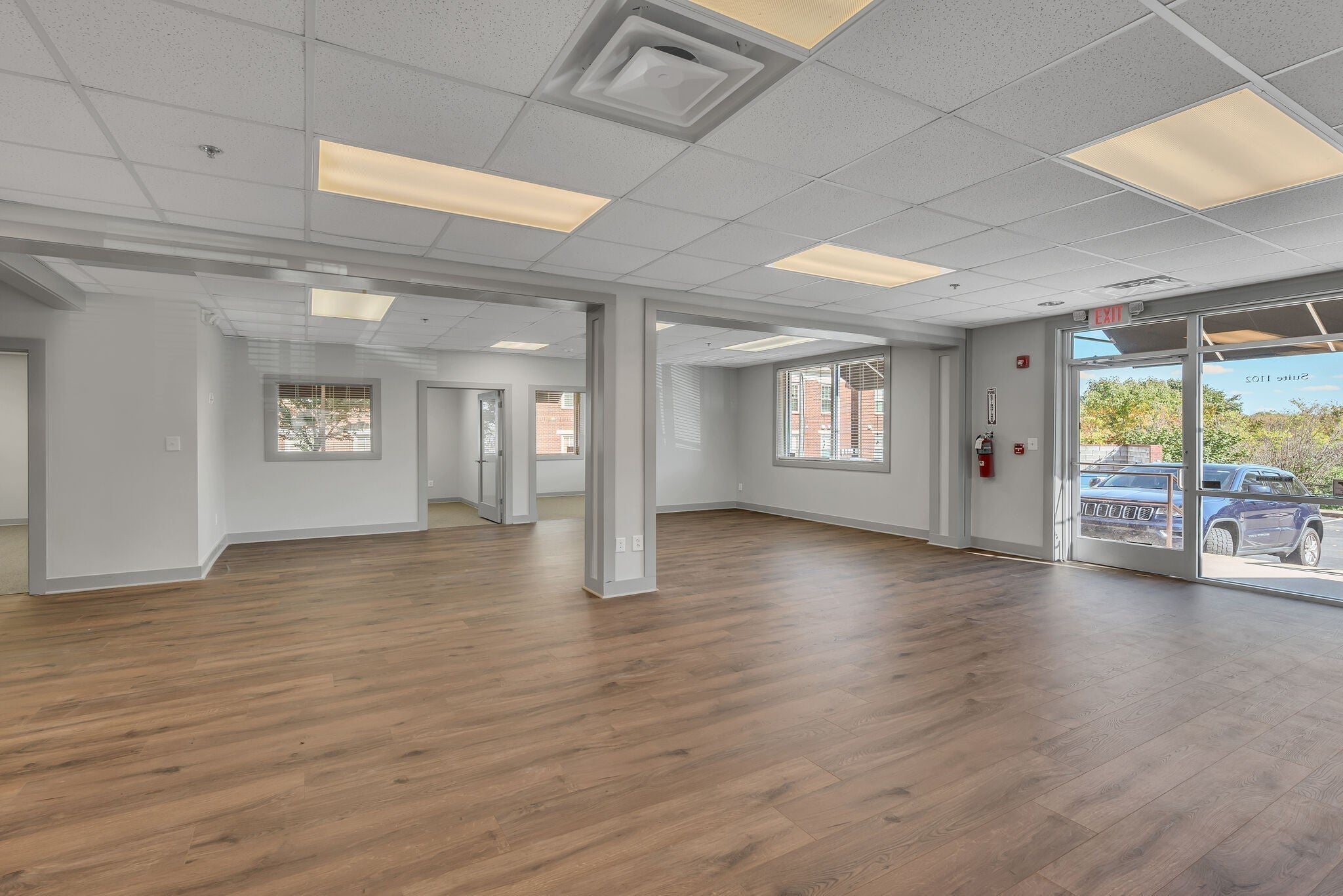 This open concept office has much to offer with a large open work space, 5 private offices, conference room, and a large storage closet. Freshly painted, like new carpet and LVP flooring. Need a smaller space? There is the potential to subdivide. Designated interior and exterior entrances. Monthly rent includes water & electricity.