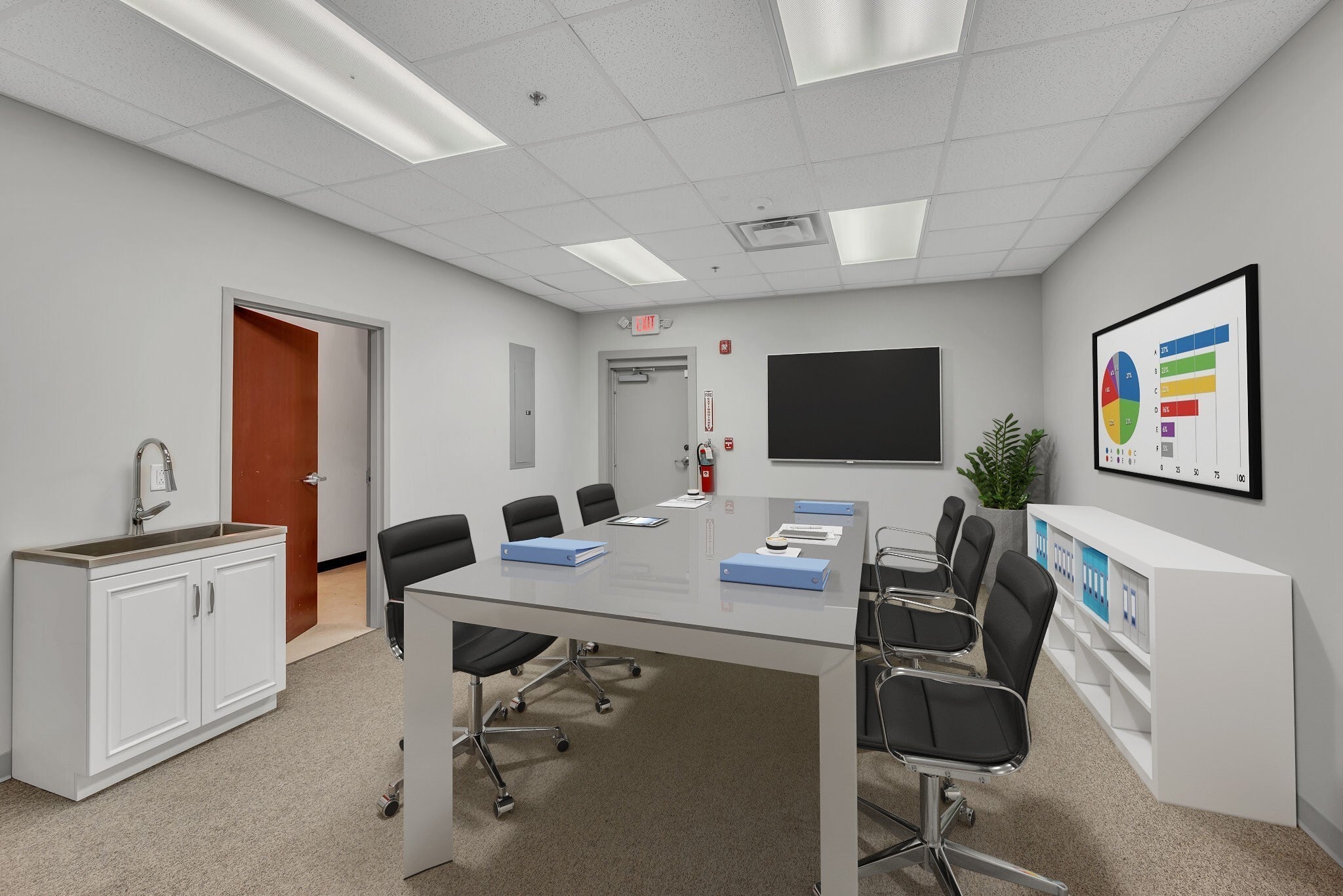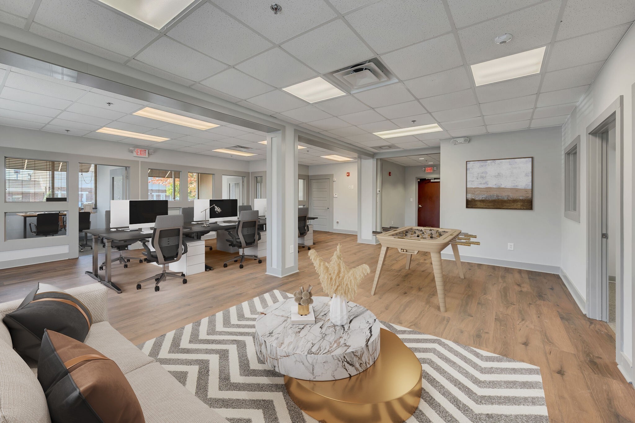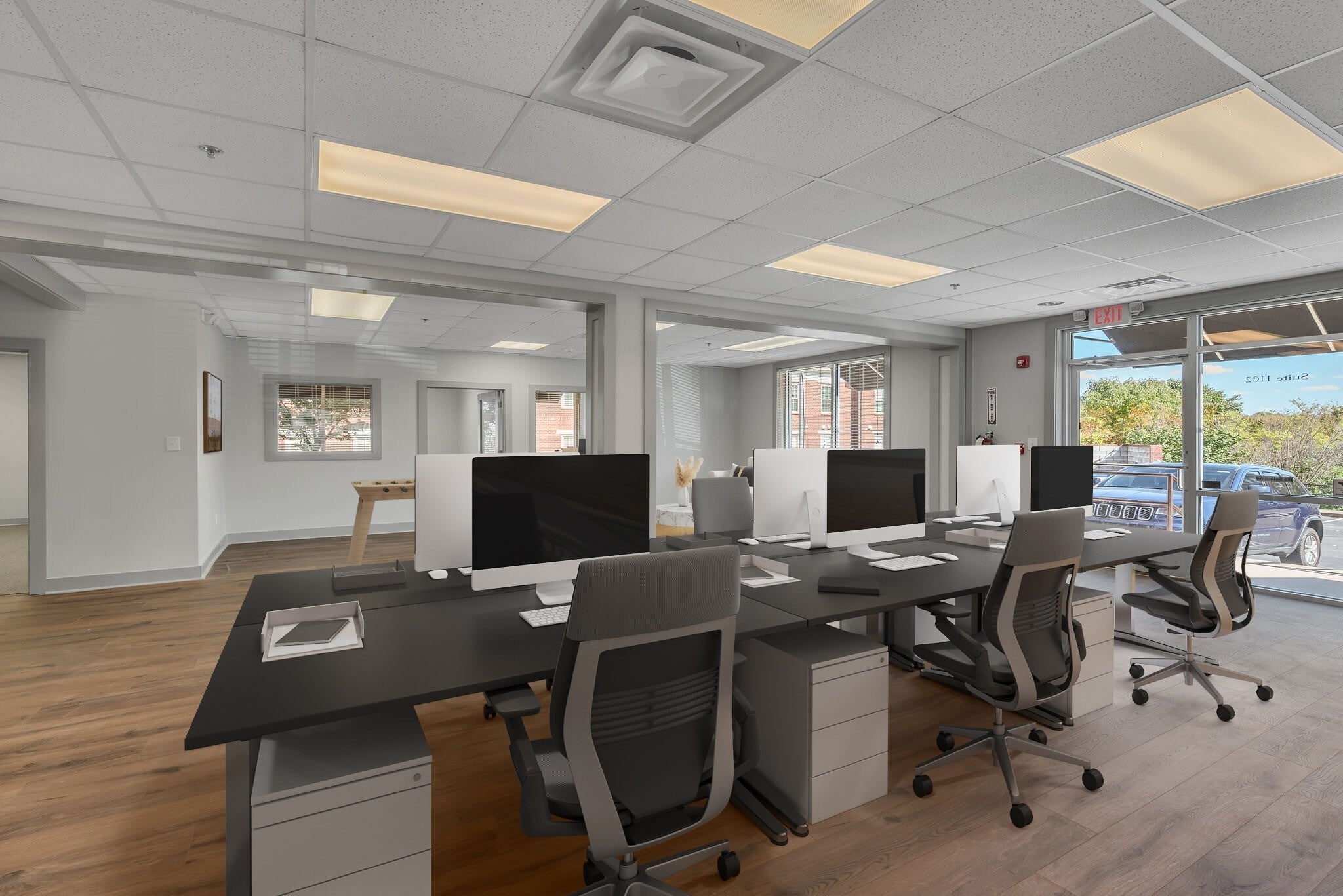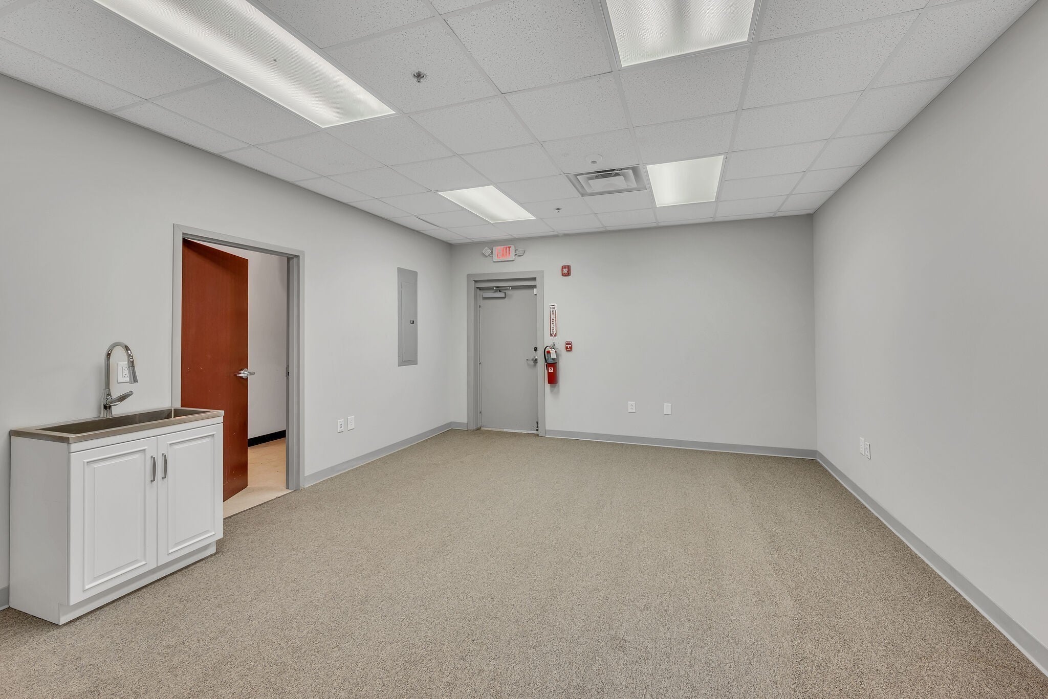 This open concept office has much to offer with a large open work space, 5 private offices, conference room, and a large storage closet. Freshly painted, like new carpet and LVP flooring. Need a smaller space? There is the potential to subdivide. Designated interior and exterior entrances. Monthly rent includes water & electricity.