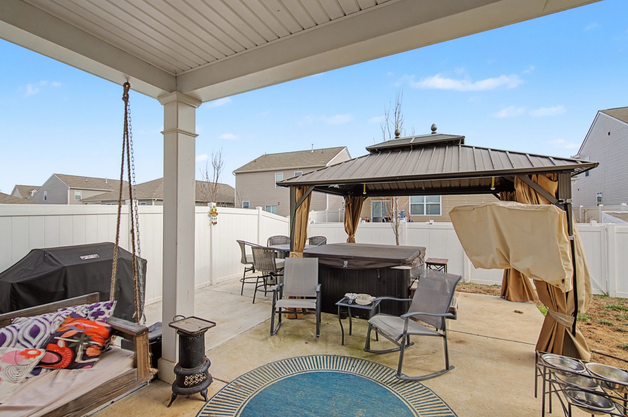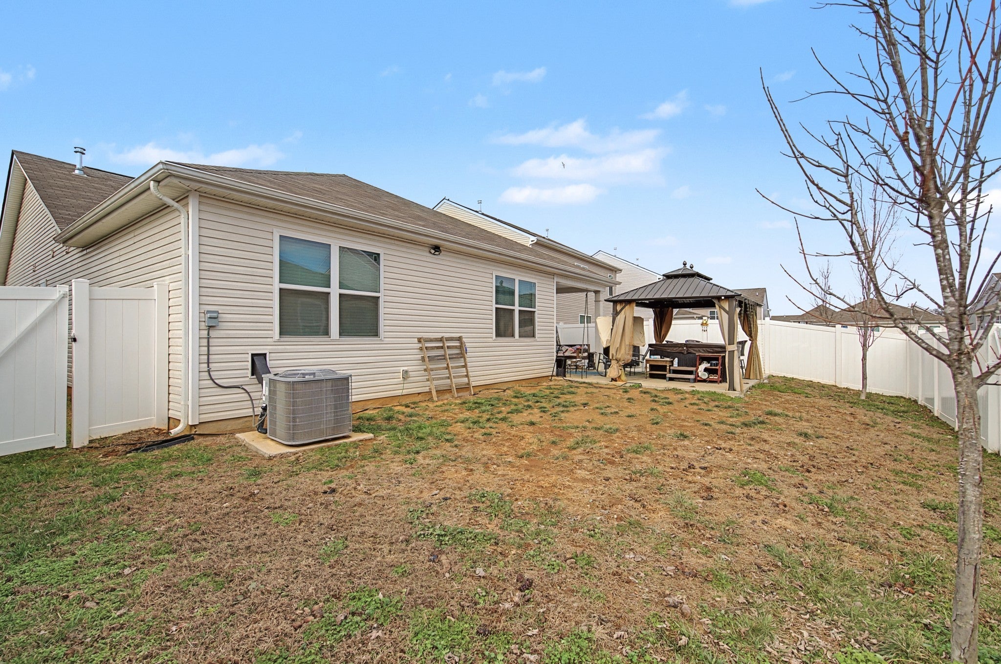 Welcome home to 5664 Hickory Woods Dr, a meticulously maintained 2022 build that combines modern luxury with effortless single-story living. Located in the desirable Heritage Landing community, this 4-bedroom, 2-bath home offers the perfect blend of style and functionality. The heart of the home is the expansive open-concept great room, anchored by a gourmet kitchen with gleaming granite surfaces, espresso cabinetry, and a full suite of stainless steel appliances. Unlike standard builder-grade listings, this home is truly turnkey and loaded with high-value upgrades, including a new $12k full privacy fence and an expansive extended back patio. The manicured landscaping and custom outdoor living setup with a covered porch and gazebo are ready for relaxation. The split-bedroom design ensures ultimate privacy for the primary suite, which features an ensuite bath and generous walk-in closet. Smart home equipped and energy-efficient. Enjoy weekends at the community pool or exploring the massive retail and dining explosion just minutes away at Century Farms/Tanger Outlets. With easy access to I-24, you can be in the city in minutes. Don't miss this rare opportunity to buy into equity in Nashville's hottest zip code!