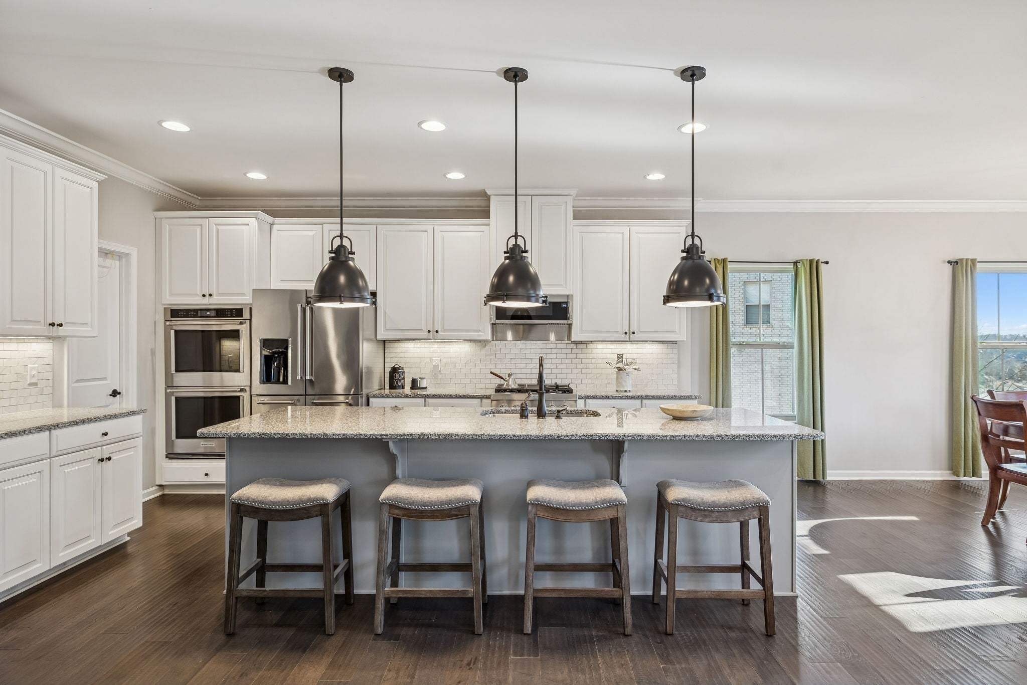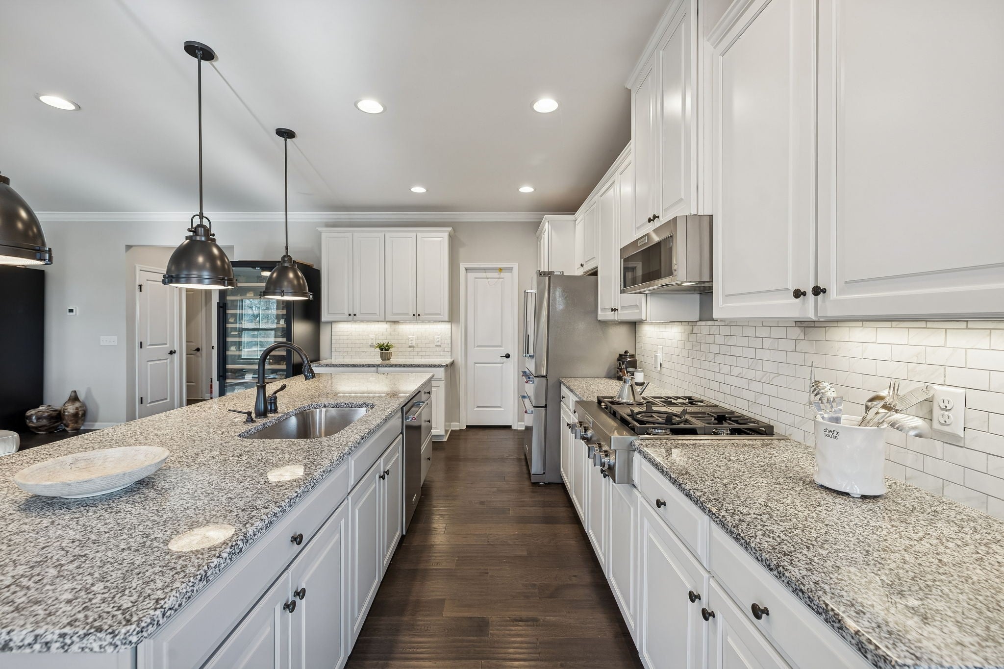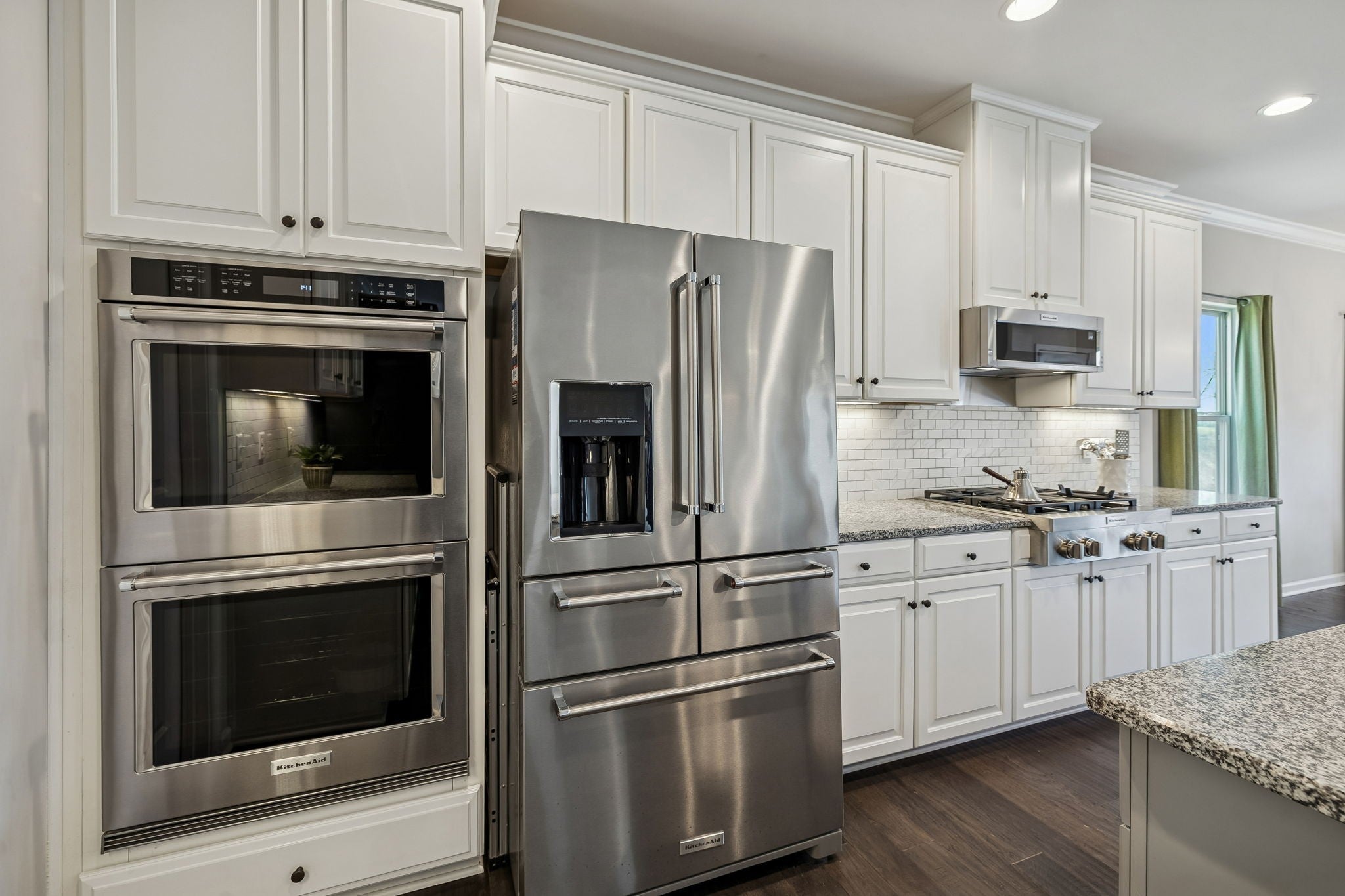 - Double Oven, Built-In Gas Range, Dishwasher, Disposal, Microwave, Refrigerator, Stainless Steel Appliance(s)
