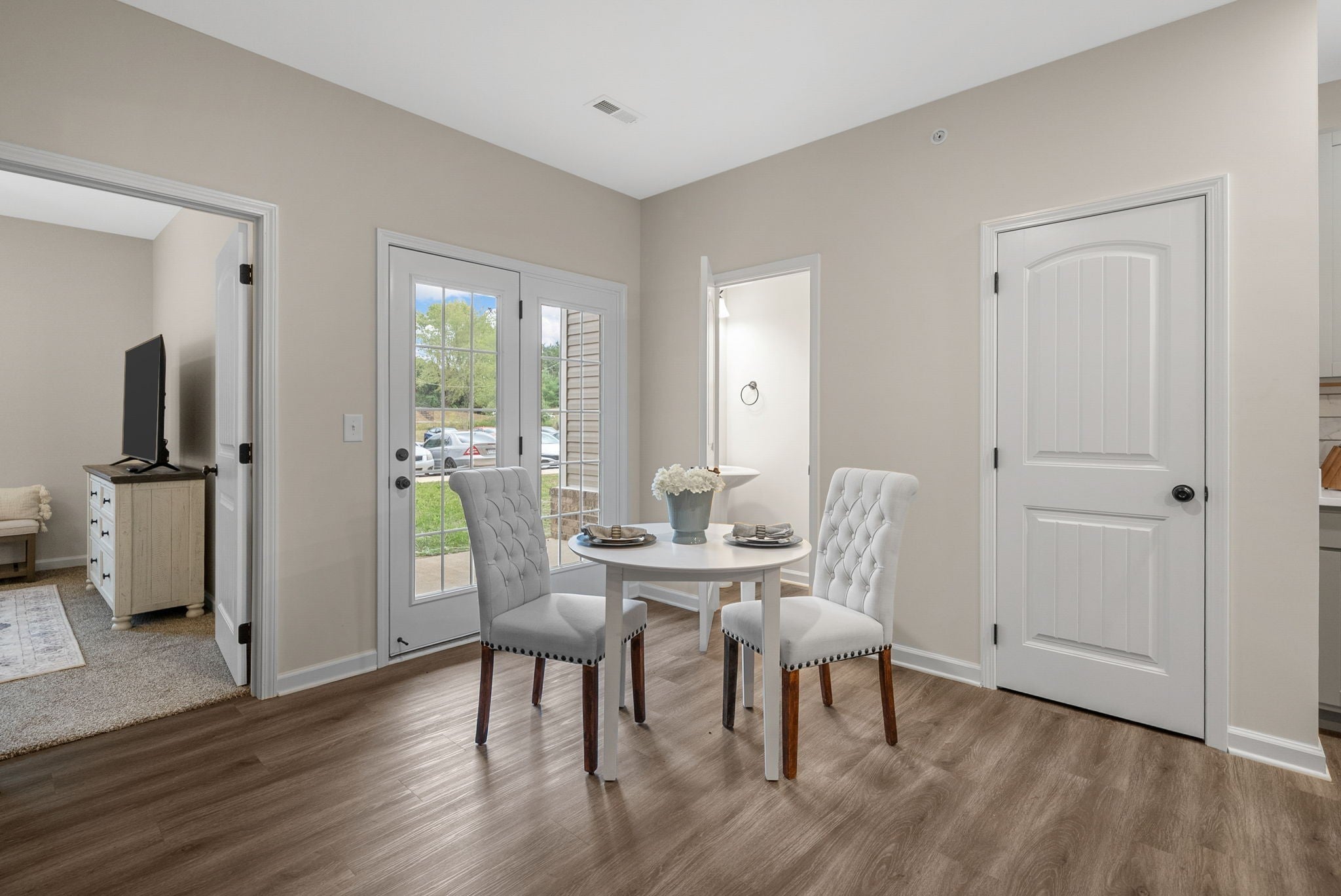 **Move-In Special: First month FREE with fulfilled 13 month lease agreement.** Proudly voted Clarksville's Best Apartment Community of 2025! This *1st Floor* beautifully designed 1 bedroom, 1.5 bathroom apartment offers 824 sq. ft. of modern luxury, built brand new in 2024. Step inside to find LVP wood flooring throughout (with carpet in the bedroom), a spacious open layout, and a gourmet kitchen featuring stainless steel appliances, granite countertops, gray cabinetry, a pantry, and a large kitchen island that overlooks the living area—perfect for entertaining. Each apartment also includes a washer and dryer, private patio, and stylish, high-end finishes throughout. Located just minutes from Fort Campbell and top shopping and dining spots, Millswood offers upscale amenities including: 24-Hour Fitness Center, Resort-Style Pool & Clubhouse, Pet Washing Station, Pet Waste Stations. We’re pet-friendly, because your furry friends are family too! (Breed restrictions and fees apply.) Come experience the perfect blend of comfort, convenience, and community. Schedule your tour today and discover why Millswood is Clarksville’s top place to call home!