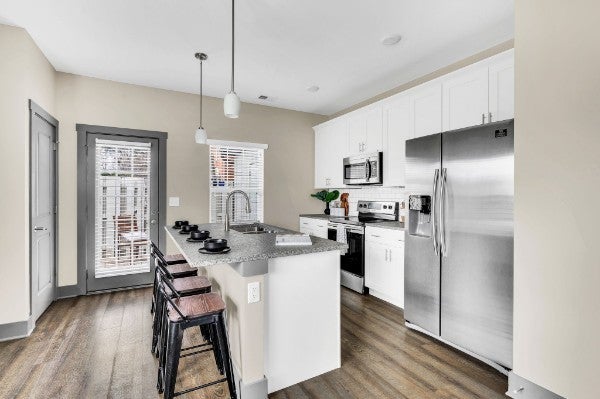 **LOCATION LOCATION LOCATION**. Excellent opportunity for open concept townhome in highly desirable Bristol Creek in the heart of Bellevue! Hard surface floors throughout downstairs, modern kitchen w/sleek stainless appliances and honed granite countertops. Designer lighting throughout. Both primary and BR 2 have en-suites.The owner's suite is well appointed with double vanity sinks, granite countertops, and shower/tub combo. Step outside to your private fenced patio, ideal for outdoor gatherings or a peaceful morning coffee. Additionally, there's a large secured storage attached to your patio that offers ample space for storing your personal items! HOA includes ext maintenance, insurance, mow/landscape, roof, & trash! Fenced patio area. Near a plethora of shopping/dining/entertainment options and only 12 minutes to Midtown. Refrigerator and washer/dryer pair remain. This could be a great forever home or investment opportunity.