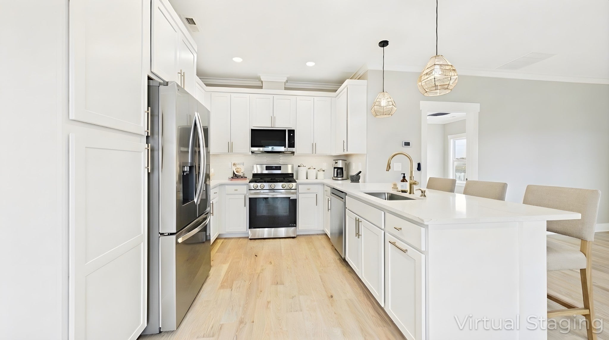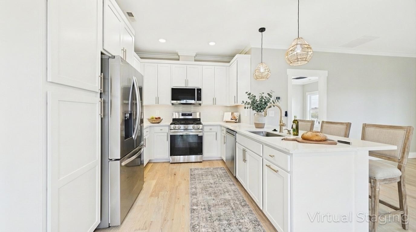 - Built-In Gas Range, Dishwasher, Microwave, Refrigerator, Stainless Steel Appliance(s)