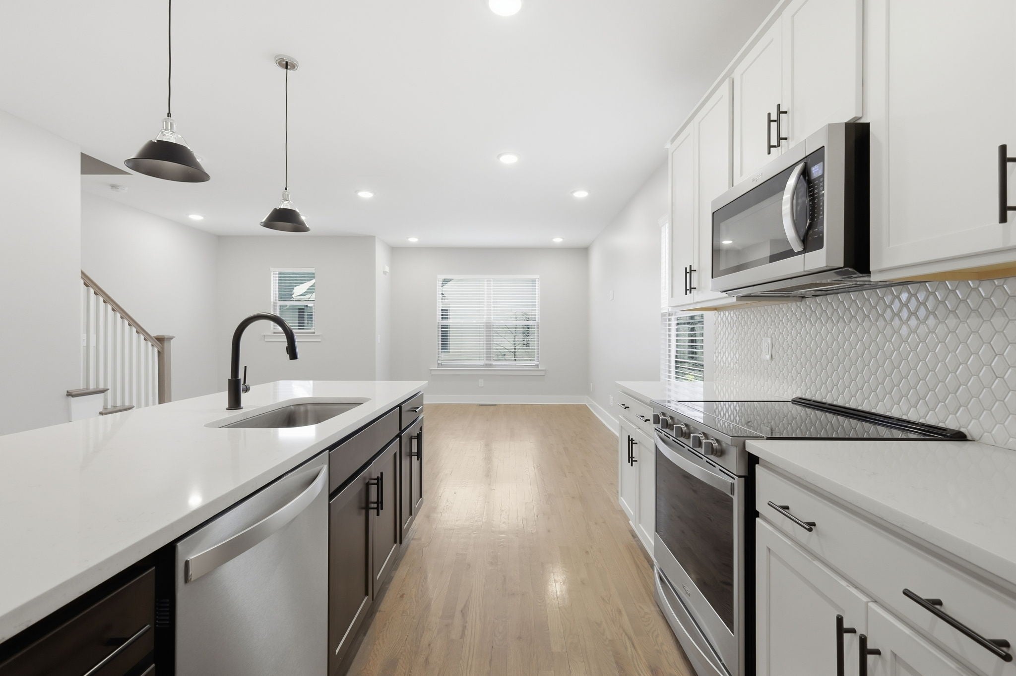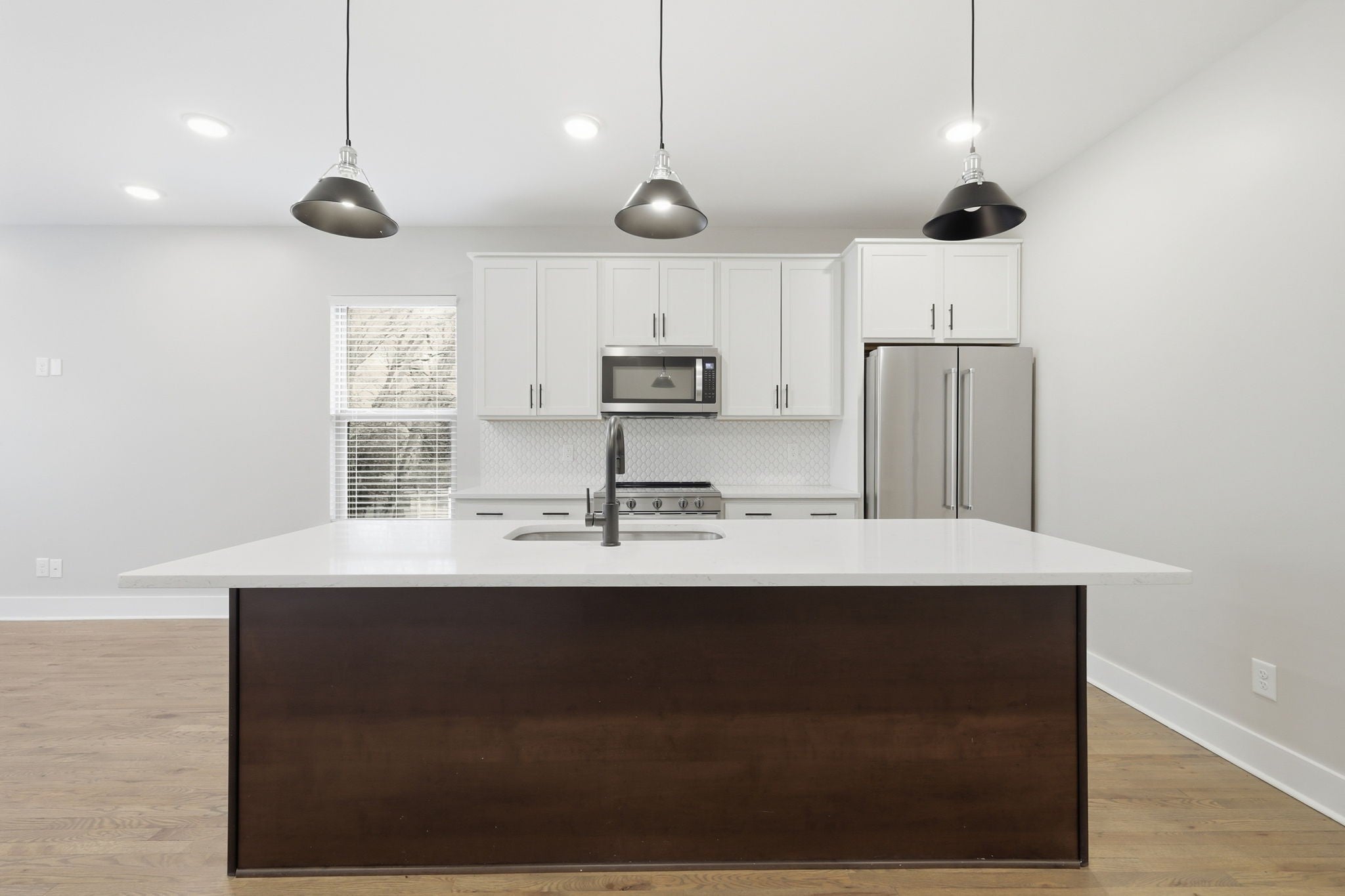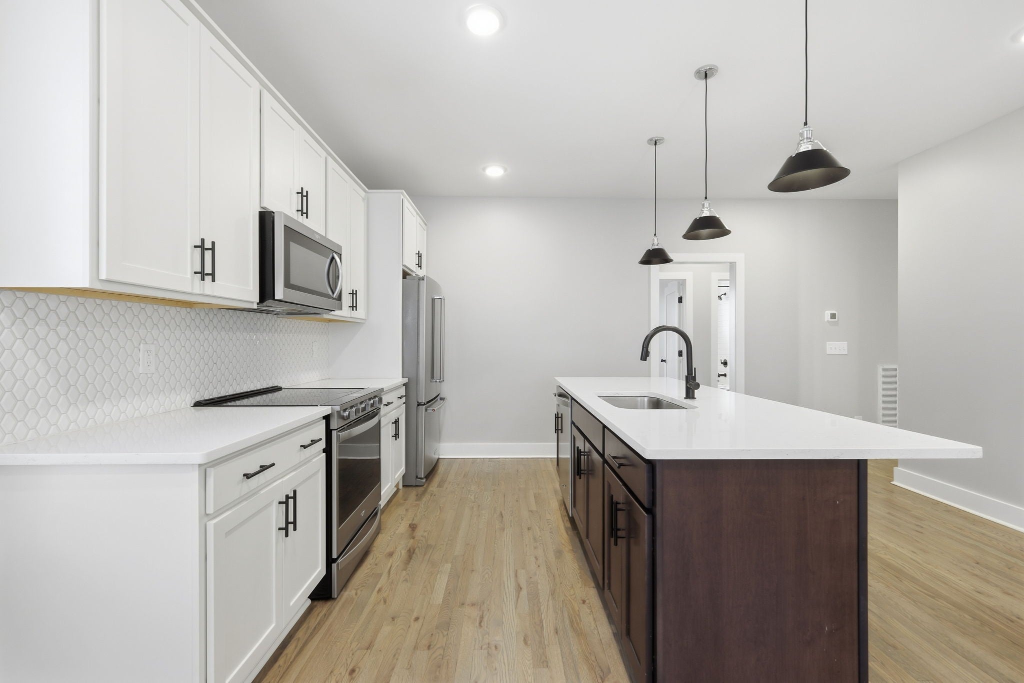 Gorgeous three-story townhouse offers 3 bedrooms and 3 bathrooms with a bright, open floor plan designed for modern living. The kitchen features an island, decorative backsplash, and accent lighting, creating a stylish and functional space. The primary suite includes a double vanity, and the attached 2-car garage adds everyday convenience. A comfortable layout and thoughtful finishes make this home a great opportunity. One or more photos have been virtually staged.