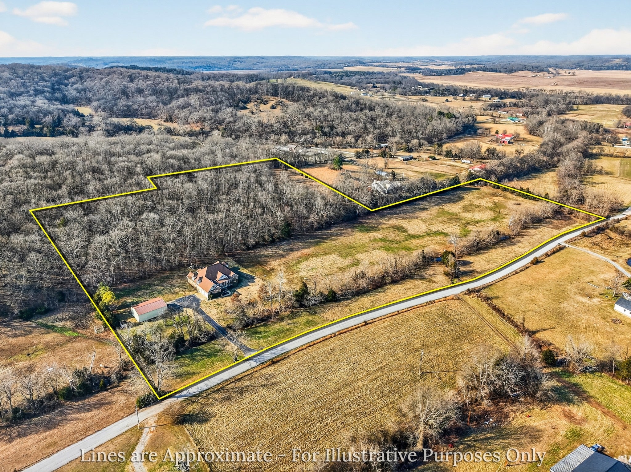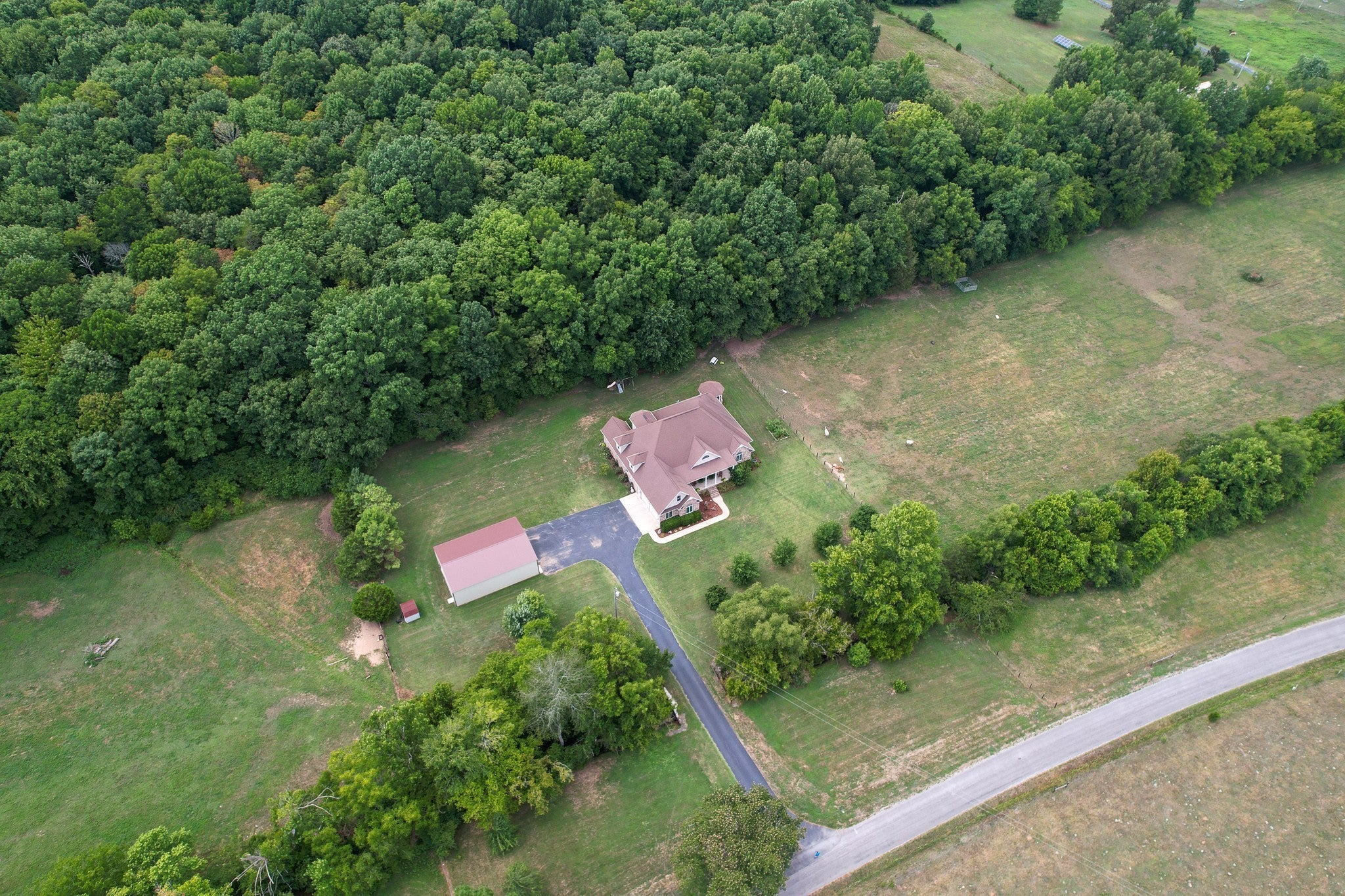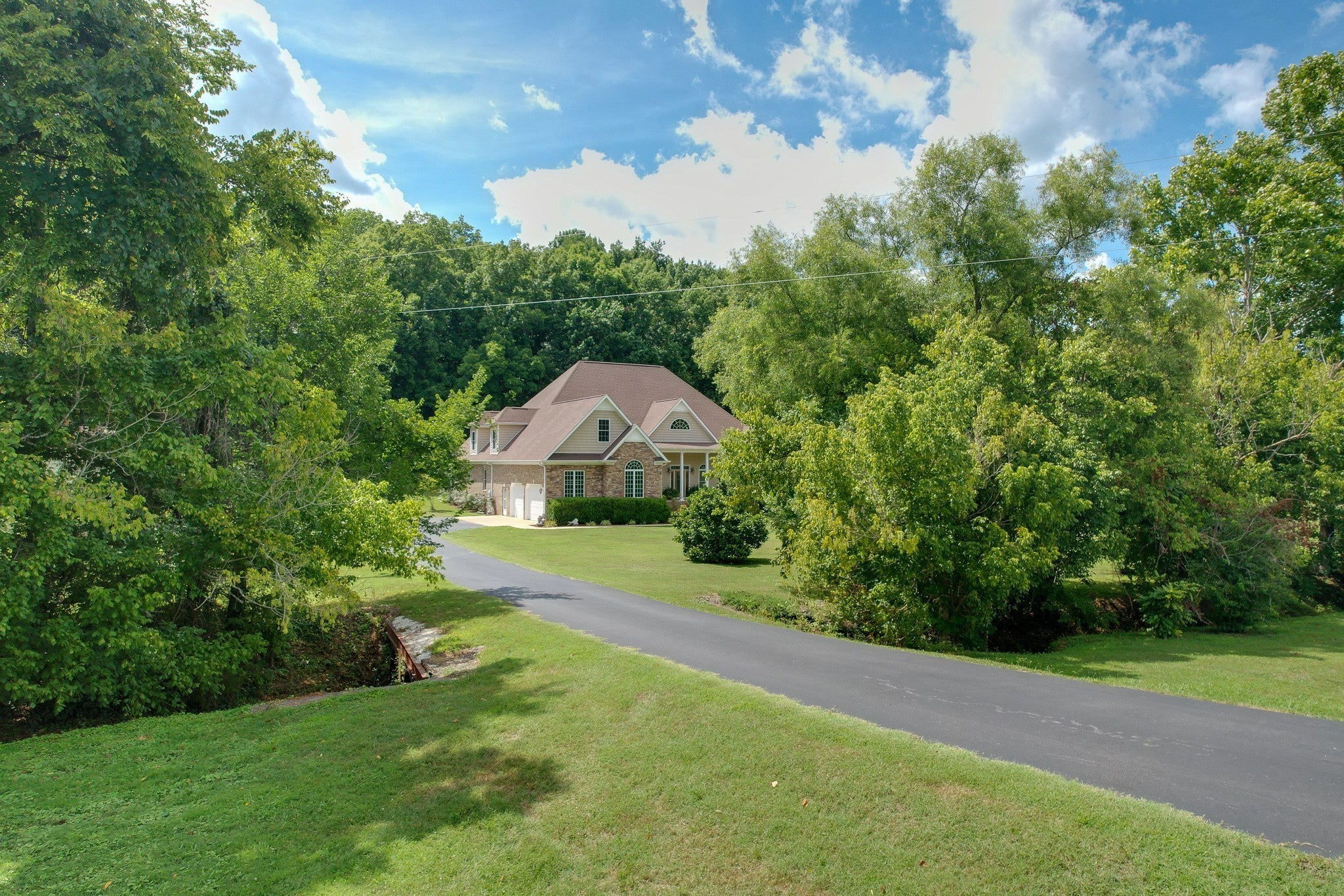 Exquisite custom home on 20 acres offering the perfect blend of privacy and convenience with year-round creek running the length of the property —tucked away on a very quiet road yet just minutes from I-65 for an easy commute to Huntsville and only 2 miles to Ardmore. The land features a beautiful mix of open pasture and mature woods, ideal for horses, cattle, recreation, or hunting. Over 1200 ft of road frontage could offer division opportunity for families looking to live close or investments. This stunning property includes 4 bedrooms, 3.5 baths, an exceptional wraparound porch with gazebo, a 34x50 shop built in 2021, and a storm shelter located in the garage for added peace of mind. The main level showcases a thoughtfully designed floor plan with a study, formal dining room, sunroom, living room with gas fireplace, and an eat-in kitchen with breakfast nook and walk-in pantry. Upstairs offers a separate living/media room connected to a bonus room that could serve as a 5th bedroom, plus a dedicated storage room already framed for future living space. Extra structural supports and insulation were added to ensure a quiet and comfortable upper level. This remarkable property combines quality craftsmanship, versatile living space, and usable acreage, making it an exceptional opportunity for those seeking privacy, functionality, and rural luxury. 20 +/- acres will be surveyed out of larger parcel before closing, tax map rendering is approximate.