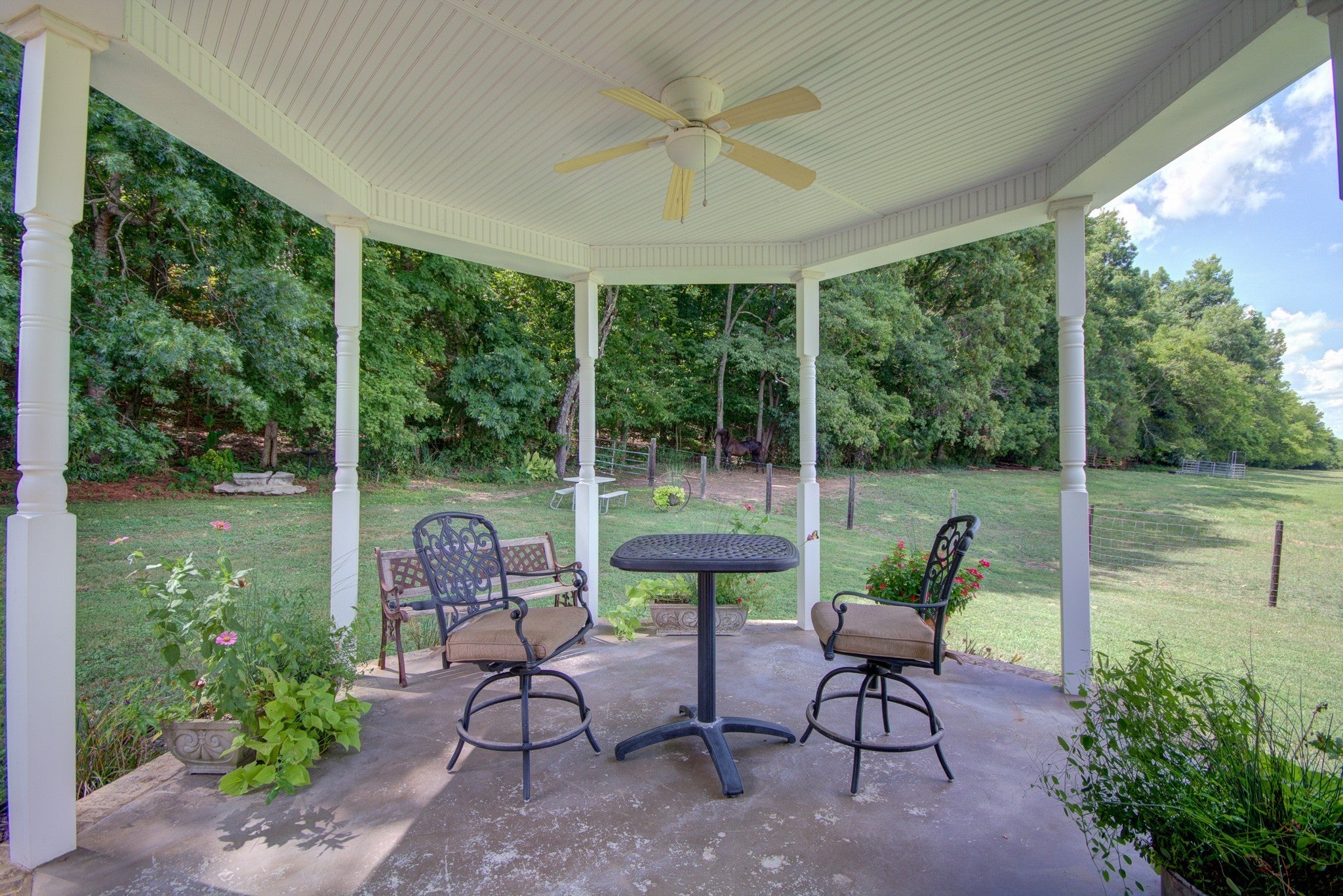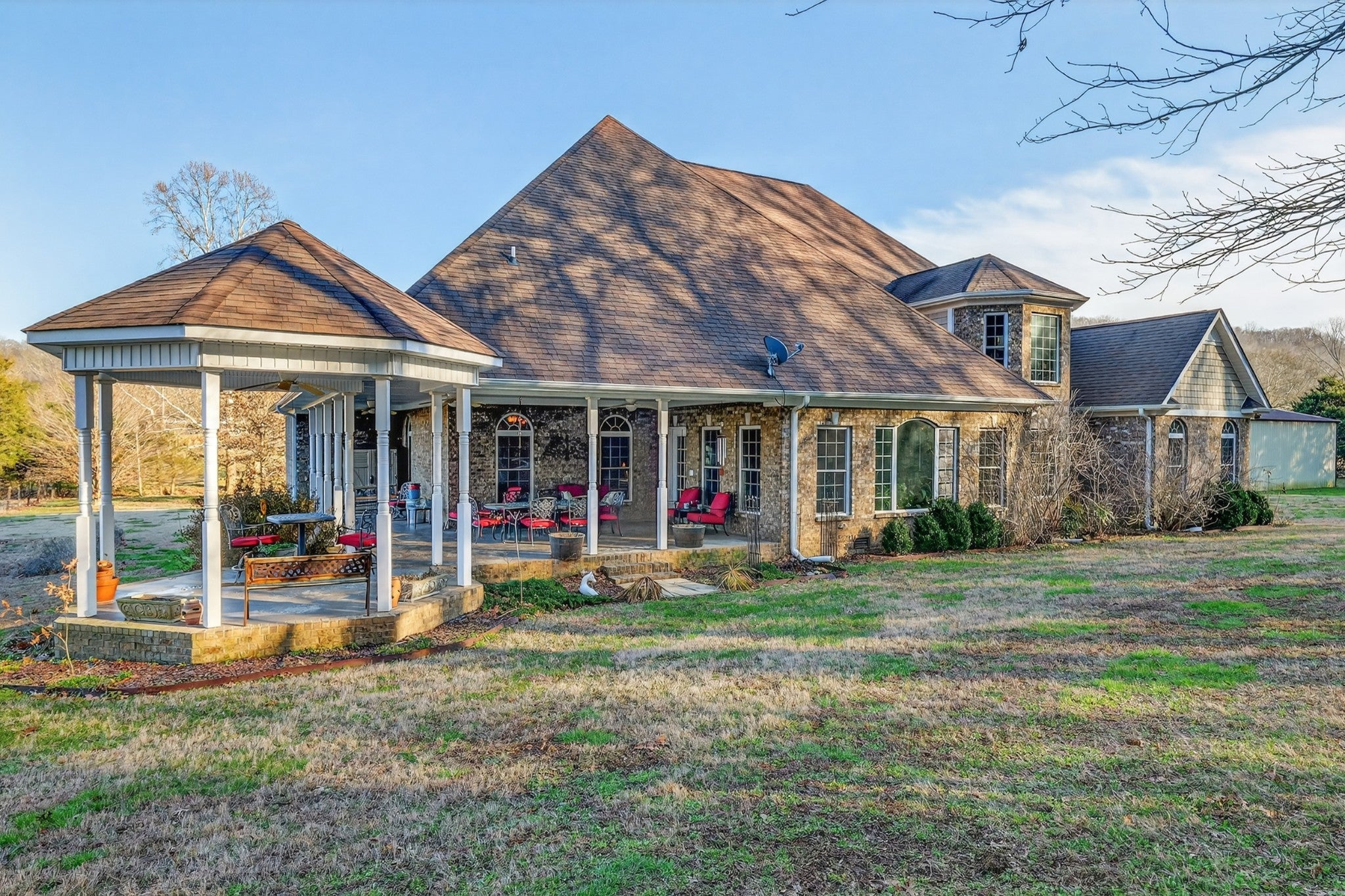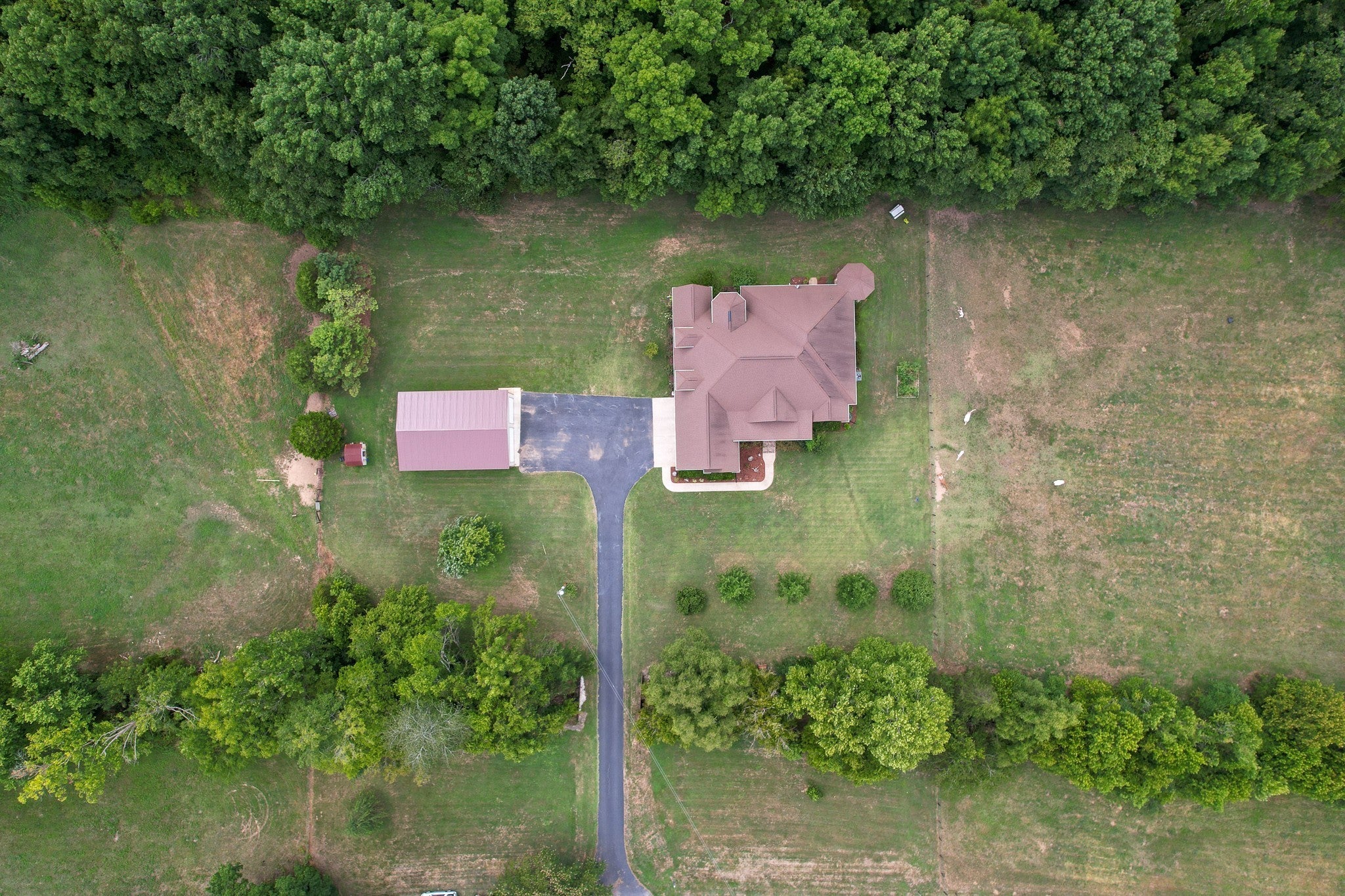 Exquisite custom home on 20 acres offering the perfect blend of privacy and convenience with year-round creek running the length of the property —tucked away on a very quiet road yet just minutes from I-65 for an easy commute to Huntsville and only 2 miles to Ardmore. The land features a beautiful mix of open pasture and mature woods, ideal for horses, cattle, recreation, or hunting. Over 1200 ft of road frontage could offer division opportunity for families looking to live close or investments. This stunning property includes 4 bedrooms, 3.5 baths, an exceptional wraparound porch with gazebo, a 34x50 shop built in 2021, and a storm shelter located in the garage for added peace of mind. The main level showcases a thoughtfully designed floor plan with a study, formal dining room, sunroom, living room with gas fireplace, and an eat-in kitchen with breakfast nook and walk-in pantry. Upstairs offers a separate living/media room connected to a bonus room that could serve as a 5th bedroom, plus a dedicated storage room already framed for future living space. Extra structural supports and insulation were added to ensure a quiet and comfortable upper level. This remarkable property combines quality craftsmanship, versatile living space, and usable acreage, making it an exceptional opportunity for those seeking privacy, functionality, and rural luxury. 20 +/- acres will be surveyed out of larger parcel before closing, tax map rendering is approximate.