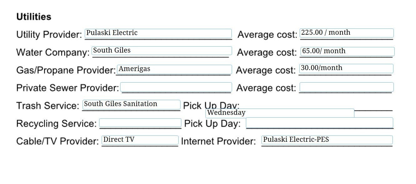 - Utilities: