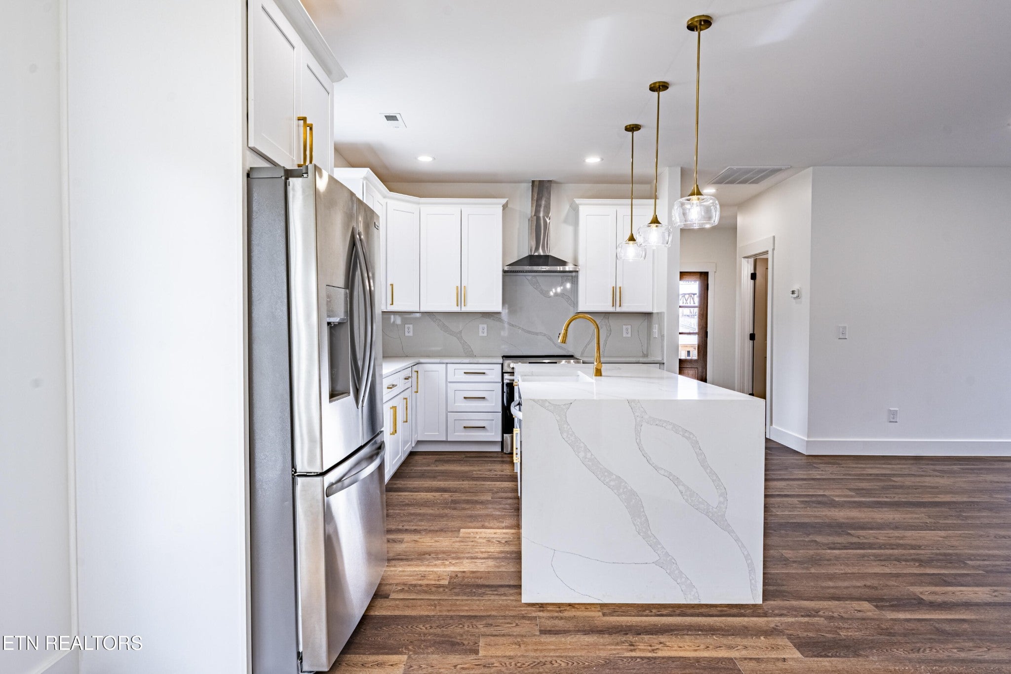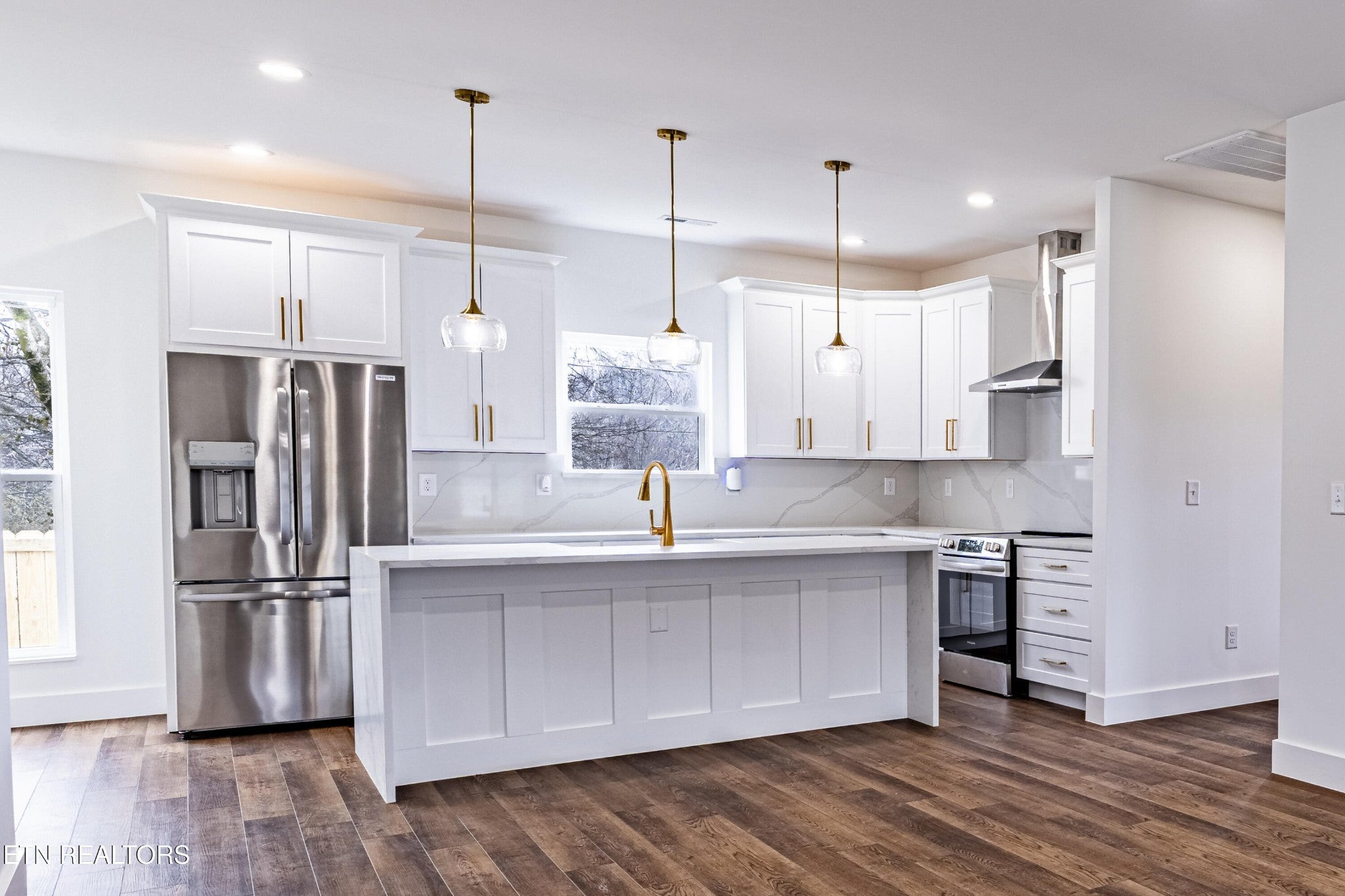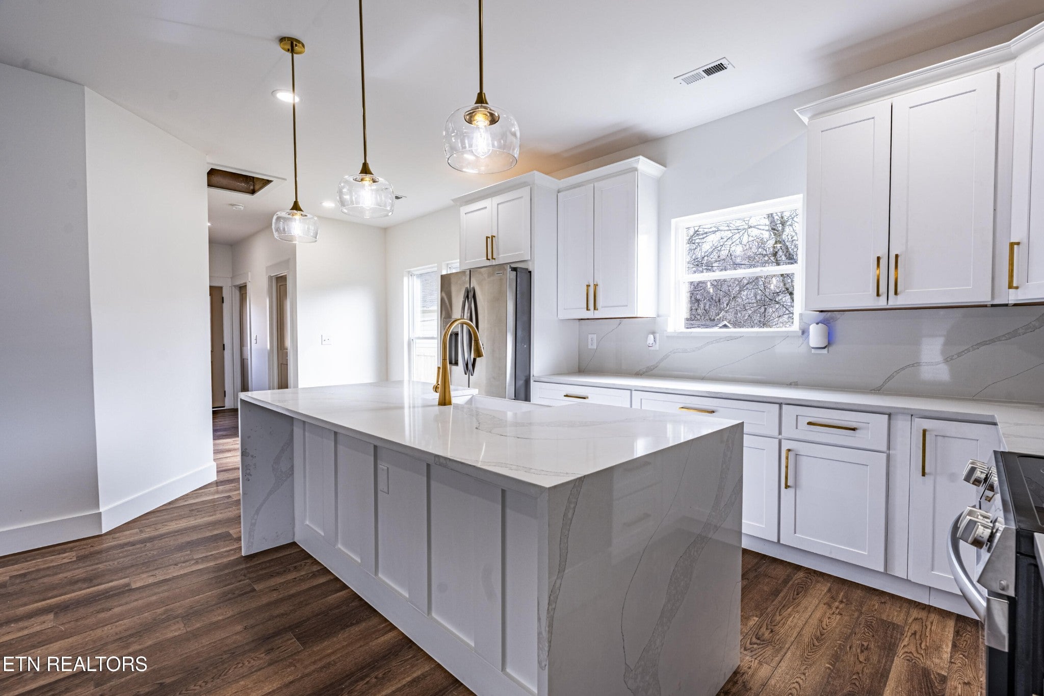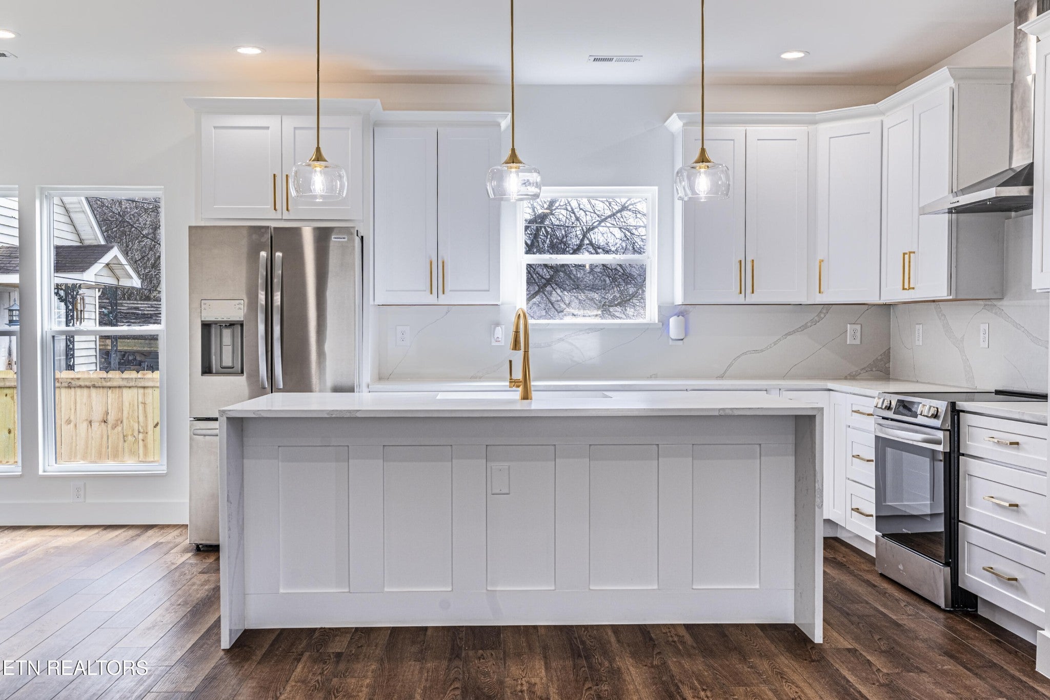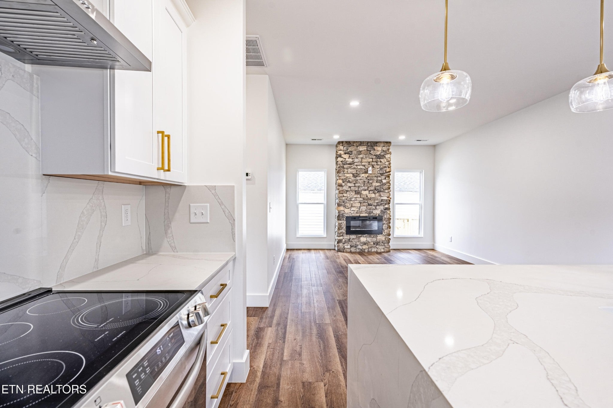 Modern luxury meets South Knox energy. Be the first to own this brand-new, craftsman-inspired home perfectly positioned for downtown lovers, UT fans, and anyone who wants to live where Knoxville actually happens. This thoughtfully designed 3-bedroom, 2-bath new construction delivers a bright, open-concept layout made for everyday living and easy entertaining. The designer kitchen is a showstopper with a 7' quartz waterfall island, matching backsplash, real wood soft-close cabinetry, stainless steel appliances, and sleek gold finishes that feel straight out of a magazine. Natural light pours in through oversized 6' windows, highlighting 9' ceilings throughout and a dramatic 10' ceiling in the primary suite. The spa-style primary bath features custom tile work, a full marble herringbone accent wall, brushed gold hardware, and his-and-hers closets—because sharing is overrated. Artistic accent walls and wide-plank WPC LVP flooring add a modern edge throughout the home. The living area centers around a striking natural stone fireplace with a flickering flame effect, creating a cozy yet contemporary vibe. Outside, enjoy a covered front porch and a fenced backyard with a fire pit—perfect for hosting friends after a game day or a night downtown. Energy-efficient Solaris cool roof shingles mean comfort and savings year-round. Location is everything, and this one delivers: Minutes to Downtown Knoxville, UT, and Neyland Stadium. Close to Kern's Food Hall, Dickerson Quarry, and the upcoming Pedestrian Bridge. Enjoy the South Knox waterfront, greenways, outdoor recreation, and nightlife. Brand new, move-in ready, and packed with custom details—this is a rare opportunity to own new construction in one of Knoxville's most exciting and fast-growing neighborhoods.