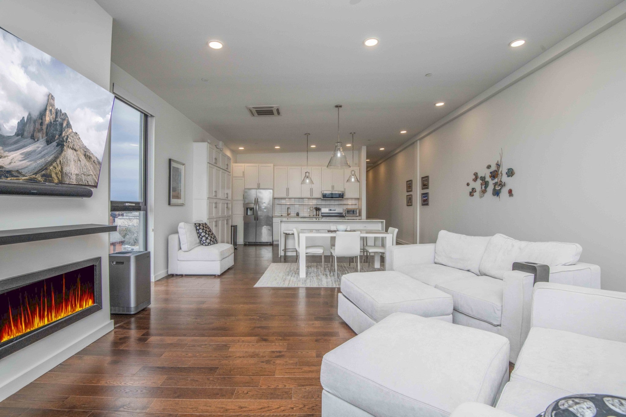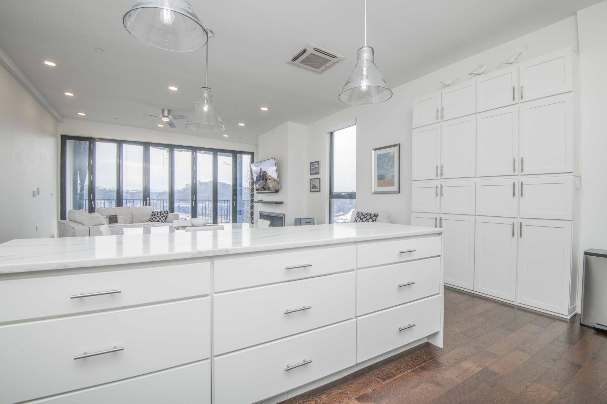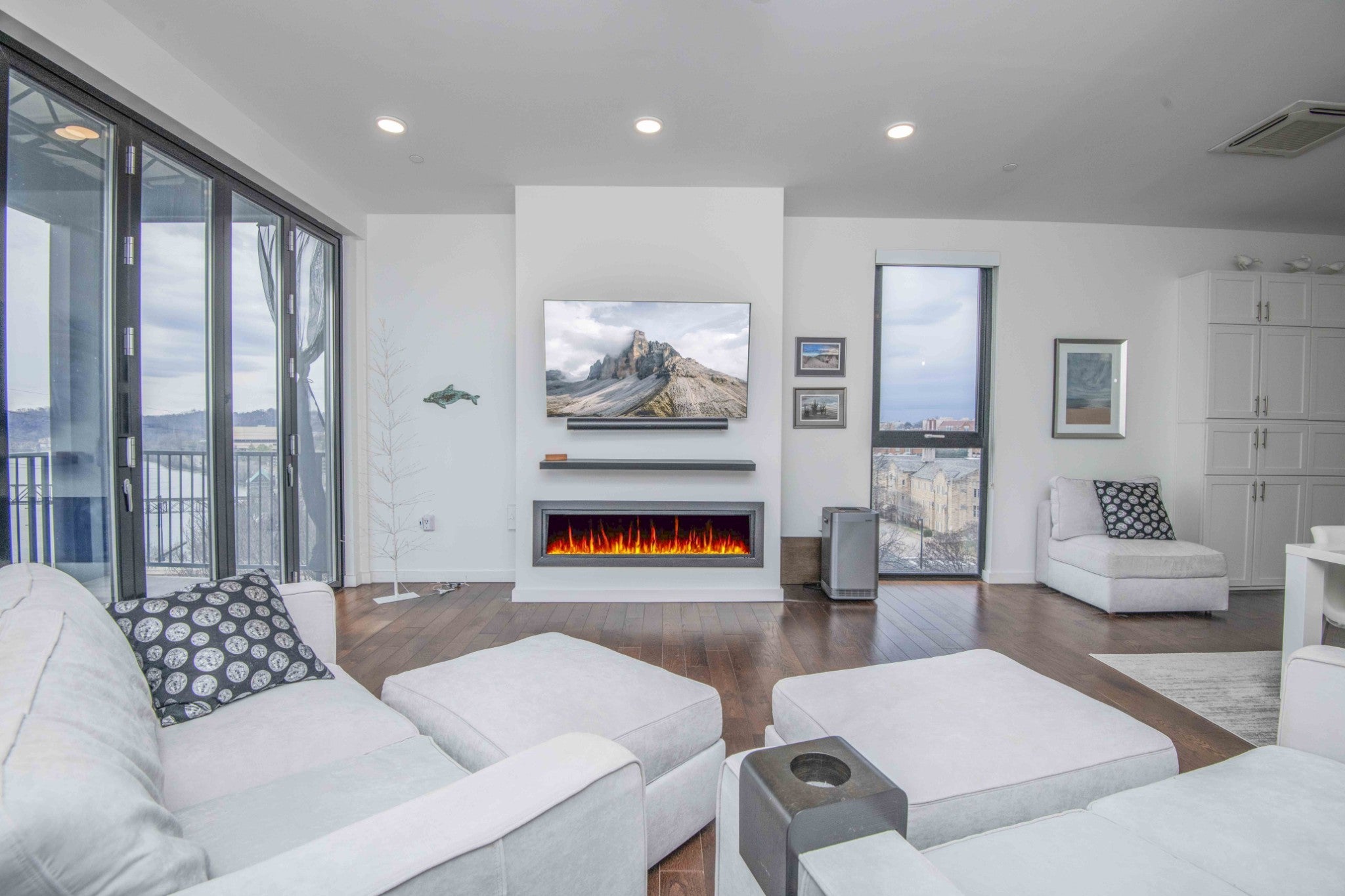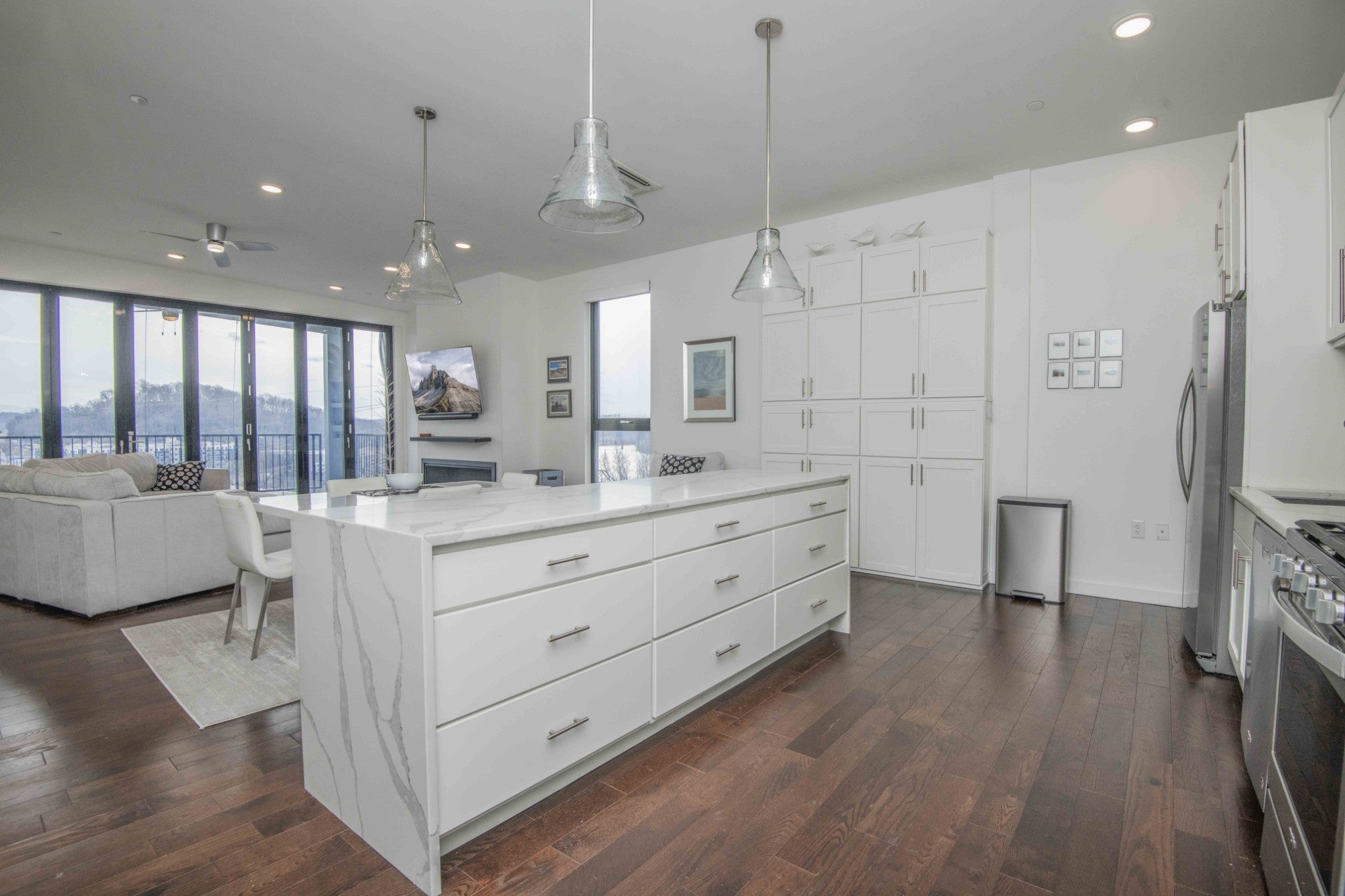 Looking for a top-floor, modern condo with million-dollar views? The unit is situated overlooking the Tennessee River and walking distance to the Food City Arena, Theater District, University of Tennessee, Volunteer Landing, downtown library, Market Square and so much more. Meticulously maintained and looks new, as this was a second home for the owners. Enjoy the on-site parking and elevator that lands on your private front porch that overlooks the downtown areas, plus mountain views! It has upgrades such as the accordion retractable glass wall doors and additional cabinetry. Open the balcony up to increase living and entertaining space overlooking Henley Street bridge and the Tennessee River, as well as the southern skyline. High ceilings throughout and large windows! The spacious open kitchen with sleek lines includes a large island, gas range, and wall counter fridge. No carpet can be found here, with hardwood floors and tile. Enjoy the cool nights with the beautiful modern gas fireplace while still enjoying the mountain views. With a primary bedroom with a private ensuite spa-like tub bath, you will truly be amazed at the well-thought-out touches and space. Two additional bedrooms and another full bath, plus a laundry area completes the unit. Approximate square footage is 2100, which includes approximately 1700 sq feet of living space, and two separate covered porches combined are approximately 400 sq feet. Space for rocking on the front porch overlooking Hill Street has a storage area, too! The elevator is a private access to your unit, with only one other unit being able to access the 6th floor! With covered parking, electronic entry, electronic access to the elevator, and electronic 6th floor private access, you will feel very secure. Make your appointment today to see this lovely home! Drone photography has been utilized. Buyer or buyer's representative to verify all information contained herein.