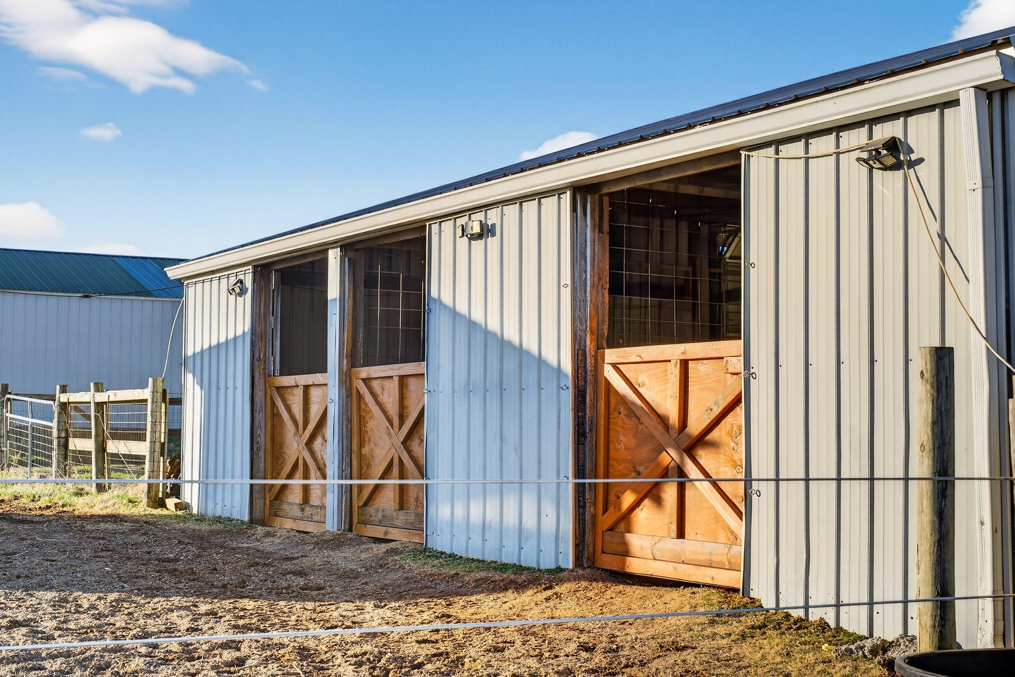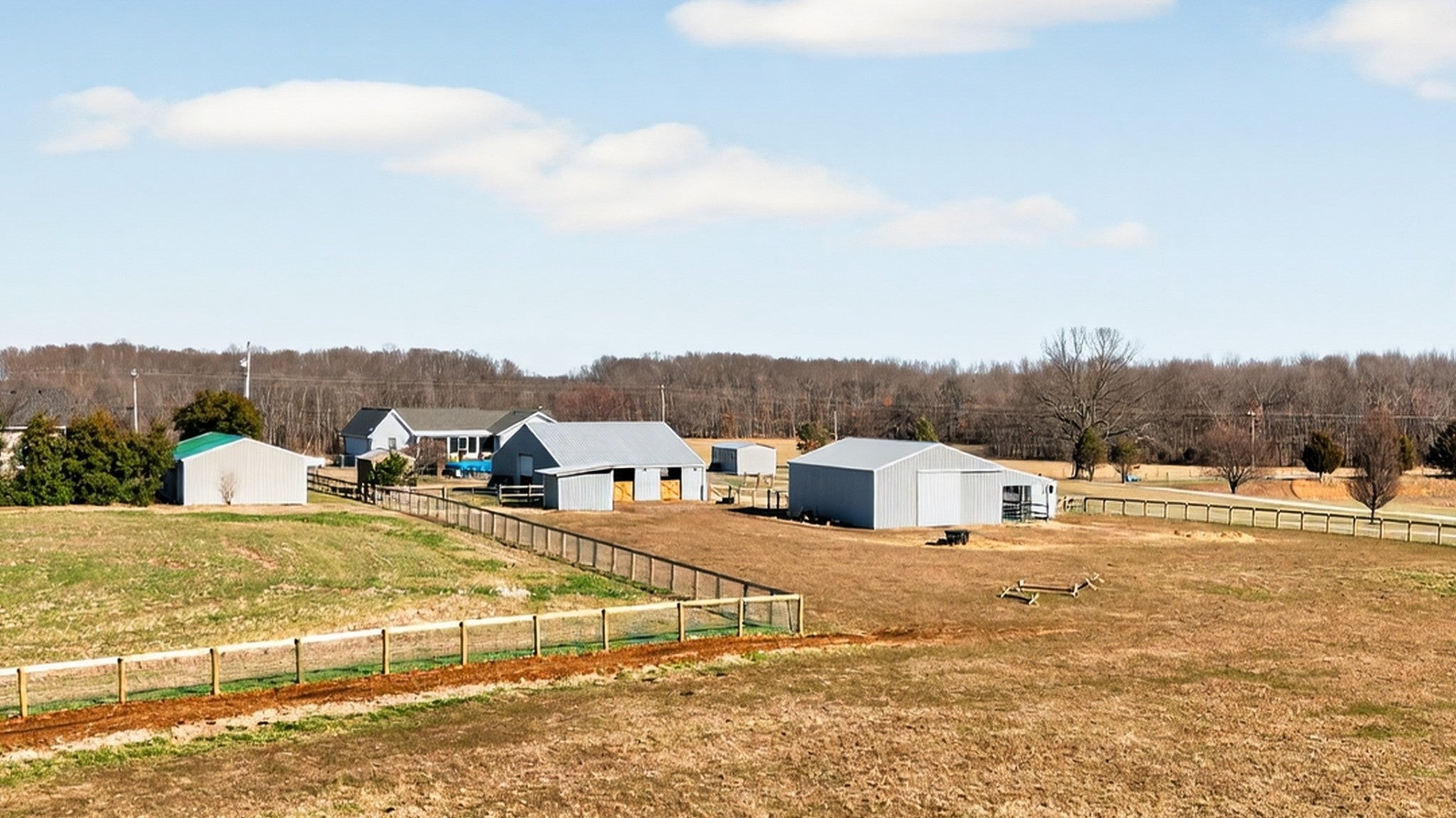 Beautiful 5-acre property set up and ready for animals! Features a spacious 36x54 ft barn with 12’ overhangs, providing excellent shelter and versatility. A dedicated 9x11 feed room adds convenience, along with a 12x12 run-in shade complete with gate for easy access. The 30x40 hay barn offers ample storage for equipment and feed. Open land with room to grow—perfect for hobby farming, livestock, or anyone seeking peaceful country living.