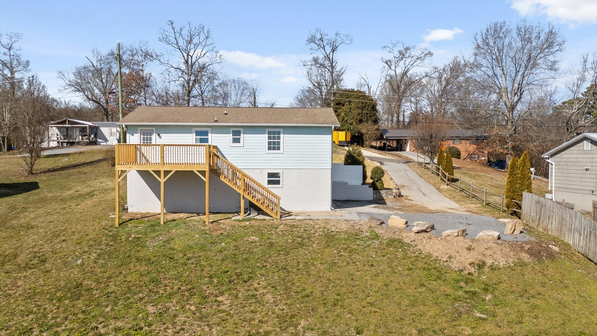 Gorgeous, fully remodeled home packed with thoughtful upgrades and modern finishes! This 3-bedroom, 2-bath residence offers 1,498 square feet of beautifully updated living space and sits on a generous lot with a large backyard perfect for outdoor living. Recent renovations include new siding, new flooring throughout, a completely updated kitchen and bathrooms, hard-surface countertops, and striking custom stonework that adds character and curb appeal. The spacious kitchen flows effortlessly into the main living areas, while the tiled shower and upgraded baths create a spa-like feel. A large laundry room adds everyday convenience, and the newly built back deck extends your living space outdoors—offering scenic views of Chilhowee and Big Frog and the perfect spot to relax or entertain. Thoughtfully redesigned from top to bottom, this move-in-ready home blends modern style, comfort, and beautiful mountain views, and is ready for its next owners to enjoy. (Information is deemed reliable but not guaranteed. Buyer should verify any information of concern, including but not limited to schools and square footage)