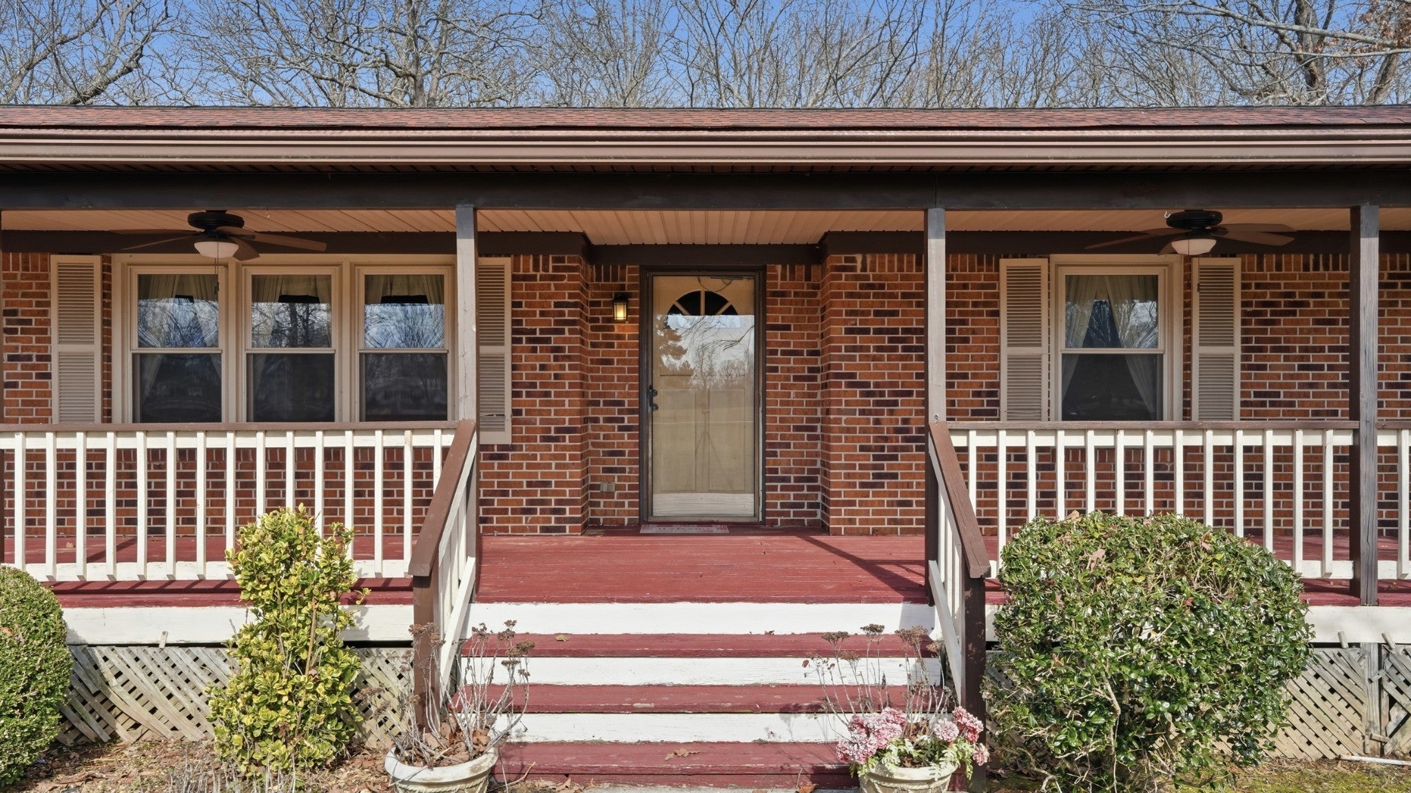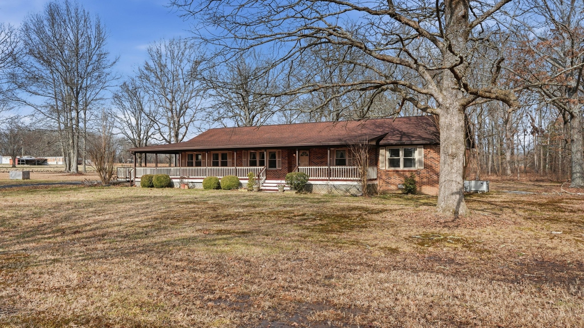 Brick home with front and side wrap around covered deck on 5 acres, 3 stall 10x30 barn/storage building, back fence, small pond, detached garage that has been insulated and wired for HVAC unit to be placed. Large rooms including large living room, dining and master. Natural Gas Log Fireplace, Stove and water heater. Lots of built ins in 2 1/2 car garage and shelving for storage plus storage room on back of home beside garage. Gutter guards in place. Zoned bedrooms for privacy. Large master suite with large closets and cedar lined walk-in closet. ALL THIS AND NO CITY TAXES!!!! Country feel but close to Tullahoma for shopping and entertainment. Bookcases on sides of fireplace do not remain.