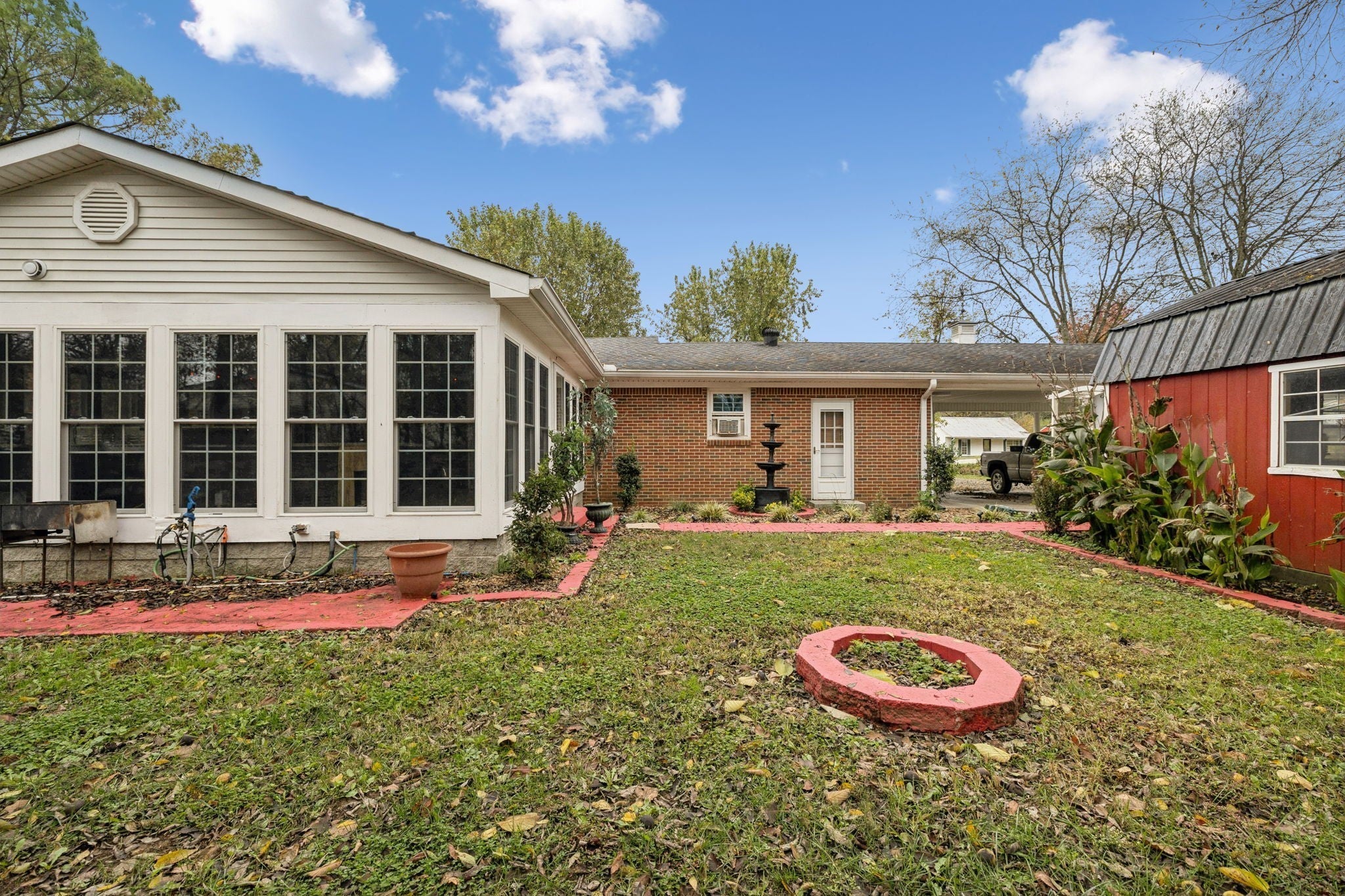 Spacious one-level home with easy one-step entry, located in the quaint town of Alexandria and approximately 45 minutes to Nashville Airport! This 3-bedroom, 2-bath home offers a welcoming layout with an office, spacious utility, kitchen featuring an island and stainless appliances, and a formal dining area open to the living room with a cozy fireplace. Enjoy the bonus room with built ins and a brick fireplace along with a large Florida room with an outdoor kitchen boasting a built-in gas grill, griddle, ice maker, prep sink, refrigerator, and warming drawers—surrounded by walls of windows for abundant natural light and peaceful views-Perfect for entertaining or relaxing year-round! The primary bath features a walk-in shower, while the guest bath includes a walk-in tub with therapeutic jets. A triple carport, covered front porch, and mature shade trees create a serene setting, and the red storage building remains for added convenience.