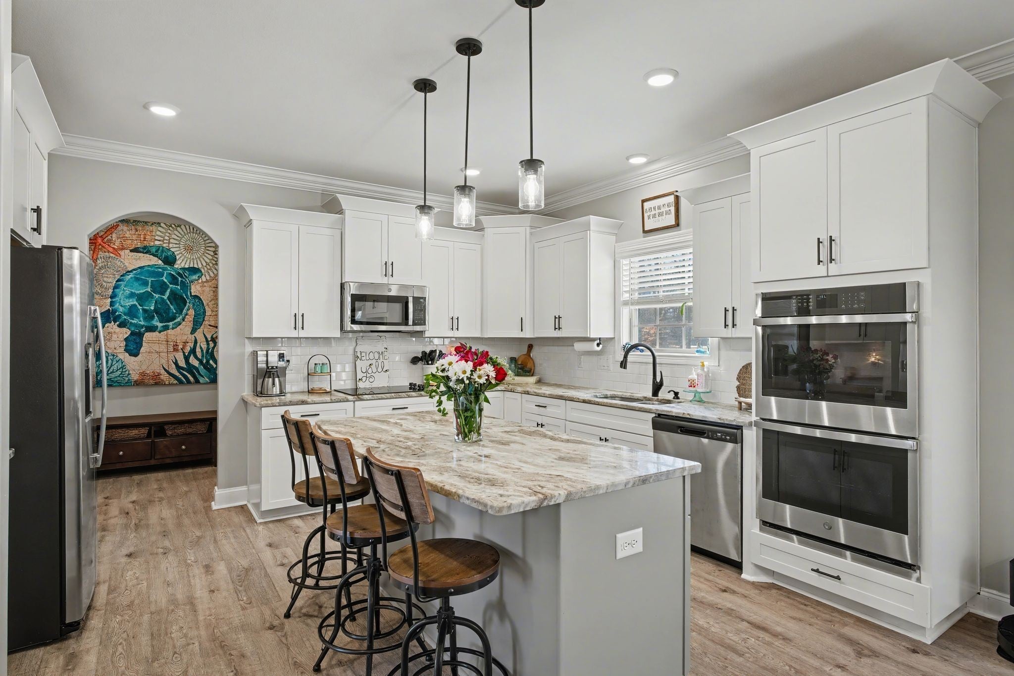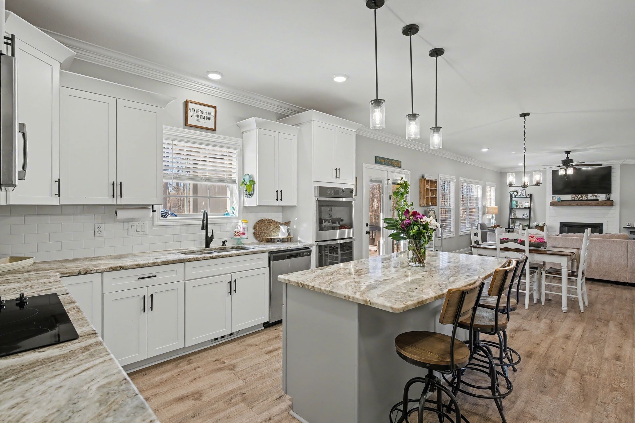 - Double Oven, Cooktop, Dishwasher, Microwave, Refrigerator, Stainless Steel Appliance(s)