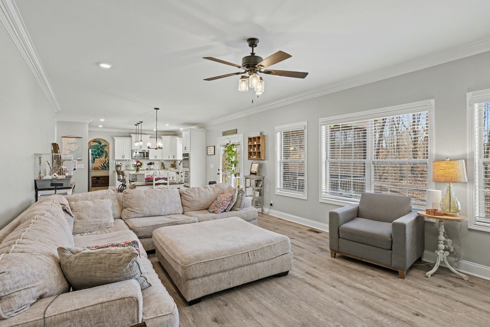 Nearly 3,000 sq ft of thoughtfully designed living in this 4-bed, 2.5-bath home with a true open floor plan. A formal dining room sets the stage for hosting, while the stunning kitchen shines with a large island, double over, huge pantry, beautiful finishes, and seamless flow into the main living area. An additional spacious bonus room adds flexibility. Perfect for a media room, playroom, gym, or home office. Enjoy indoor-outdoor living on the screened porch or the separate patio overlooking a peaceful, private backyard with no rear neighbors, backing to trees for a serene natural setting. Located in a community offering walking trails and a neighborhood pool, this home combines comfort, space, and lifestyle. Move-in ready and designed for everyday living and entertaining alike - don’t miss it!